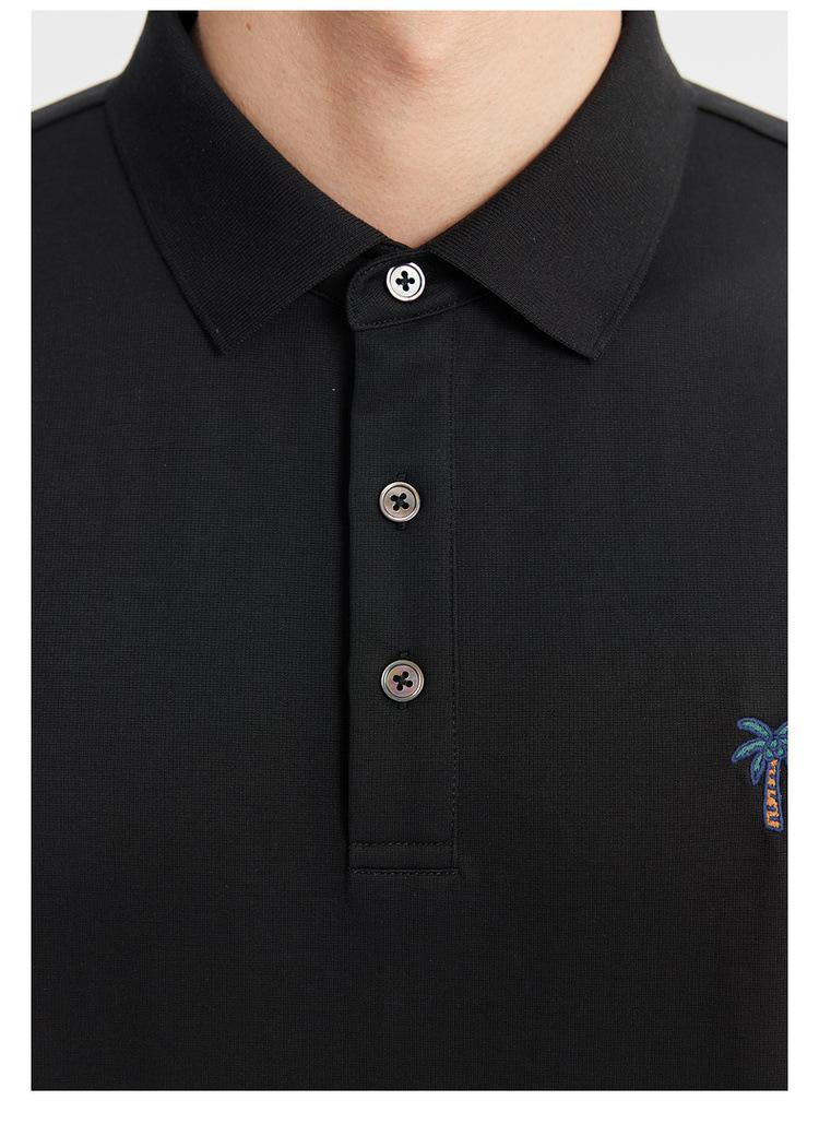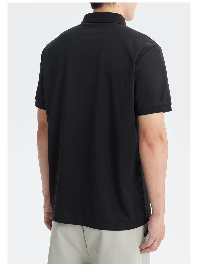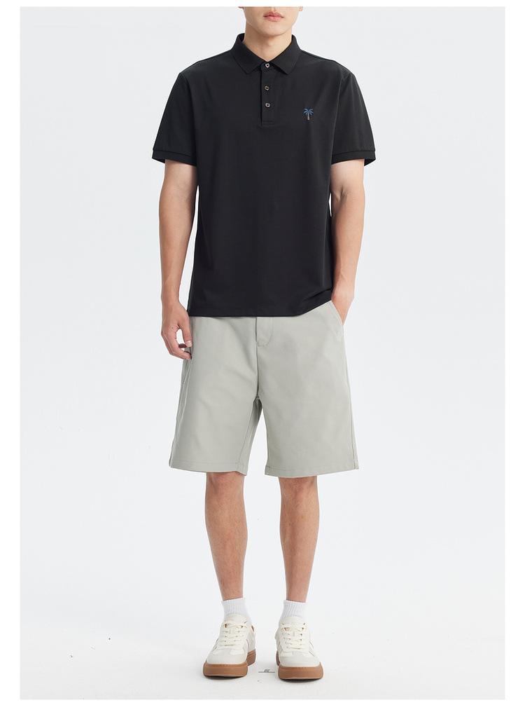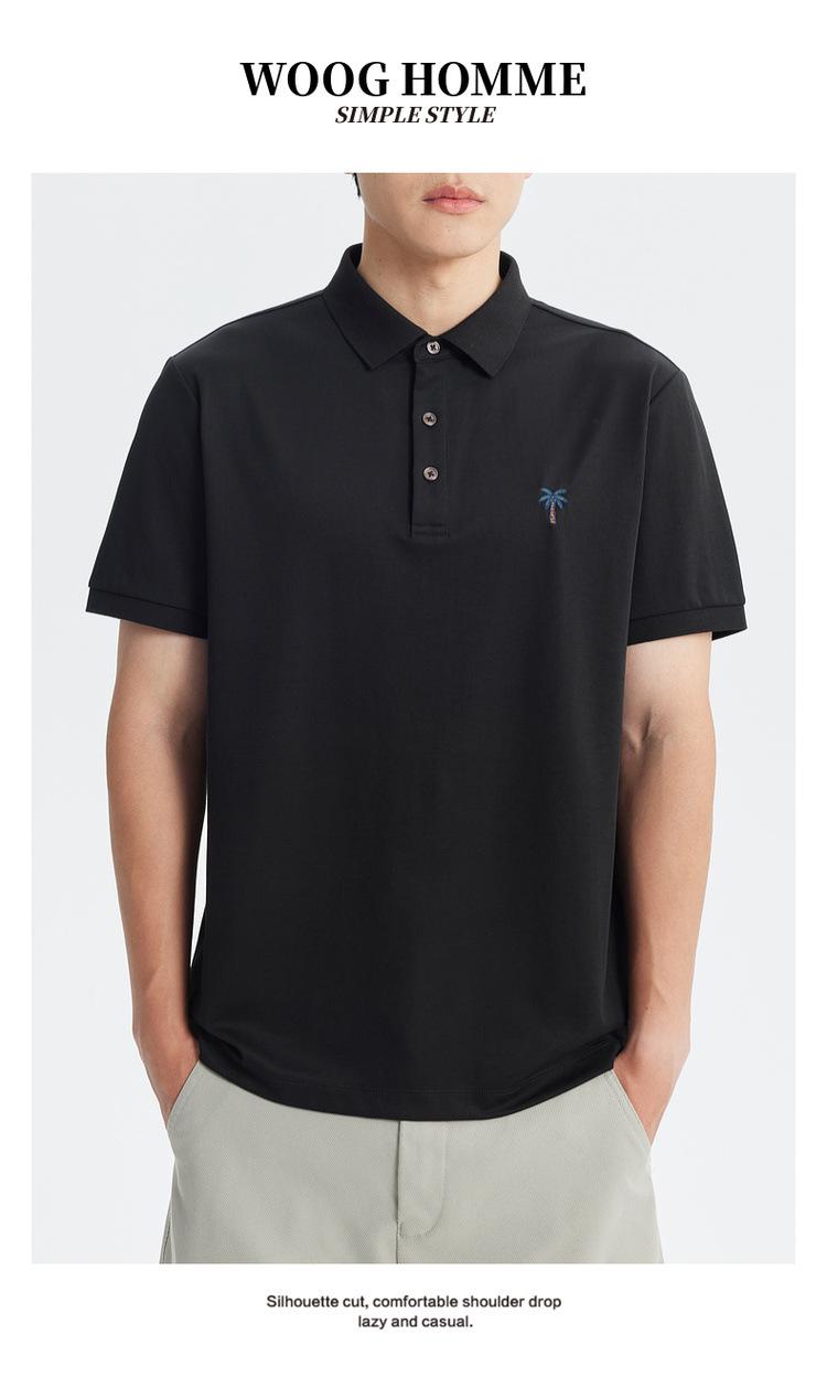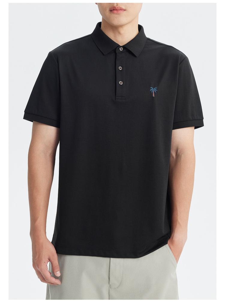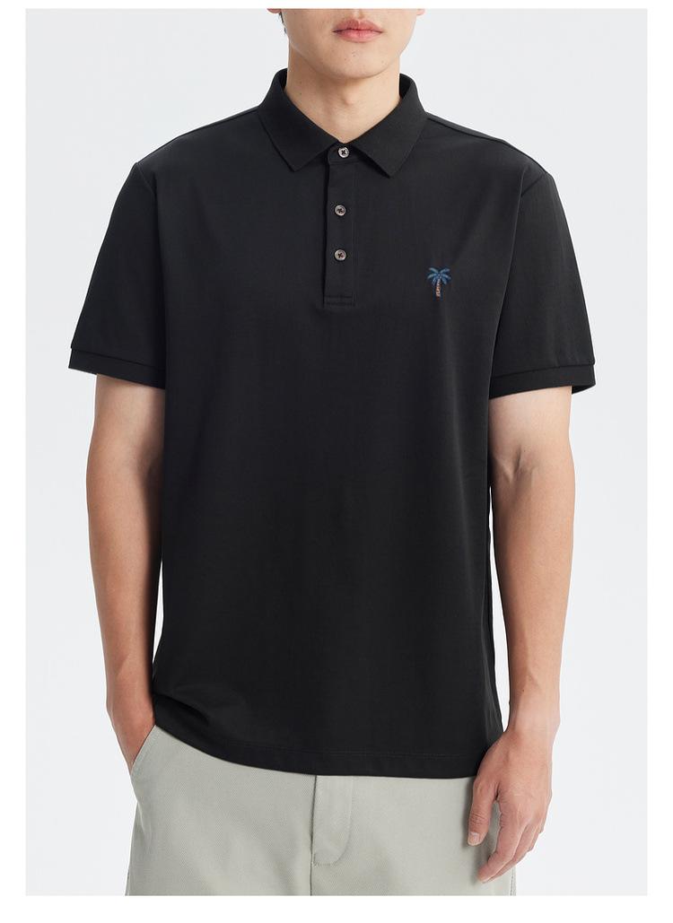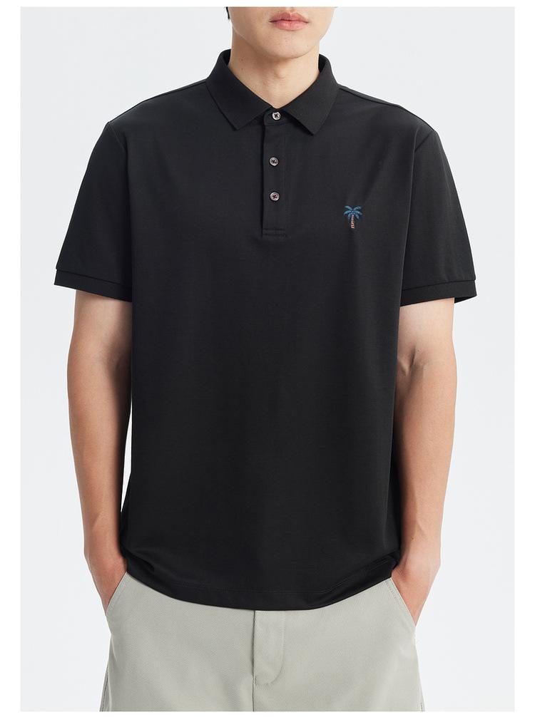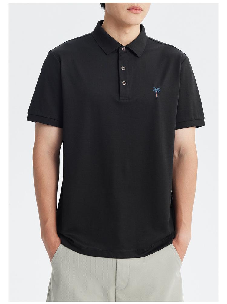 Polo de Manga Corta Bordado de Alta Gama de Algodón Seda de Hielo de Secado Rápido Negro para Hombre Verano 2025 Camiseta de Media Manga Ligera y Transpirable