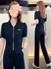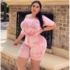2024 Verano Talla Grande Mujer Estilo Casual Europeo y Americano Tie-Dye Cintura Alta Rosa Moda Casual Traje de Dos Piezas