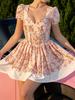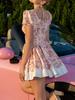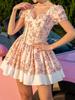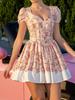 2025 Verano Transfronterizo Amazon Nuevo Vestido Sexy Temperamento Cuello en V Estampado Ajustado Manga Farol Falda Corta