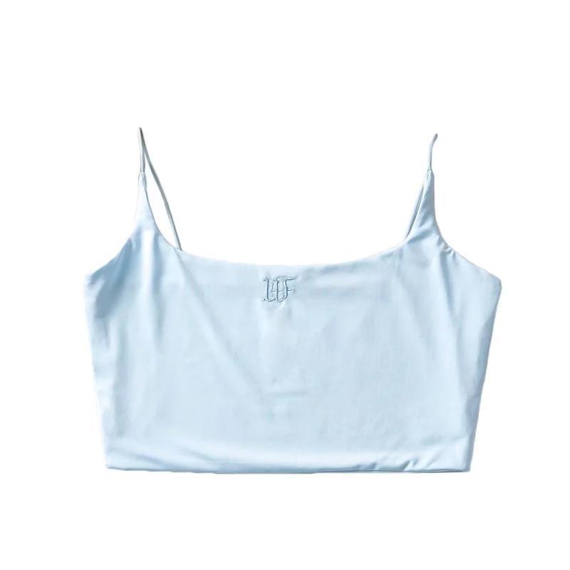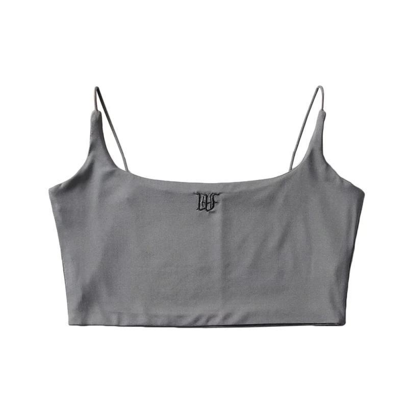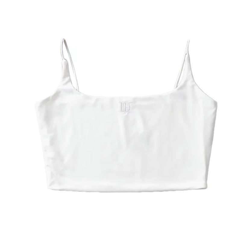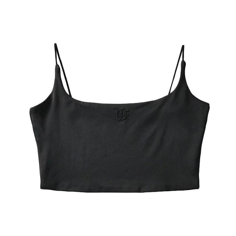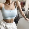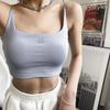 Estilo de chica caliente europea y americana Letra bordada Tirante pequeño Verano para mujer Color puro Básico Tirante fino Delgado Corto elástico Chaleco