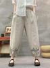 Pantalones Casuales Simples de Algodón y Lino de Color Retro Artístico para Mujer Verano Nueva Llegada Talla Grande Pantalones por Encima de la Rodilla
