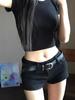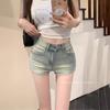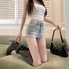 Shorts de mezclilla ligera ajustados para mujer, verano retro, cintura alta, efecto adelgazante, pantalones rectos, pequeños pantalones calientes ajustados estilo Spice Girls
