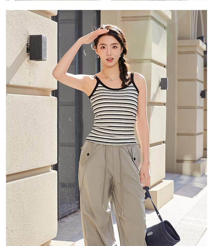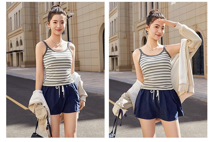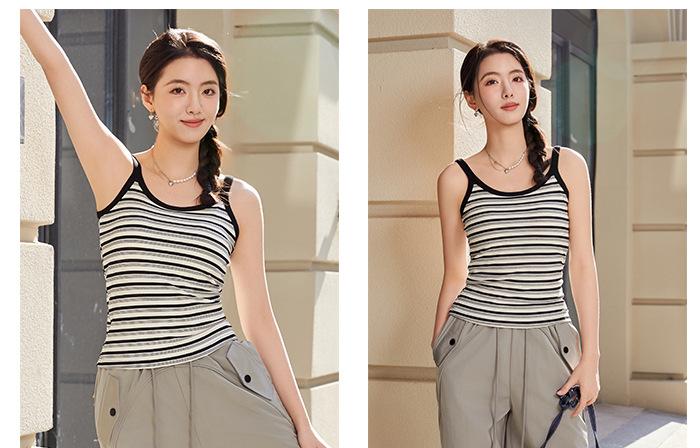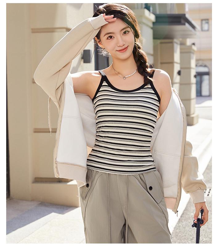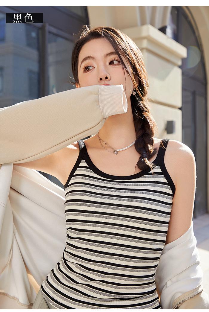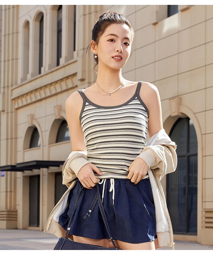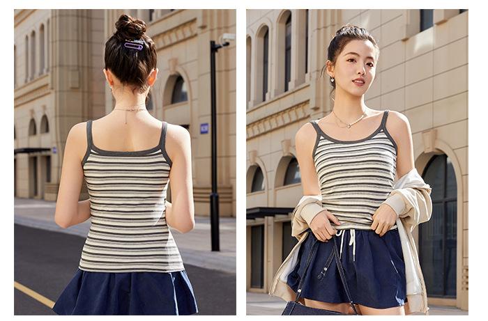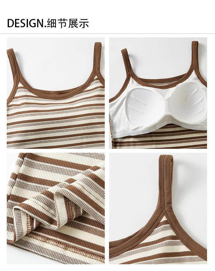 2025 Nueva Camisola de Rayas para Mujer Verano Ropa Interior con Almohadilla en el Pecho Todo en Uno Ropa Exterior Top Interior de Fondo