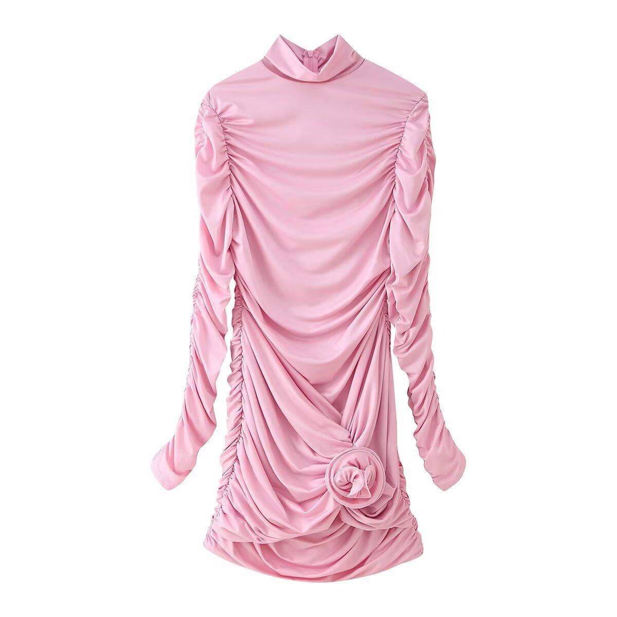 Verano 2025 nuevo temperamento europeo y americano ropa de mujer transfronteriza moda vestido plisado decorativo con flores tridimensionales w028 6864