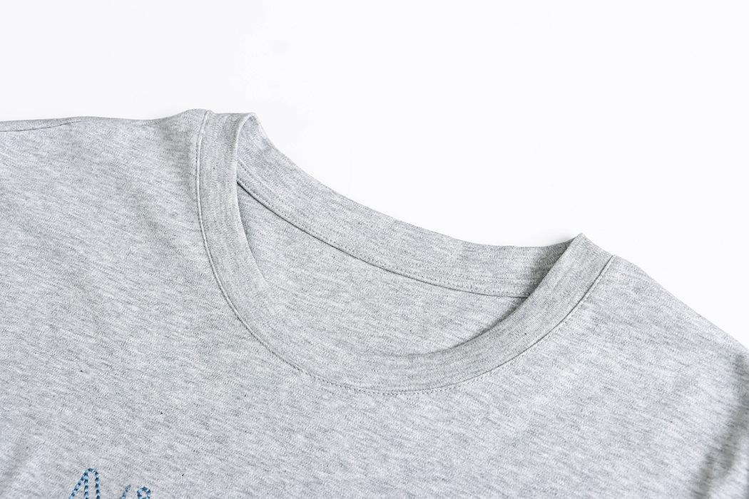 Moand la persona encargada de la colección de letras de bordado especial tridimensional coreano camiseta holgada de manga corta y cuello redondo MQ0532