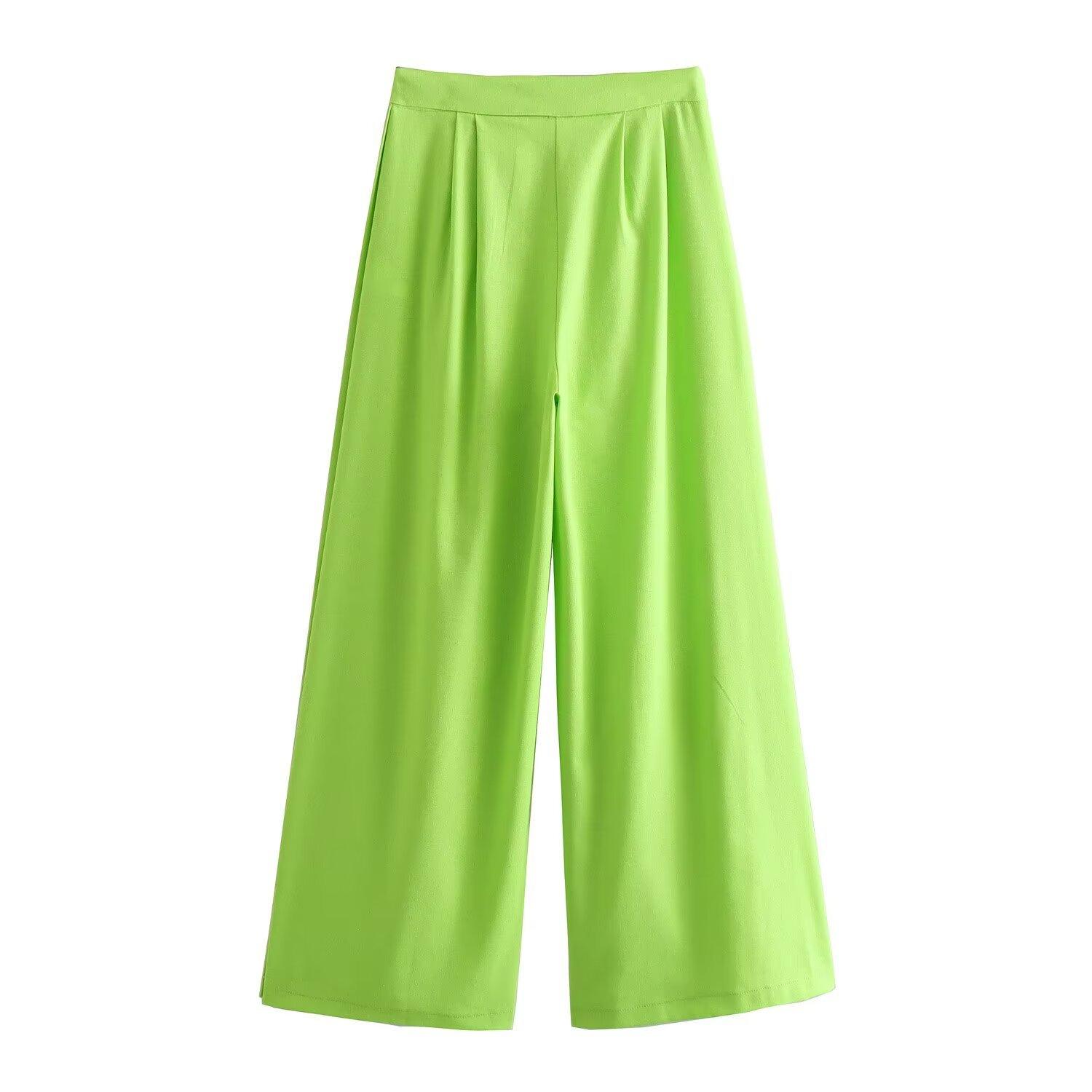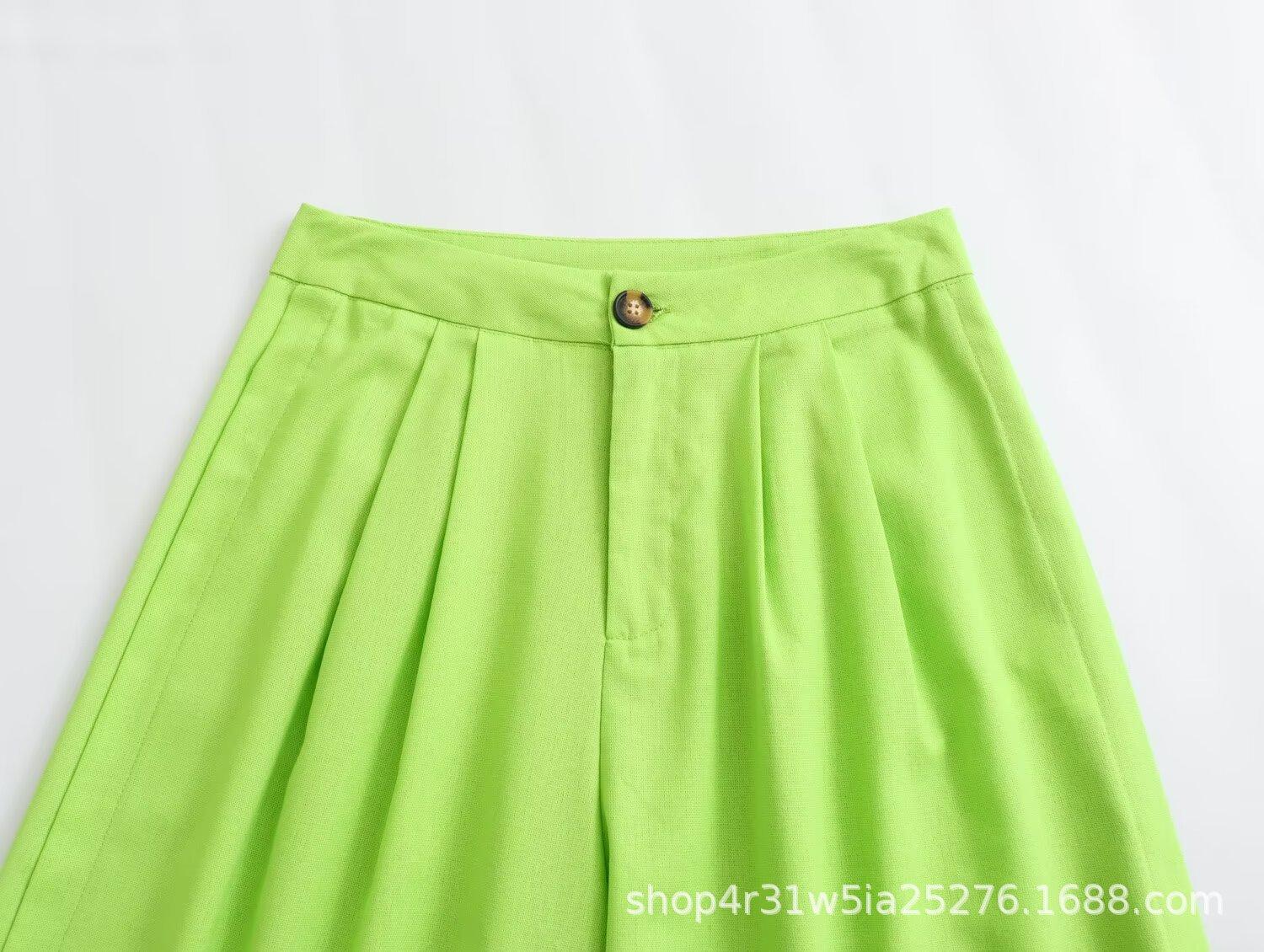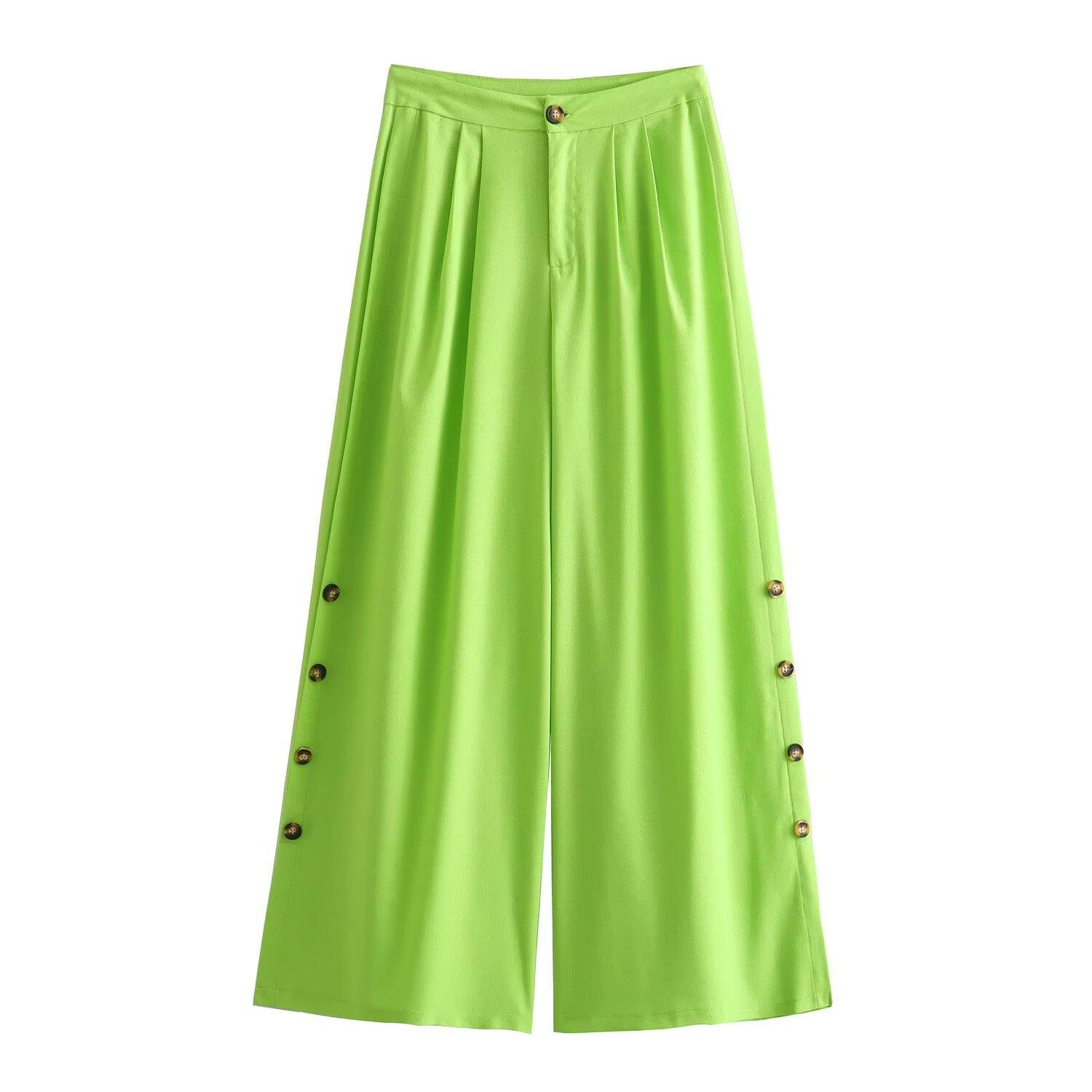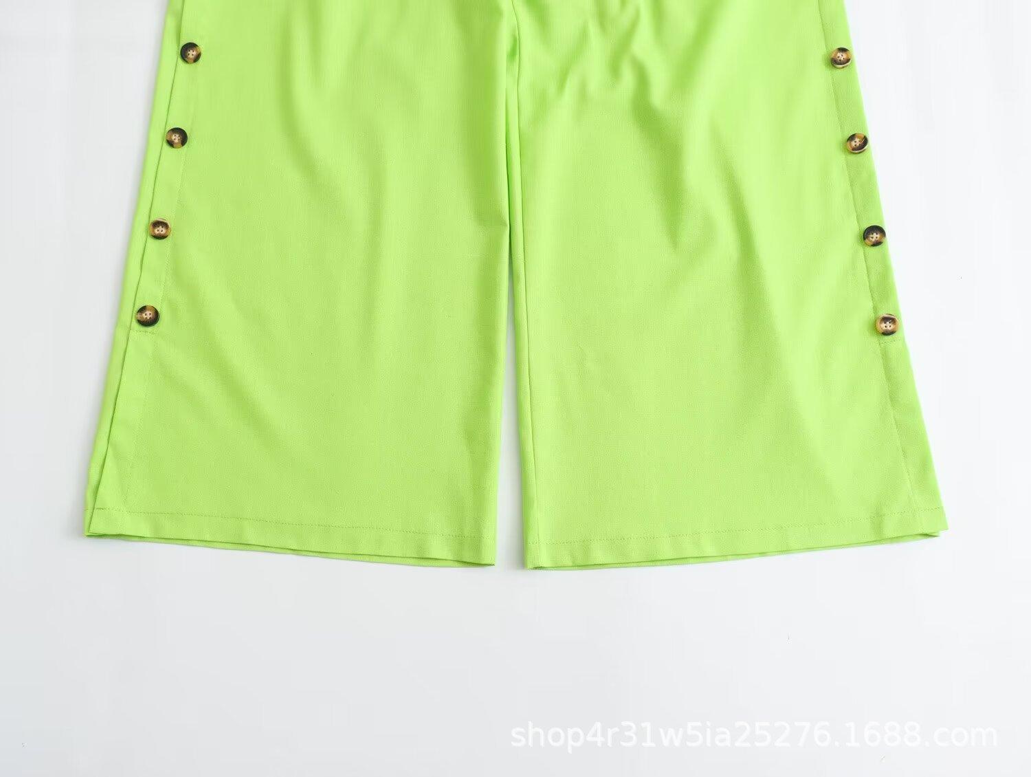 Estilo Europeo y Americano 2024 Verano Nuevo Estilo Suelto Casual Versátil Cintura Alta Color Puro Decorado con Botones Pantalones de Pierna Ancha