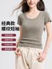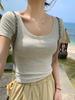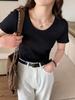 Camiseta de Manga Corta para Mujer Hombro Derecho Cuello Redondo Color Puro Ropa Exterior 2025 Nuevo Estilo Simple Versátil Slim de Alta Gama Top de Verano para Mujer
