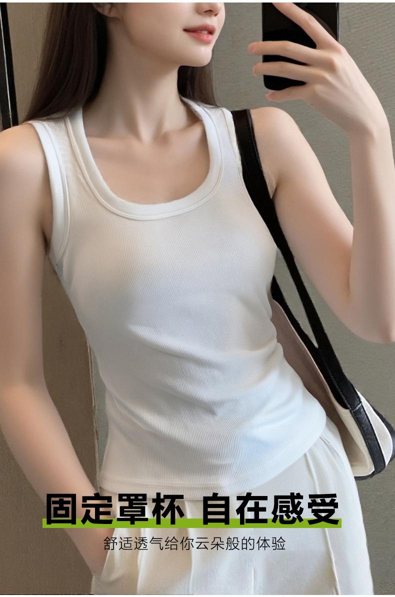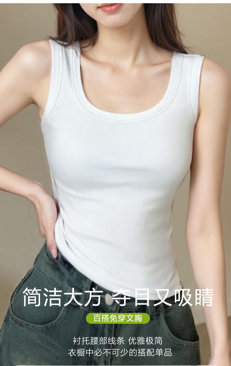 Camisola de Color Sólido para Mujer Interior Base Negro y Blanco Verano Ajustado Ropa Exterior Sujetador Top Anti-movimiento con Almohadilla en el Pecho