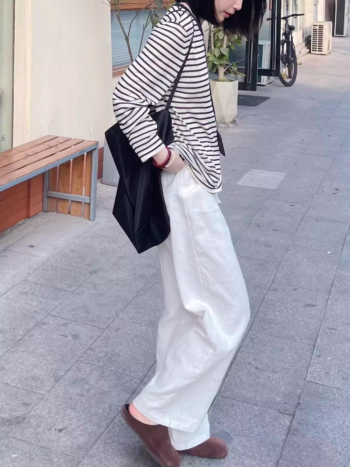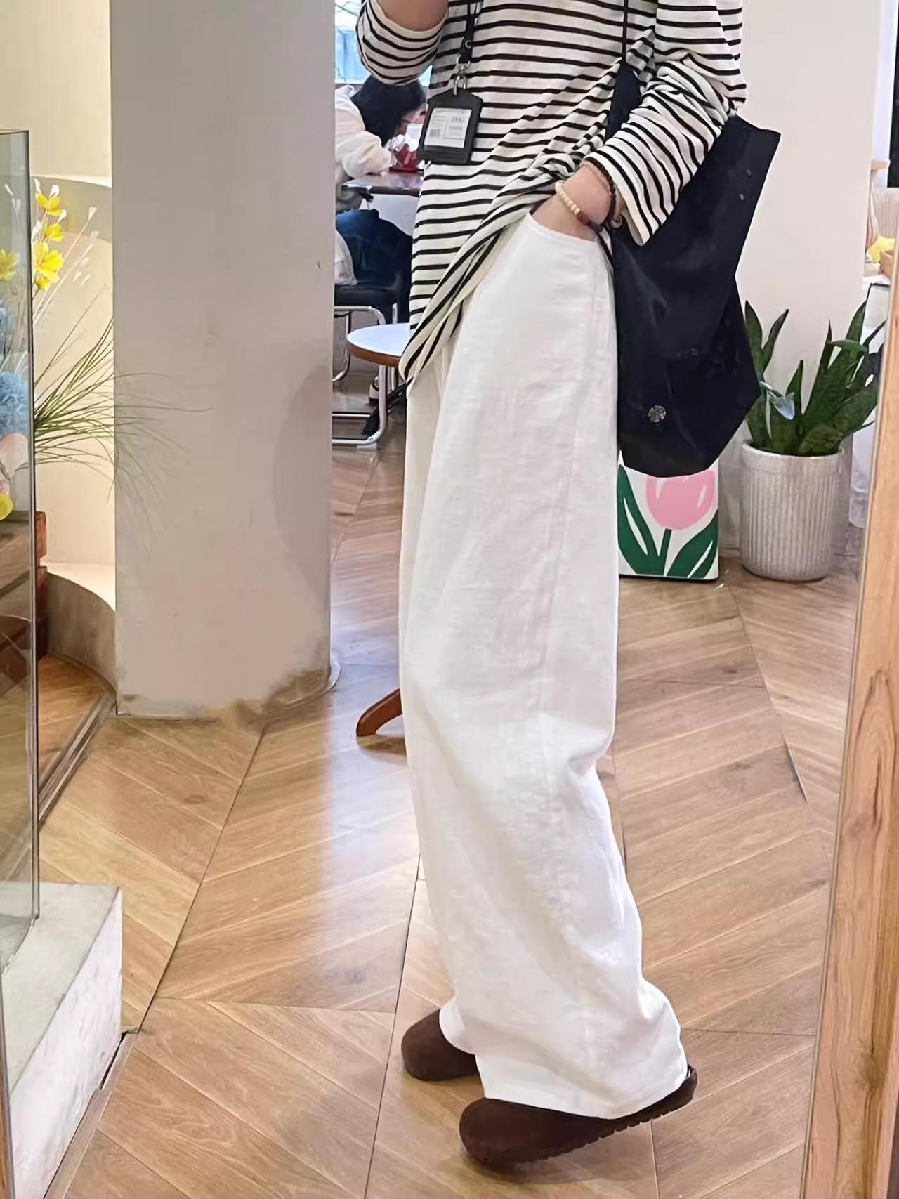 Pantalones de pierna ancha de lino de algodón estilo coreano para mujer 2025 Verano Nuevo estilo Relajación perezosa Sueltos Adelgazantes Delgados Pantalones casuales Delgados