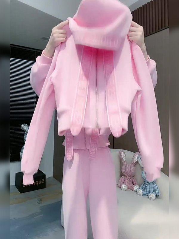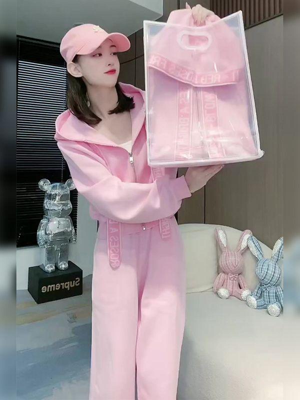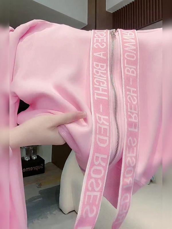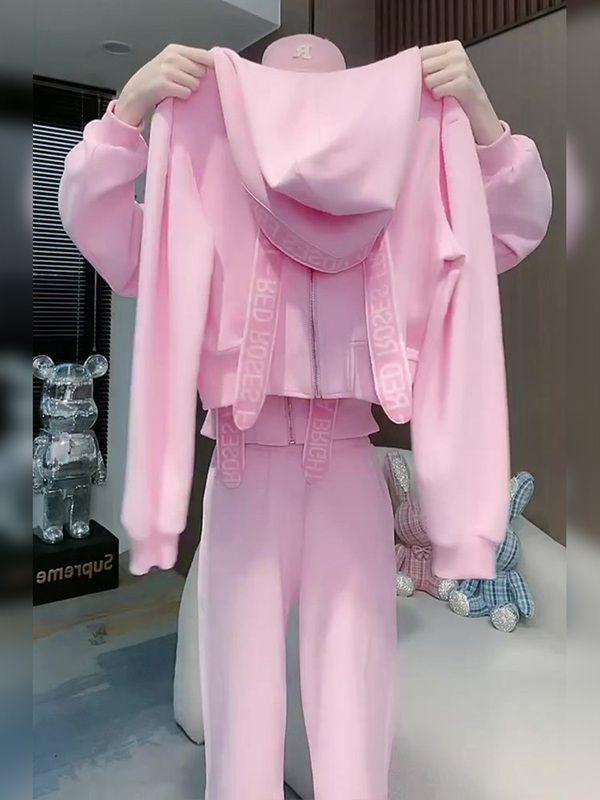 Traje deportivo casual rosa de alta gama que reduce la edad para mujer 2025 Moda de primavera Nuevo diseño Sudadera y pantalones de chándal
