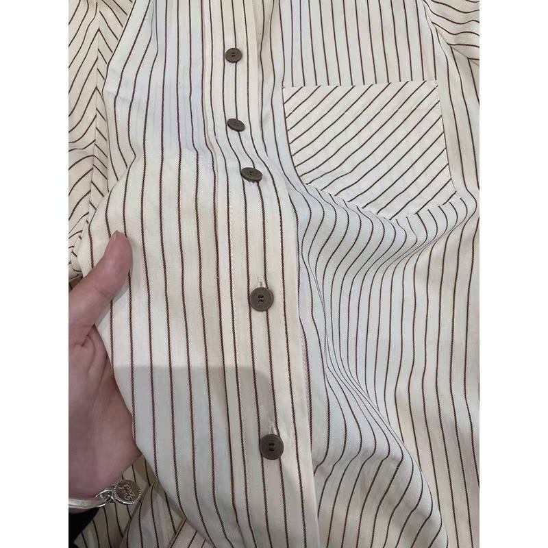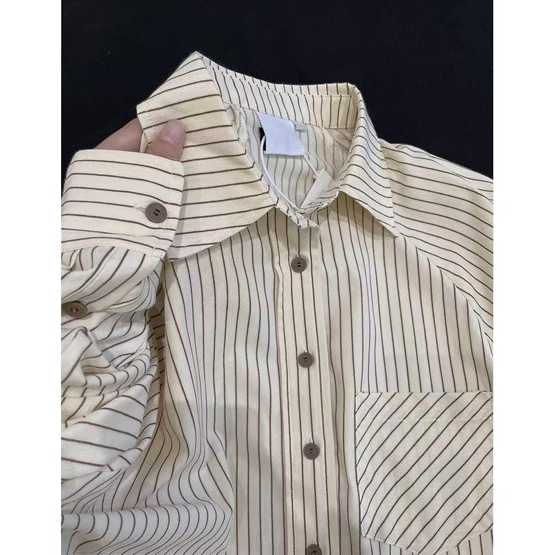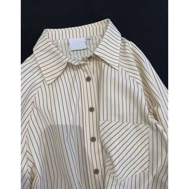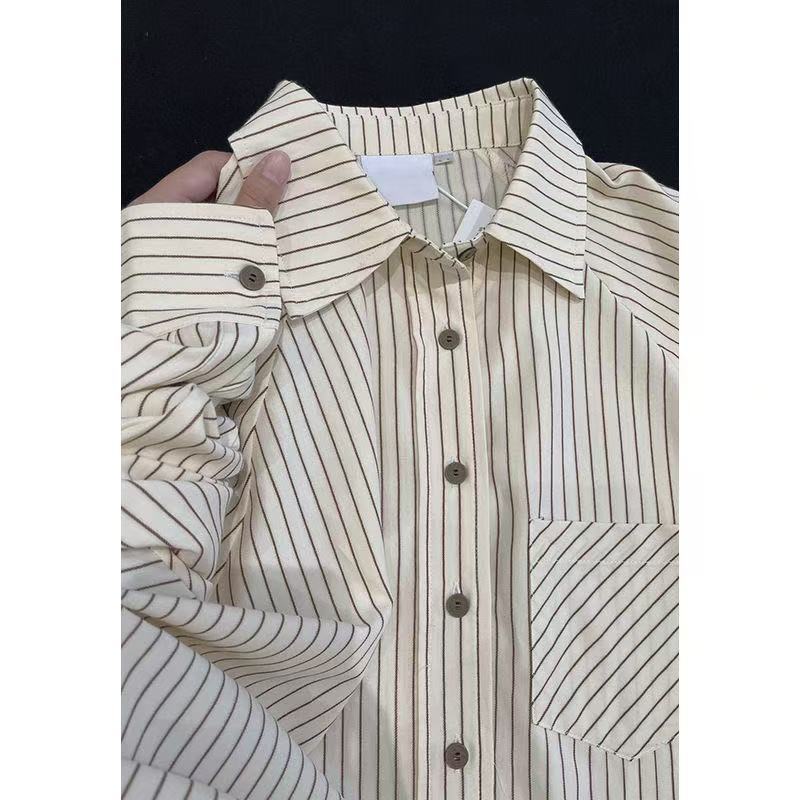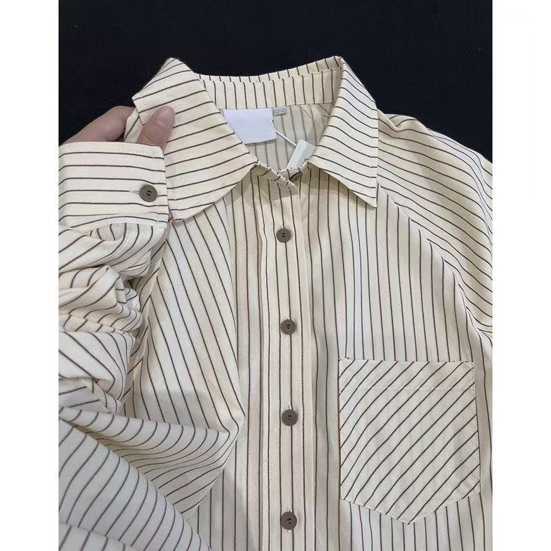 Camisa de Rayas Francesa Principios de Otoño para Mujer 2025 Nuevo Diseño Niche Top Camisa Estilo Coreano