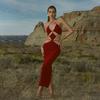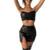 Nuevo traje sexy de PU transfronterizo sin tirantes con cintura expuesta y falda con abertura en la cadera, en stock al por mayor
