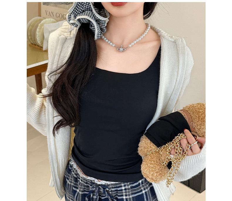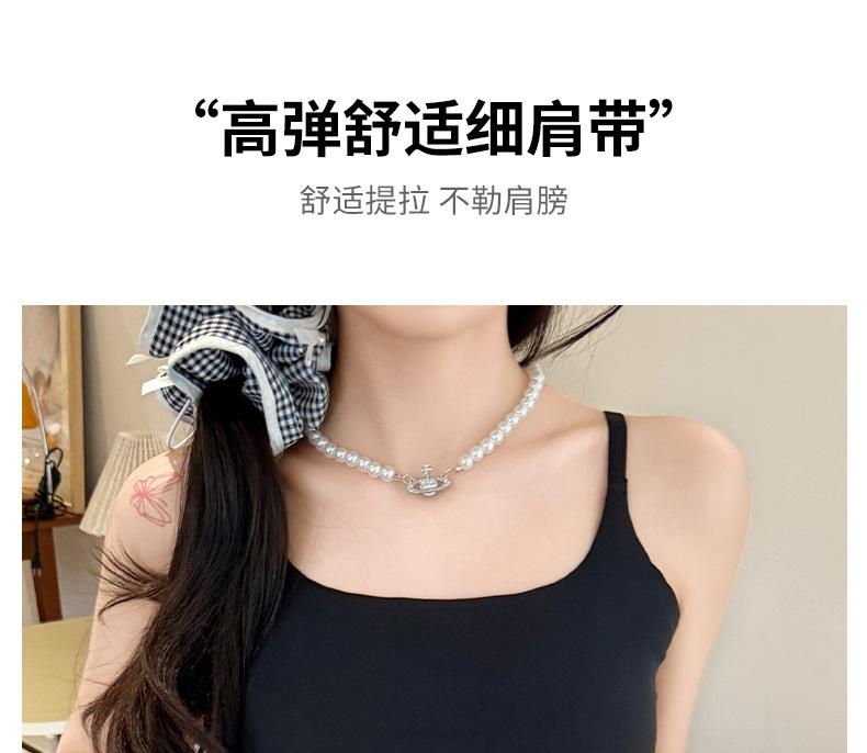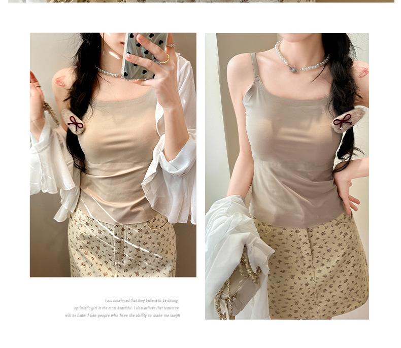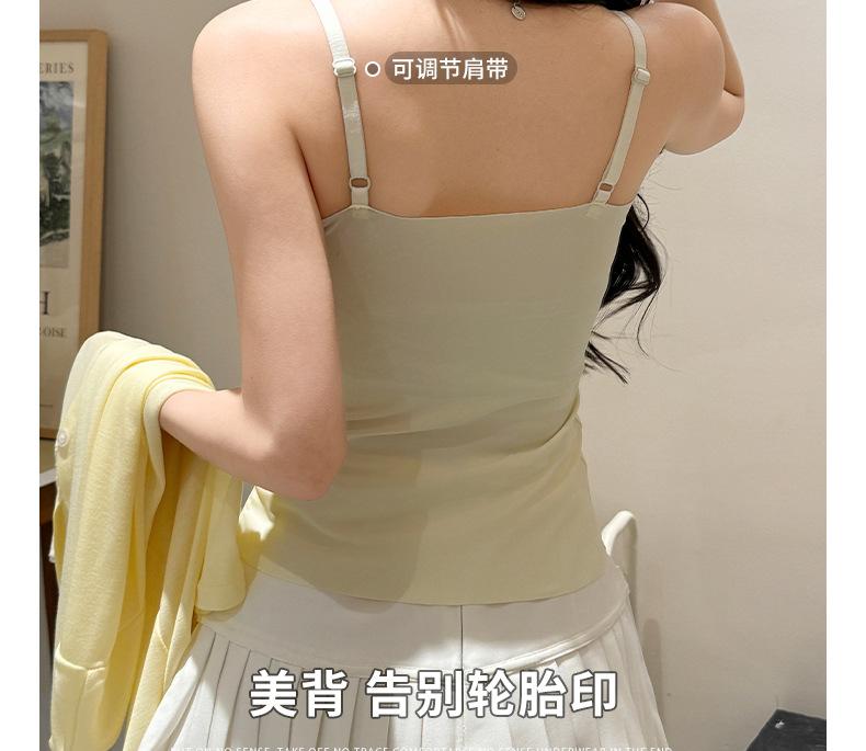 Con Almohadilla en el Pecho Copa Fija Base Seda de Hielo Sin Marcas Tirante Pequeño para Mujer Interior Tirante de Hombro Ajustable Chaleco Top para Uso Exterior