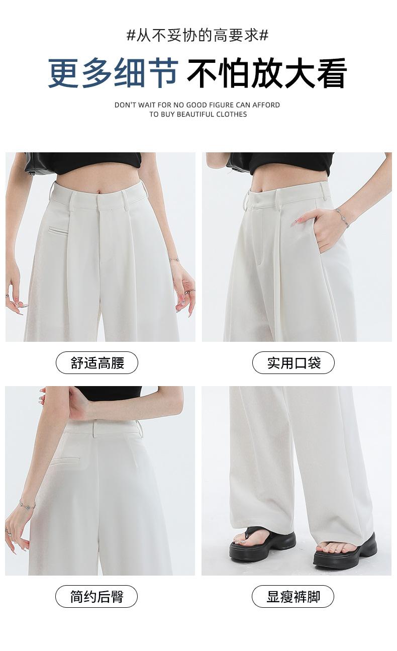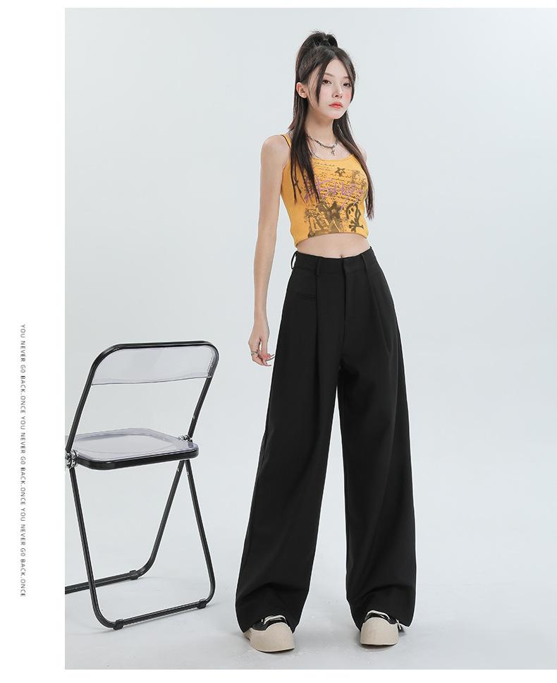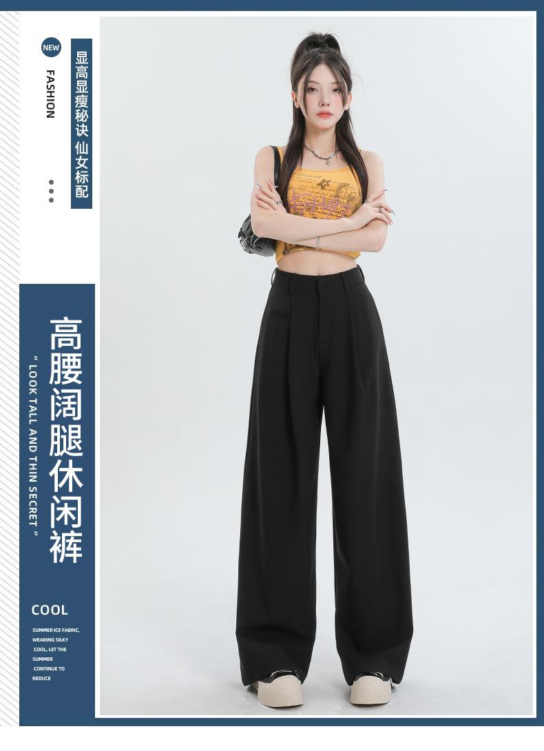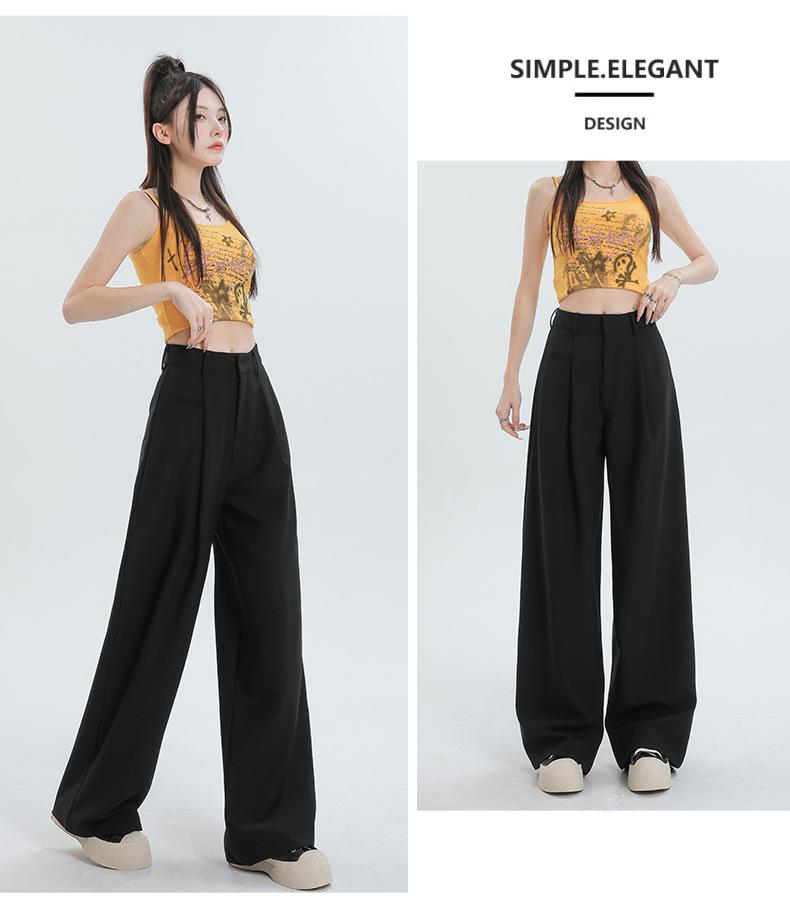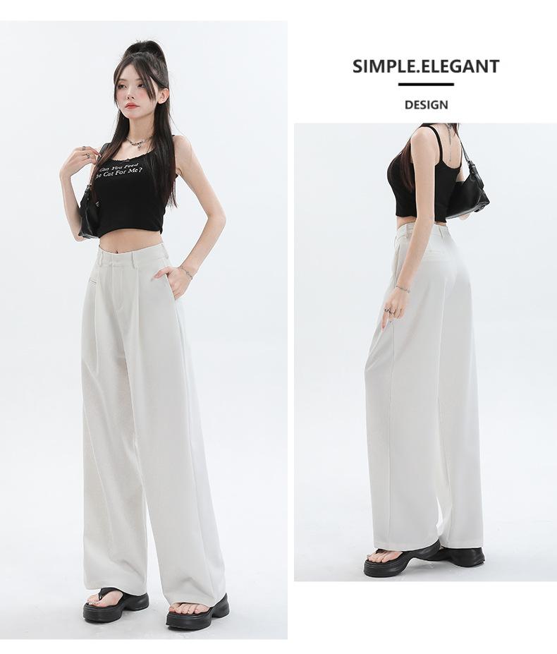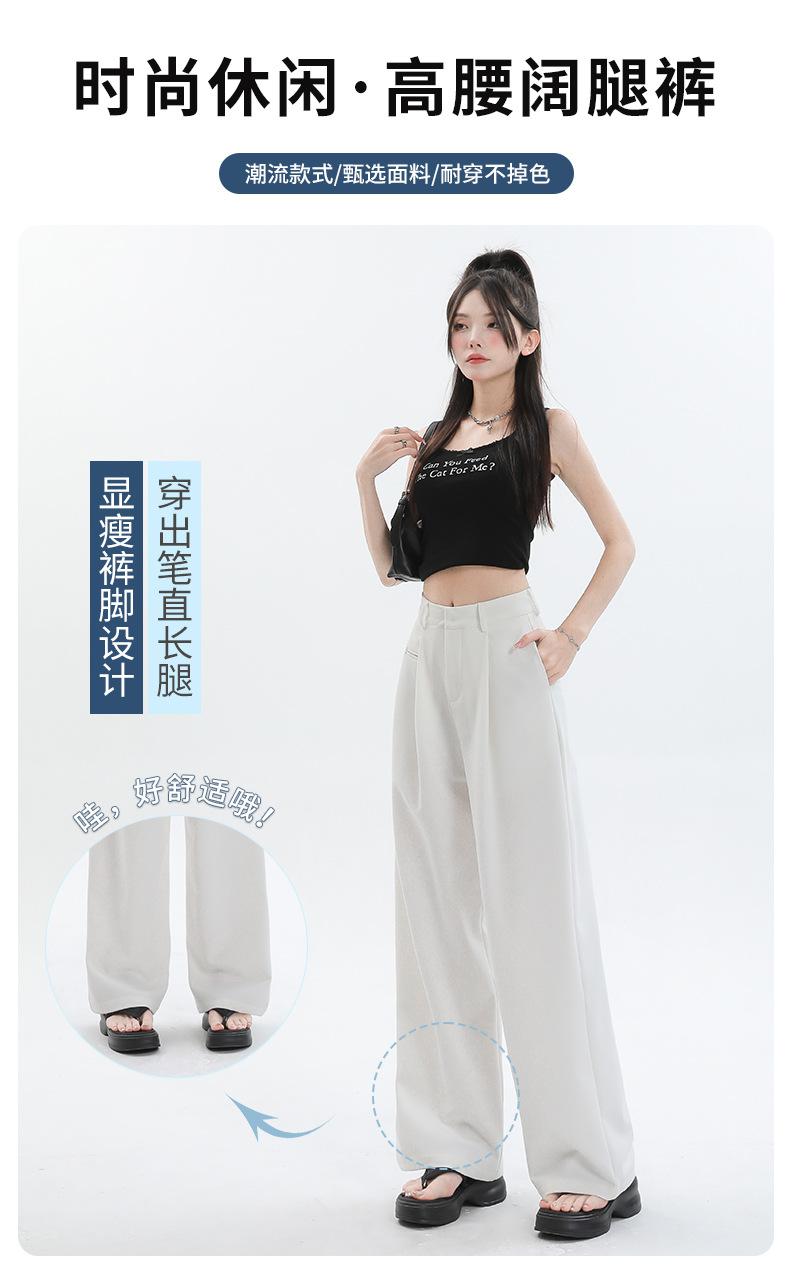 Pantalones de Traje de Verano para Mujer Nuevos con Caída, Pantalones Slim de Pierna Recta, Pantalones Casuales Holgados de Pierna Ancha y Cintura Alta, Largo Regular