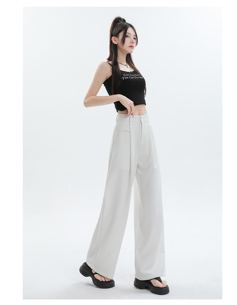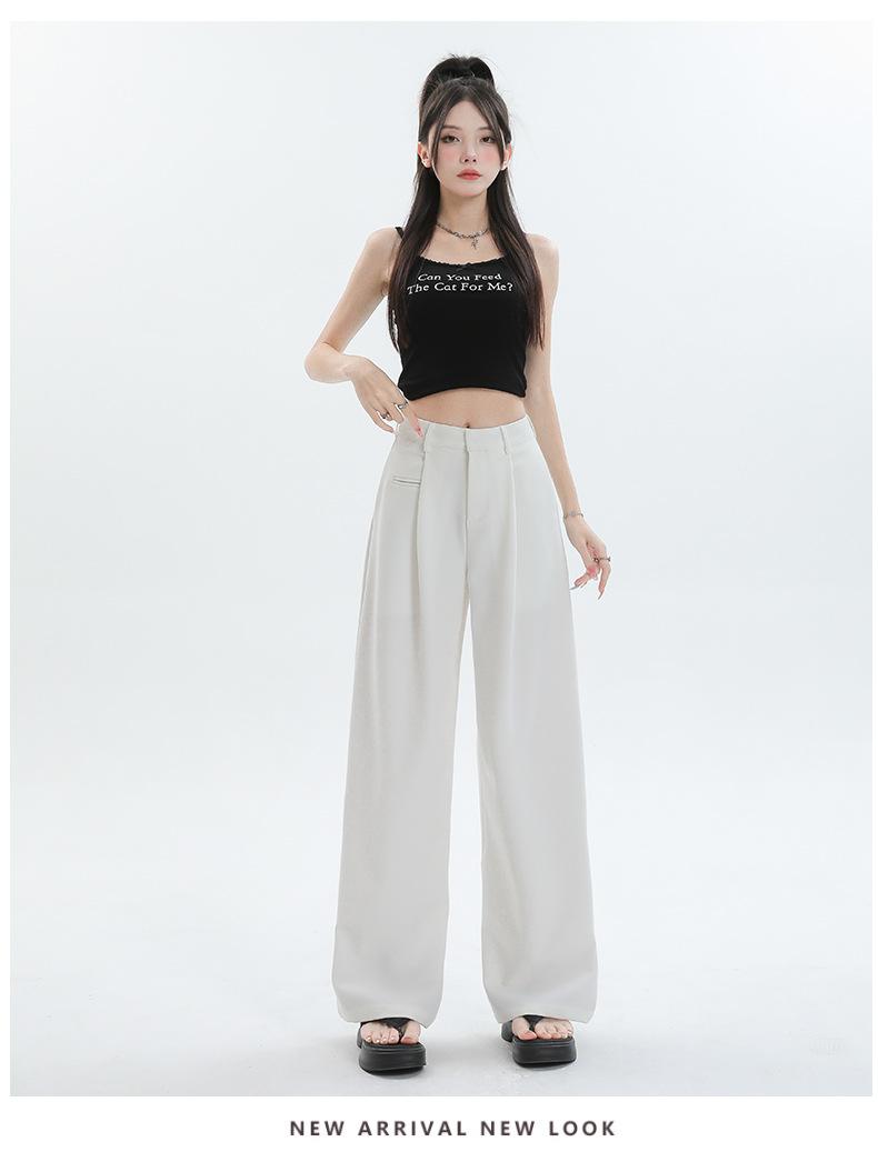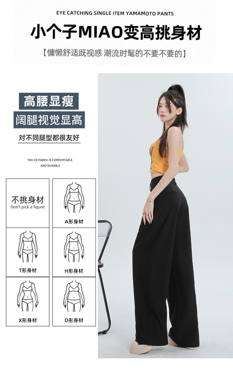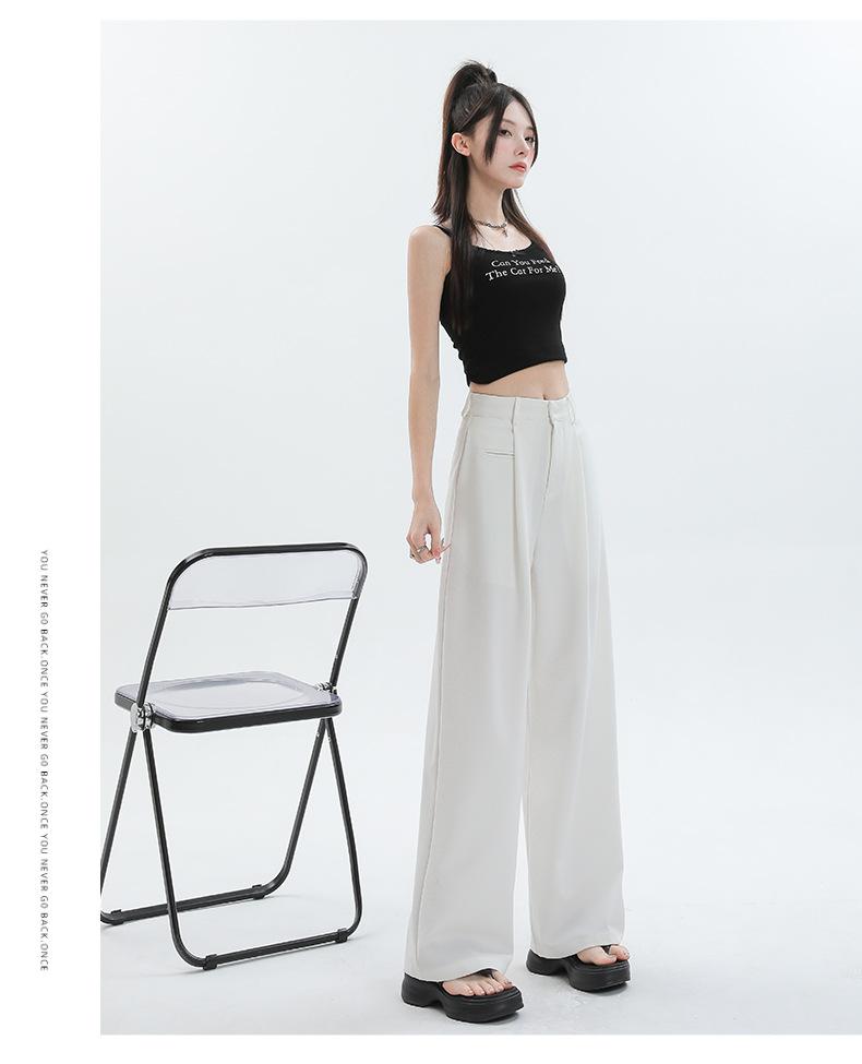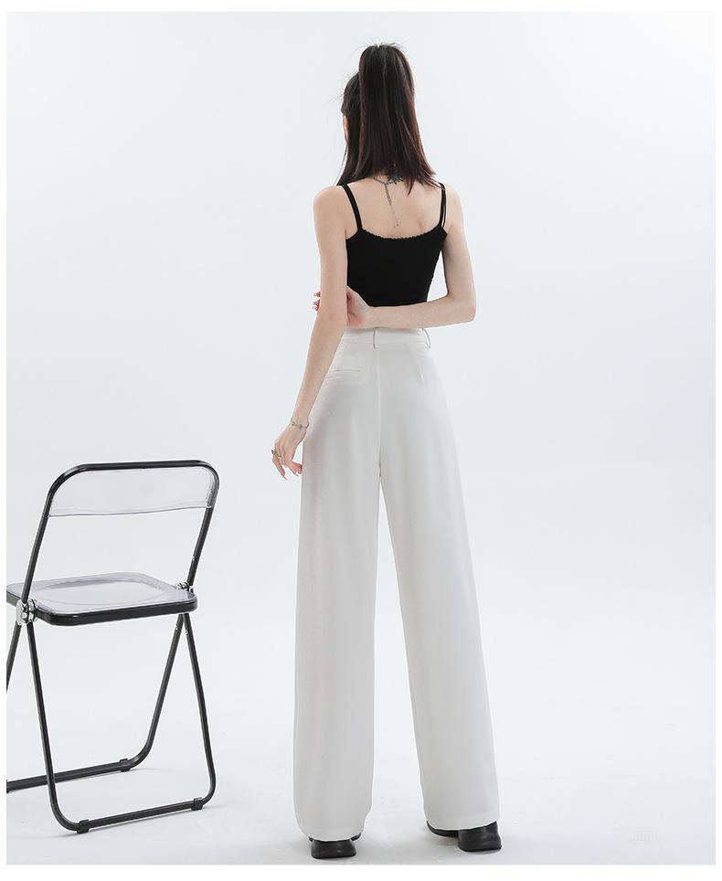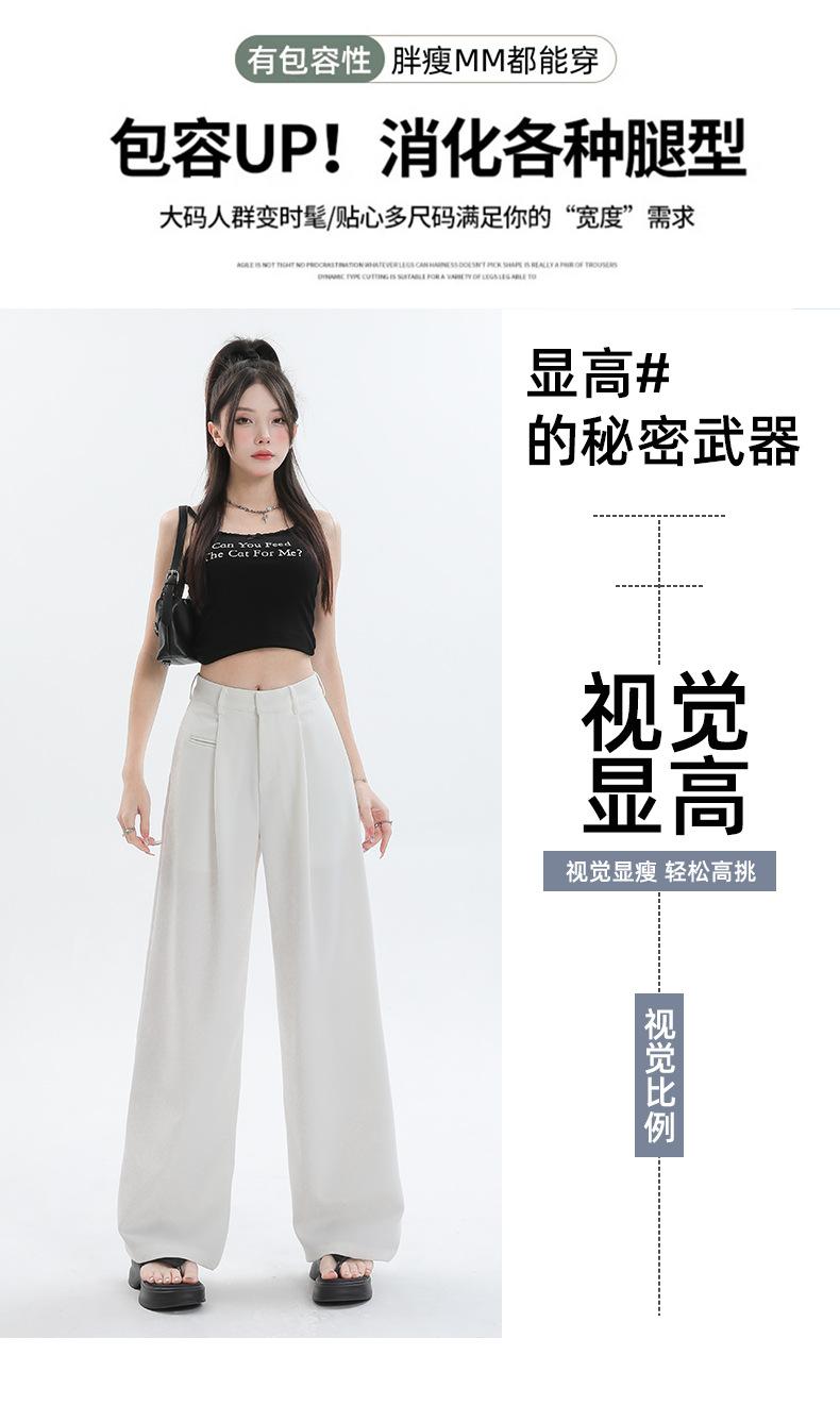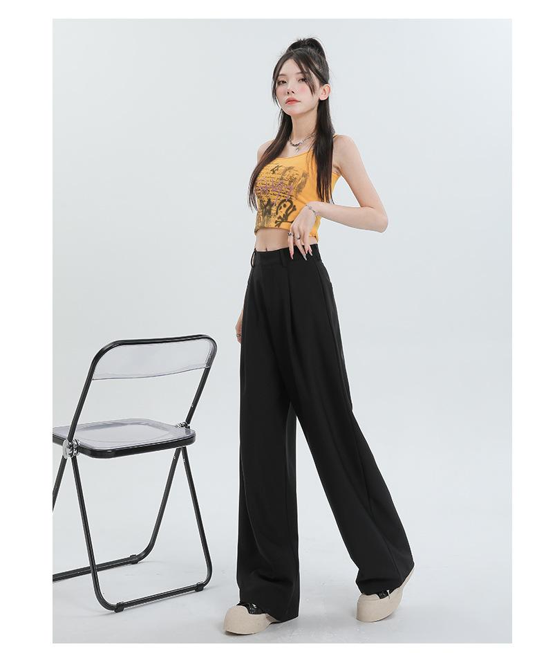 Pantalones de Traje de Verano para Mujer Nuevos con Caída, Pantalones Slim de Pierna Recta, Pantalones Casuales Holgados de Pierna Ancha y Cintura Alta, Largo Regular