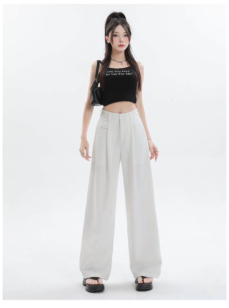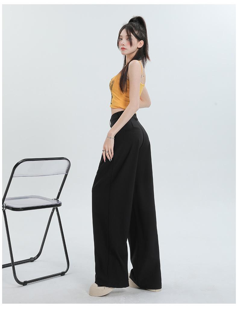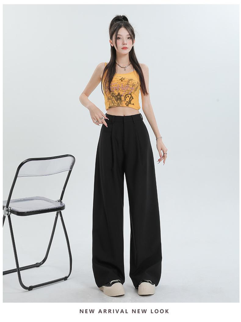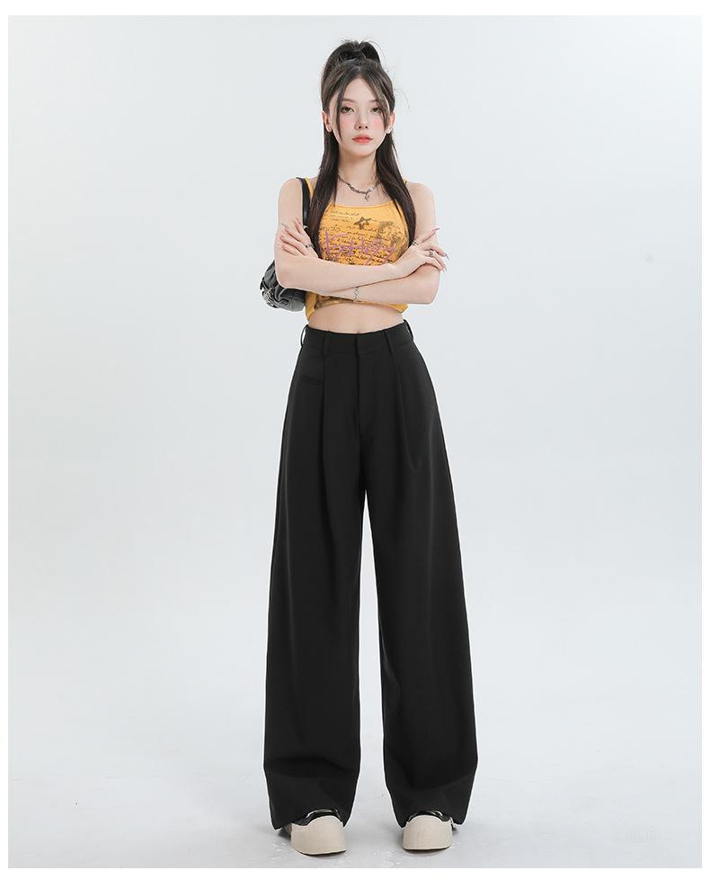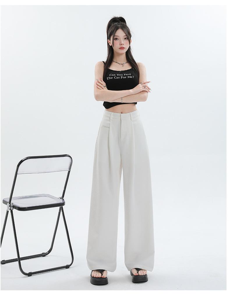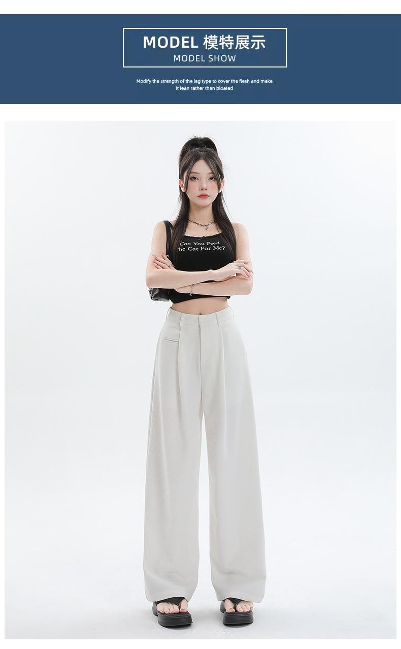 Pantalones de Traje de Verano para Mujer Nuevos con Caída, Pantalones Slim de Pierna Recta, Pantalones Casuales Holgados de Pierna Ancha y Cintura Alta, Largo Regular