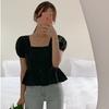 Top Francés de Cuello Cuadrado y Manga Abullonada para Mujer Estilo Coreano Chic Chic Verano Diseño Delgado Novedoso Camisa de Manga Corta para Mujer