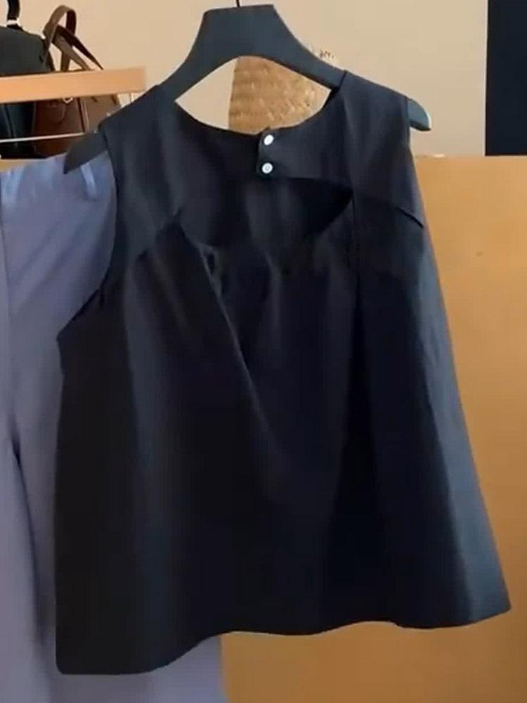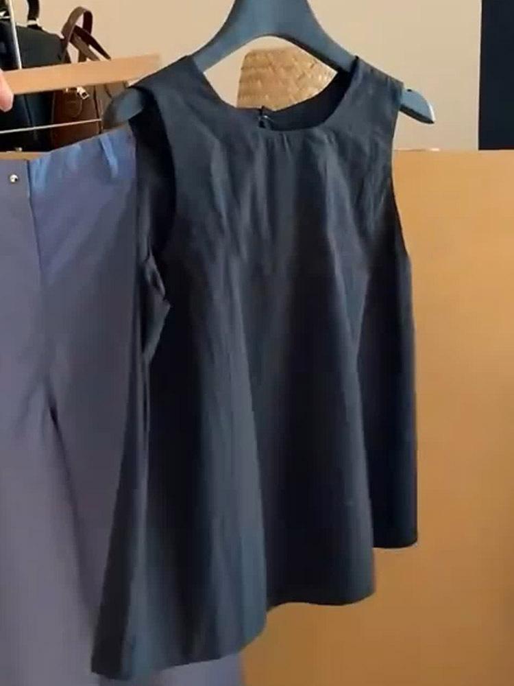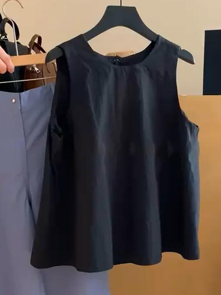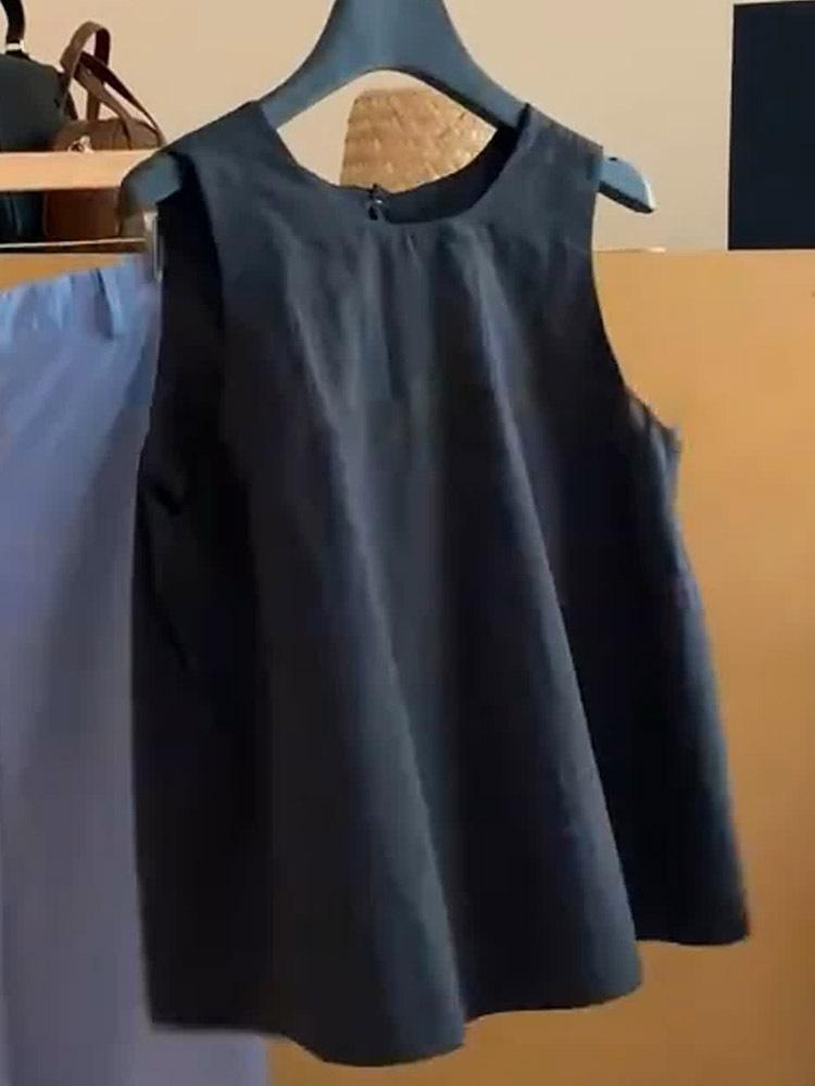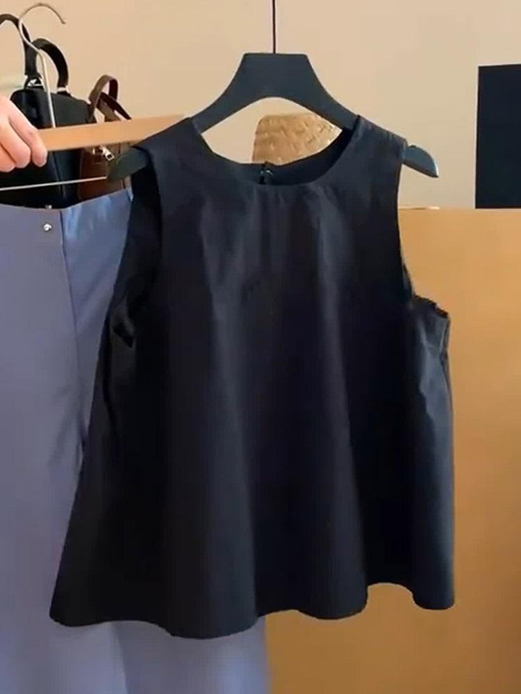 2024 Verano Nuevo Temperamento Suave Simple Blusa Chaleco Sin Mangas Línea A Suelta Cuello Redondo Top Babydoll Mujer