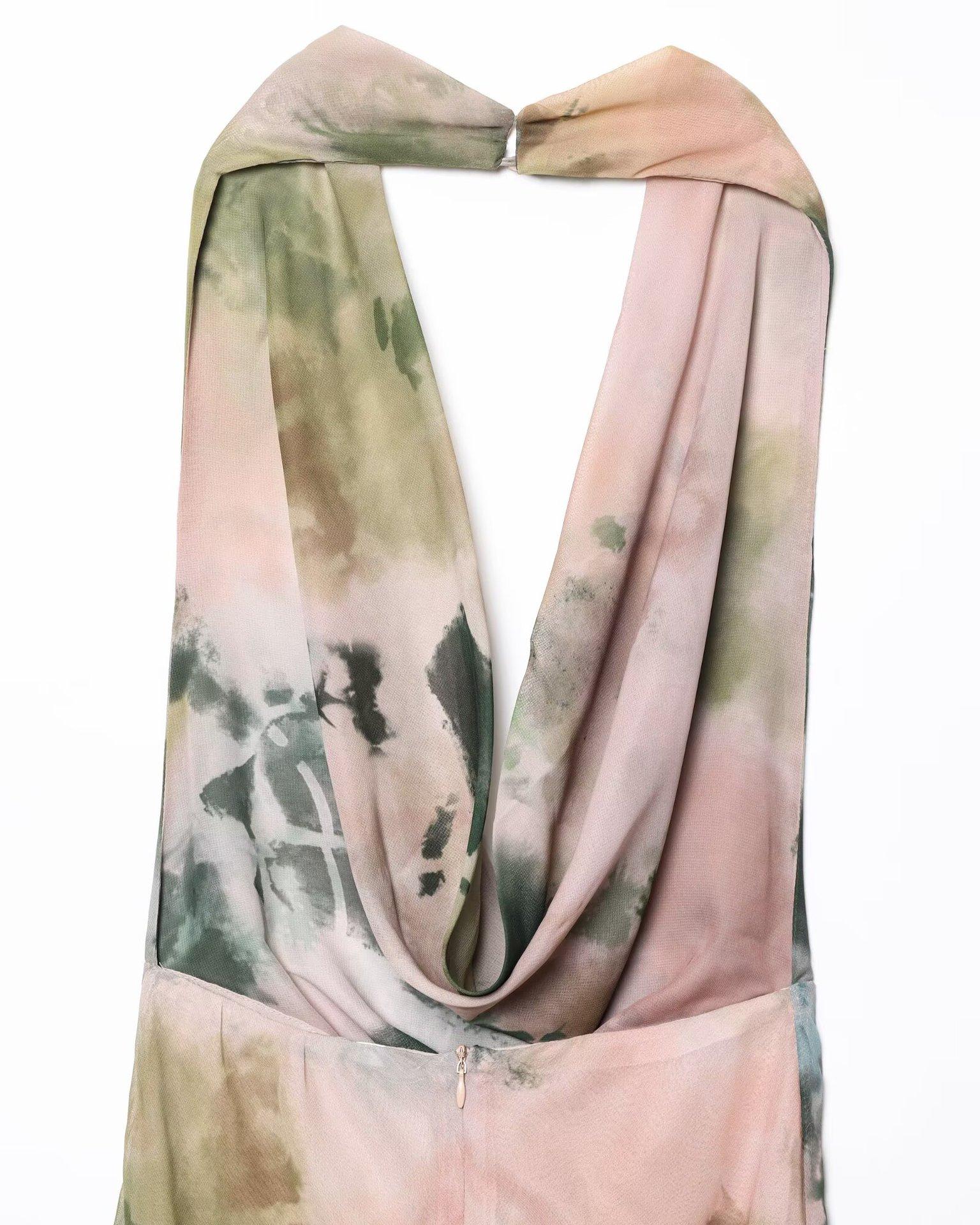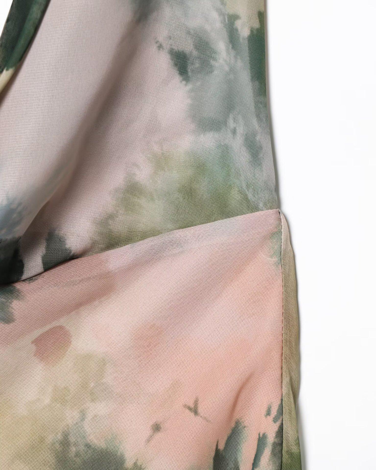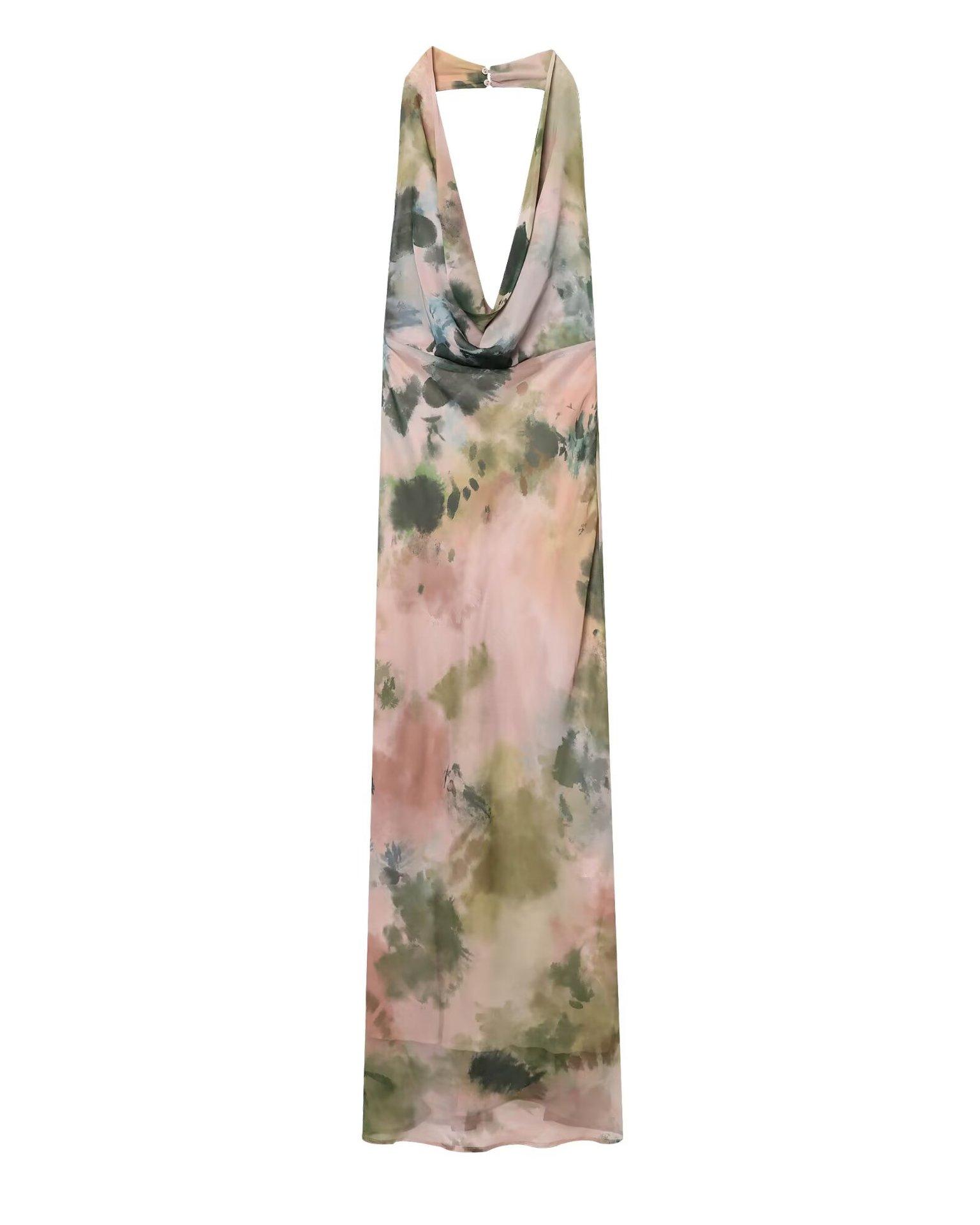 Ropa Europea y Americana Transfronteriza Vestido Halter Popular Retro con Estampado Tie-Dye de Cuello en V Profundo