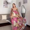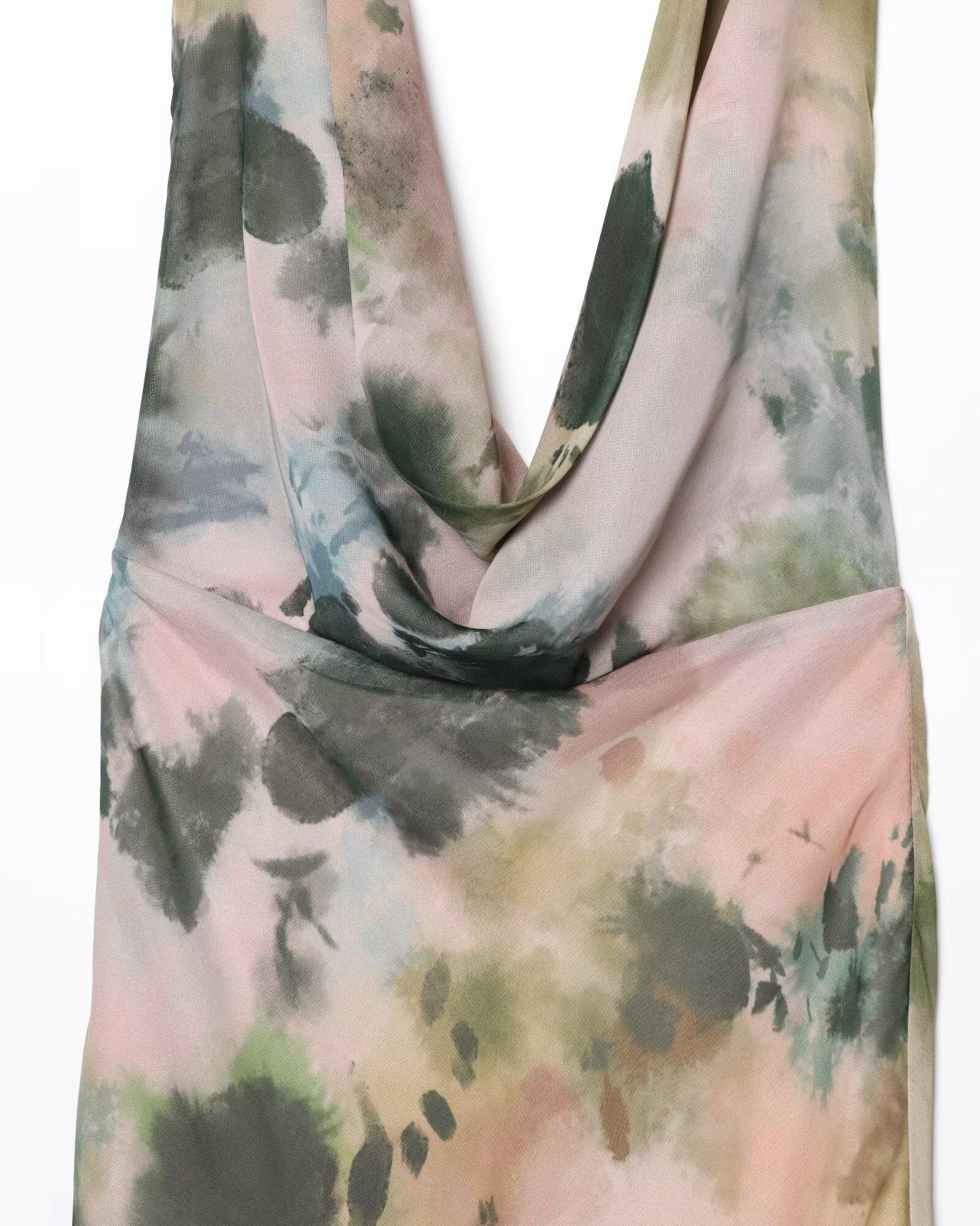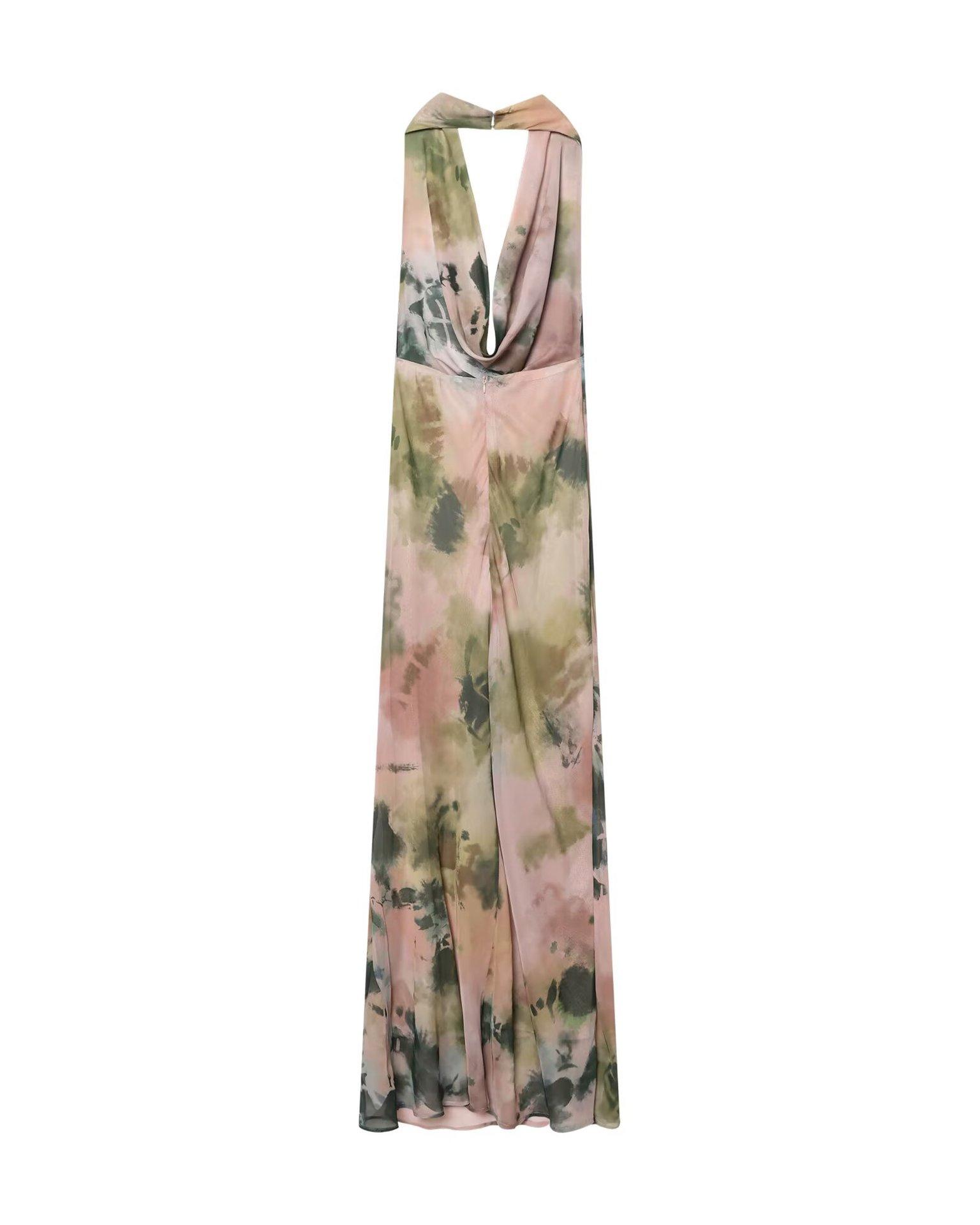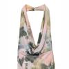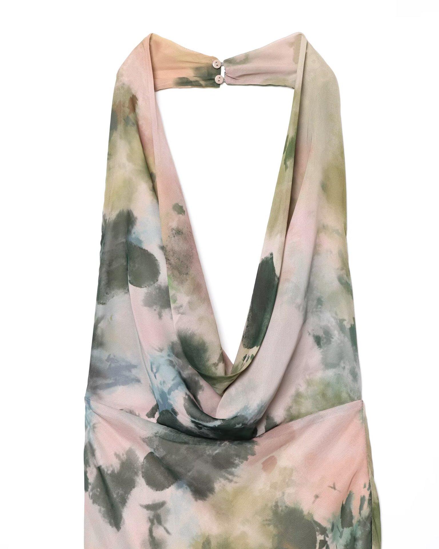 Ropa Europea y Americana Transfronteriza Vestido Halter Popular Retro con Estampado Tie-Dye de Cuello en V Profundo