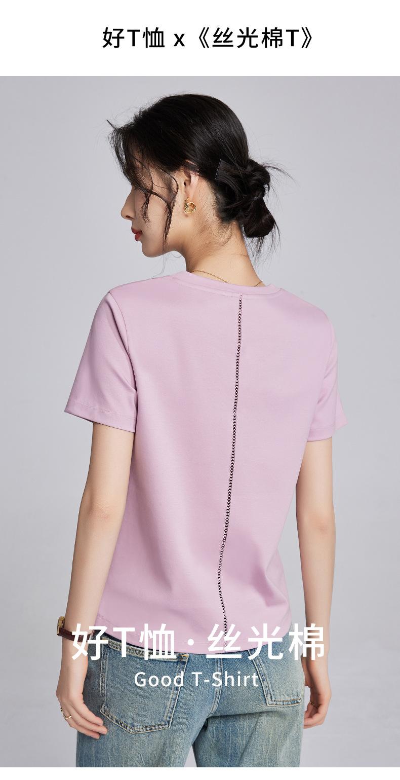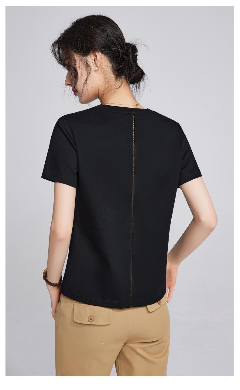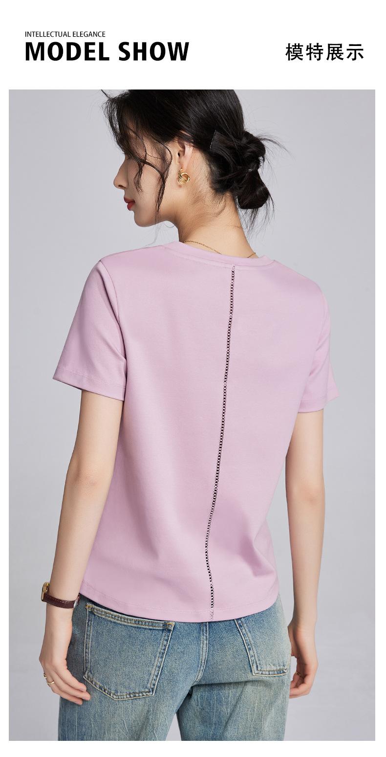 Camiseta de Hombro Manga Corta para Mujer Diseño de Agujas de Flores en la Espalda Verano 2025 Encaje Calado Cinta Algodón Mercerizado Sensación Fresca