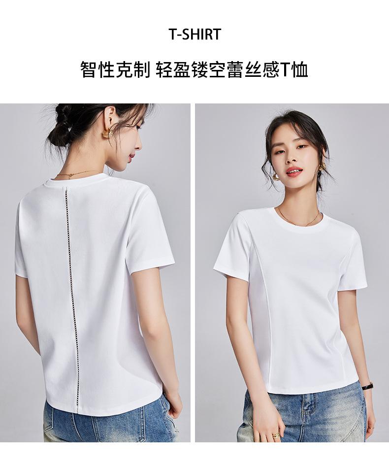 Compra Camiseta de Hombro Manga Corta para Mujer Diseño de Agujas de Flores en la Espalda Verano 2025 Encaje Calado Cinta Algodón Mercerizado Sensación Fresca al por mayor en Joom.pro