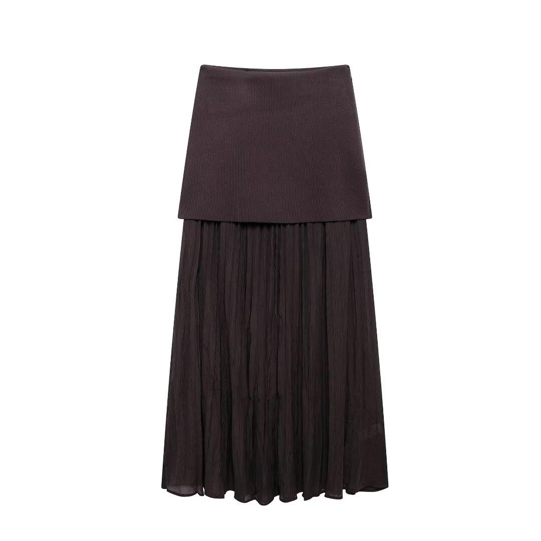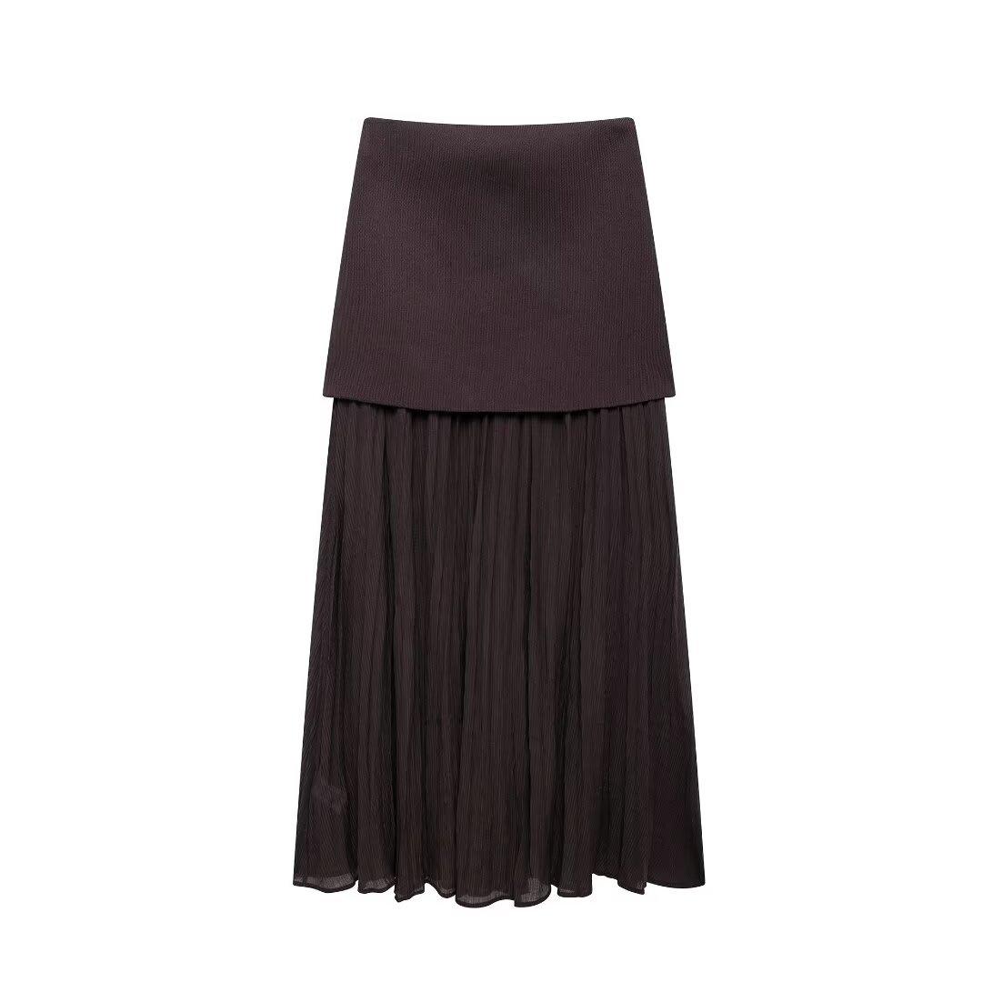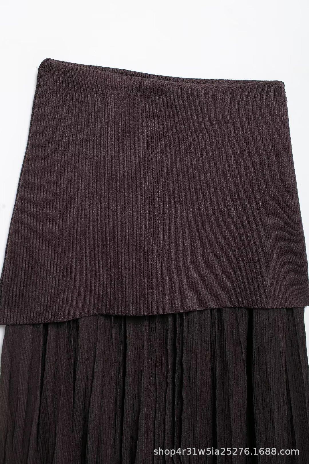 Estilo Europeo y Americano Amazon Venta al por Mayor Transfronteriza 2024 Moda Versátil Falda Tejida Plisada con Empalme