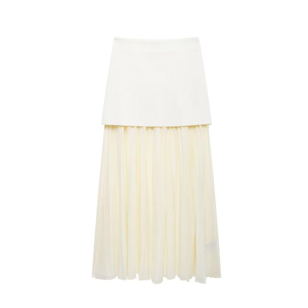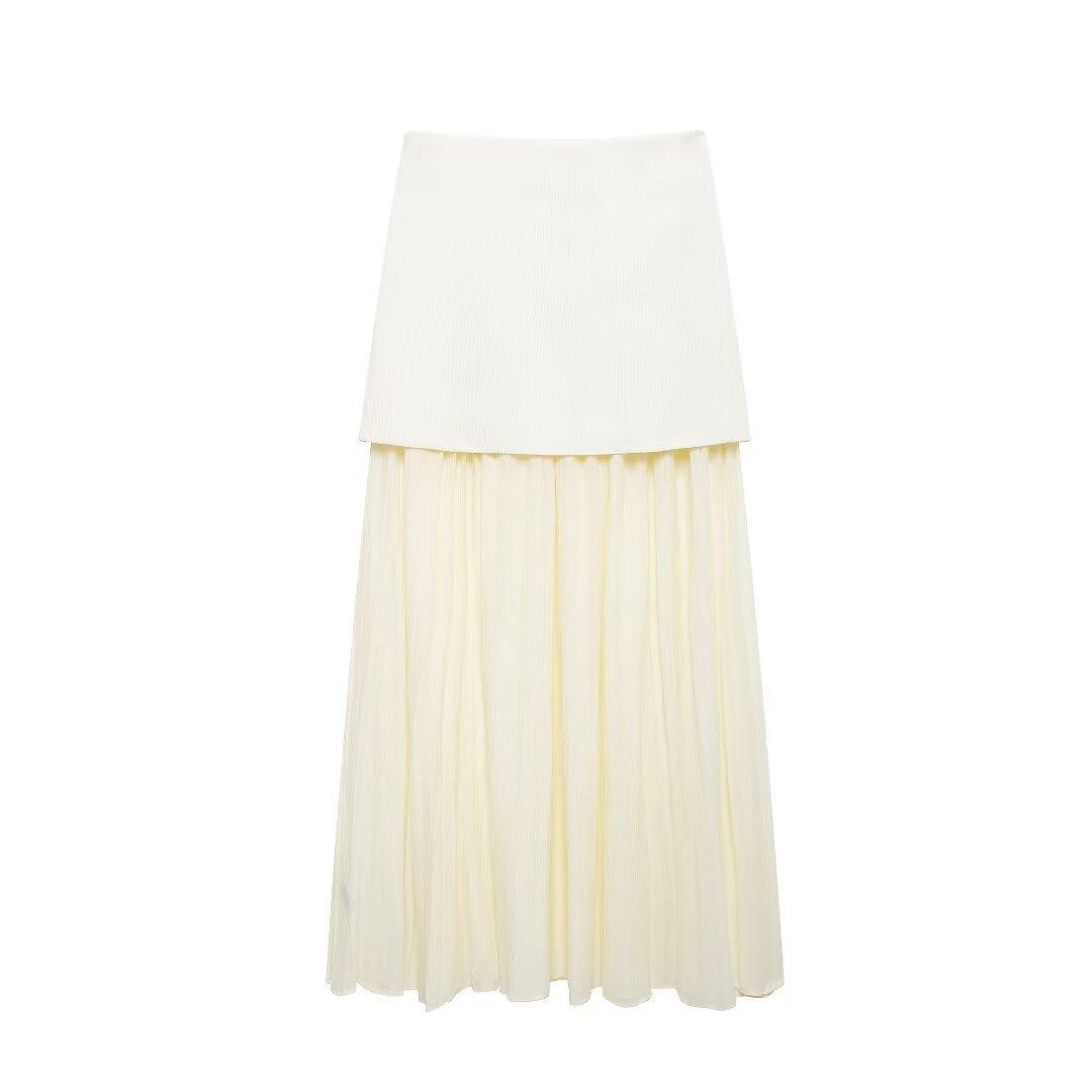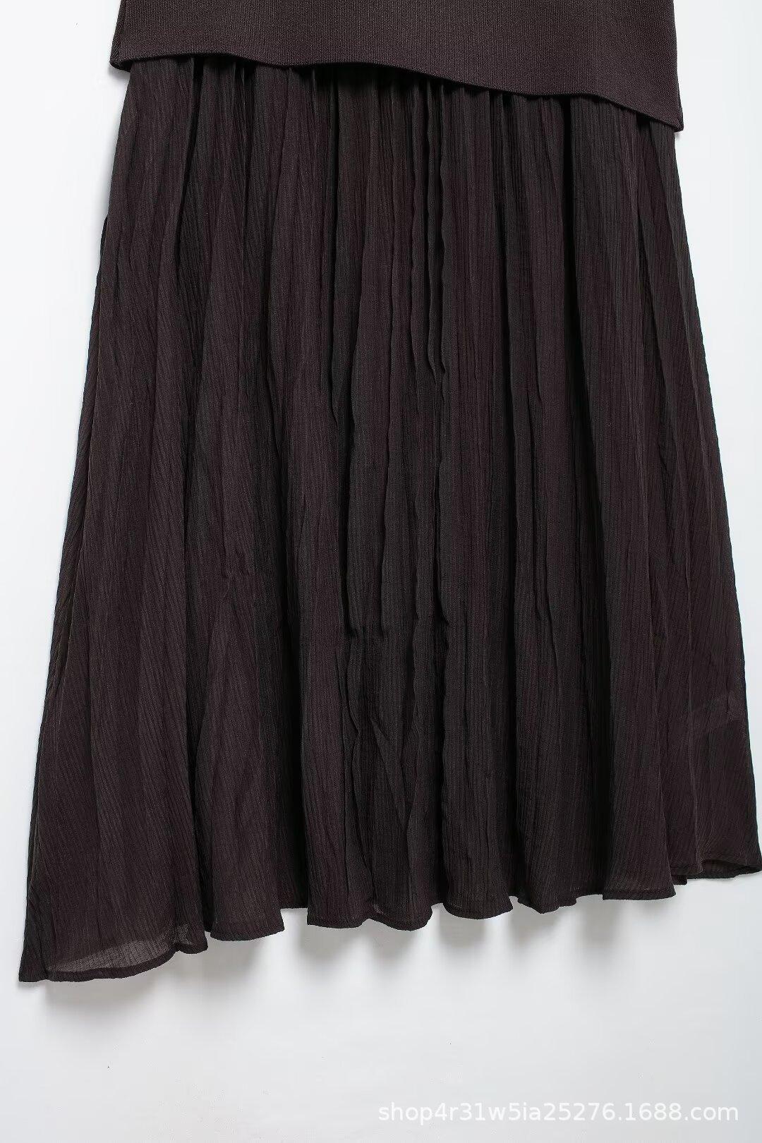 Estilo Europeo y Americano Amazon Venta al por Mayor Transfronteriza 2024 Moda Versátil Falda Tejida Plisada con Empalme
