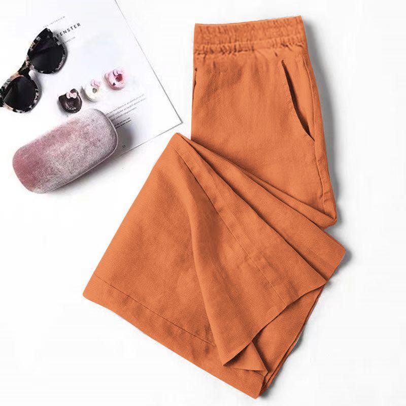 Pantalones de Pierna Ancha de Algodón y Lino Combinables Casuales Sueltos de Lino Rectos para Mujer