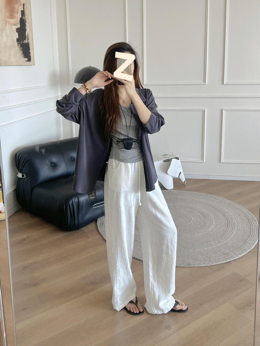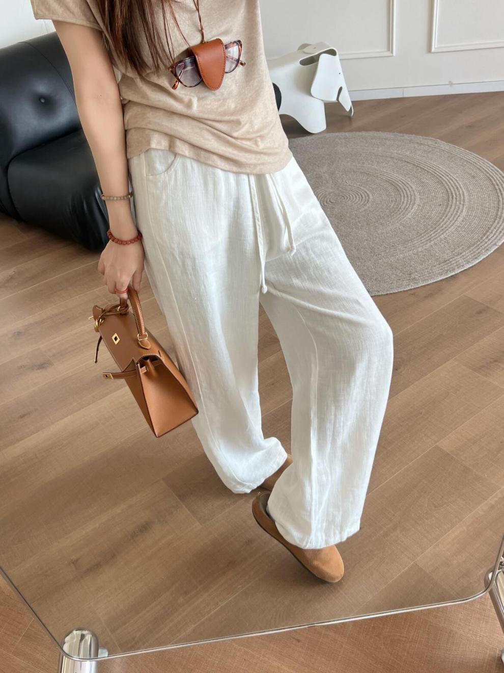 Compra Pantalones de Lino de Pierna Ancha para Mujer Verano Cintura Alta Material de Lino Ramio Holgados Adelgazantes Artísticos Rectos Pantalones Casuales Pantalones Largos al por mayor en Joom.pro