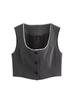 Camisa de Gasa de Color Sólido Calada sin Mangas para Mujer Verano 2023 Nuevo Estilo Diseño Elegante Top Delgado Versátil