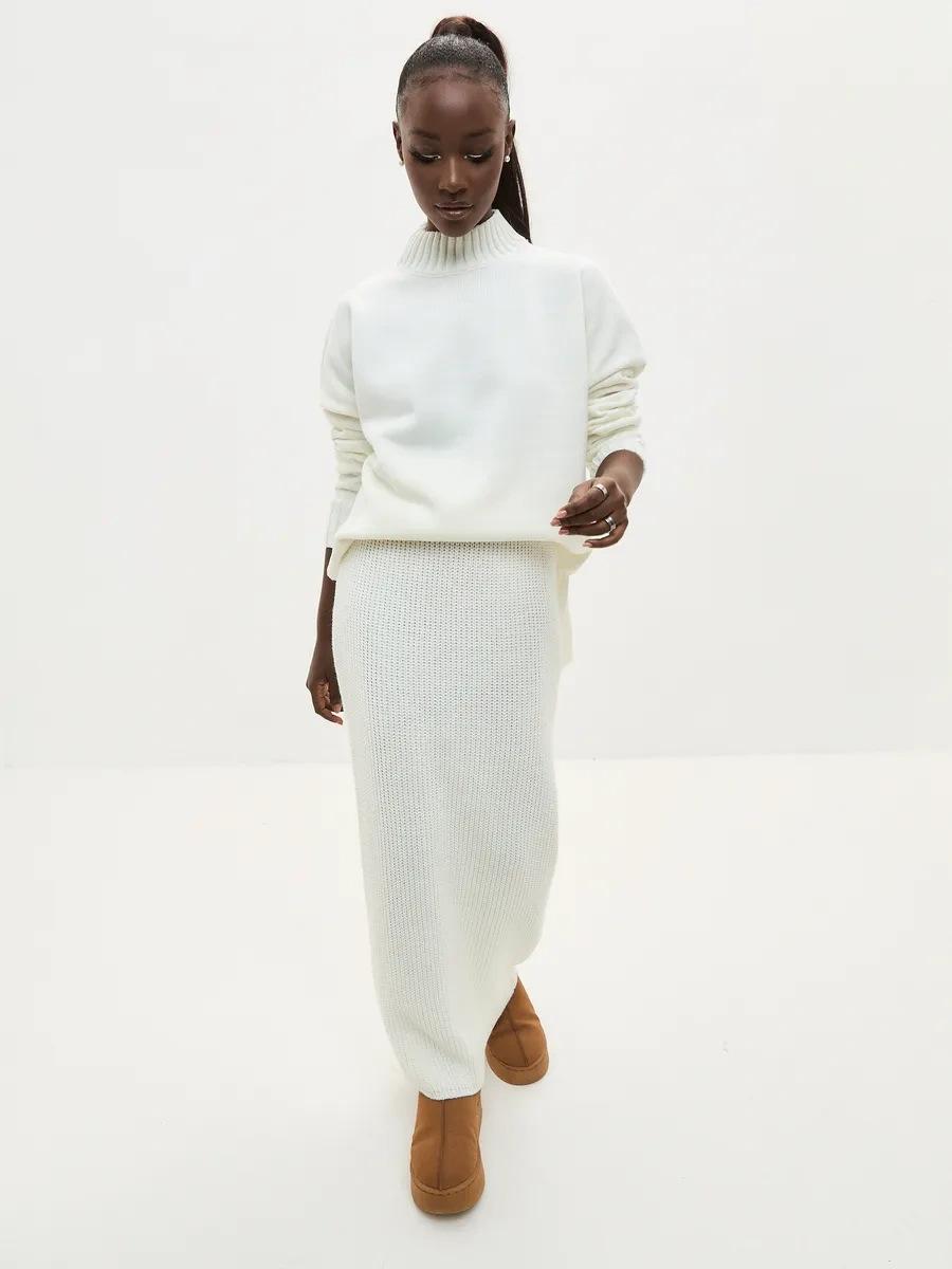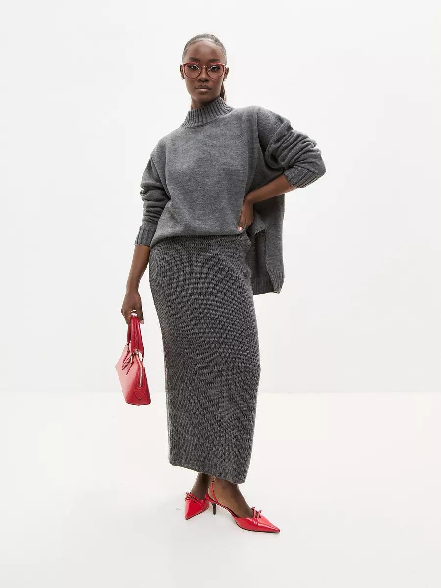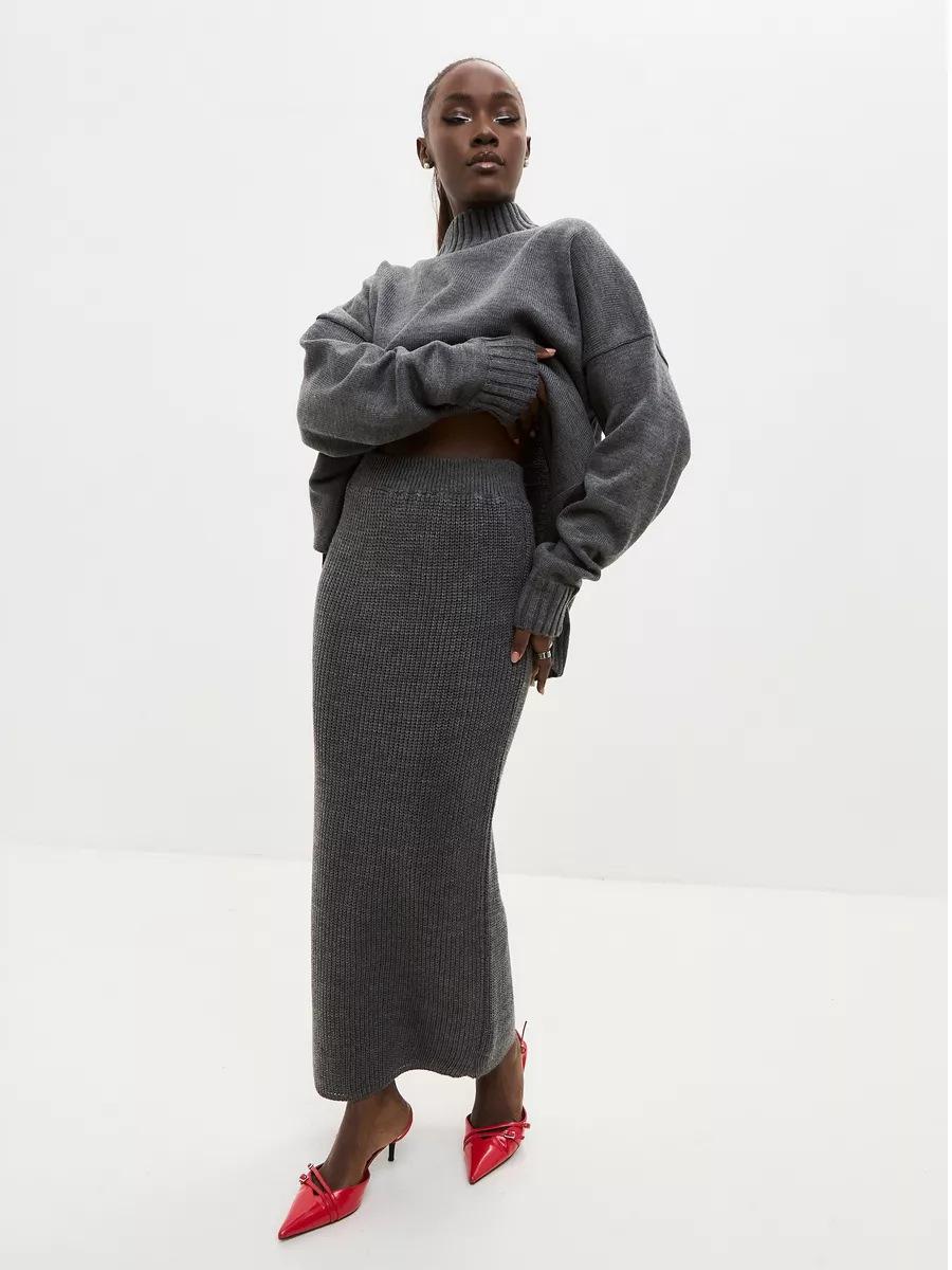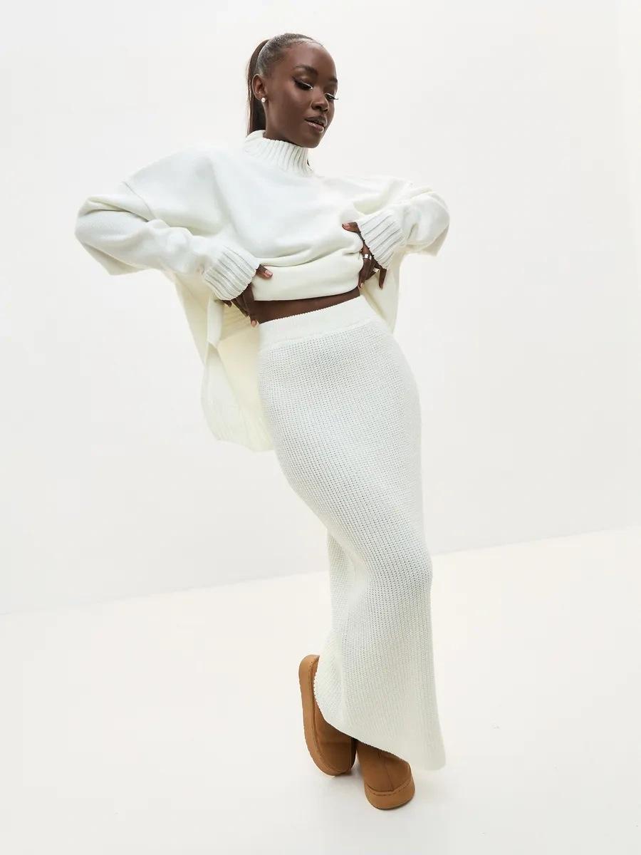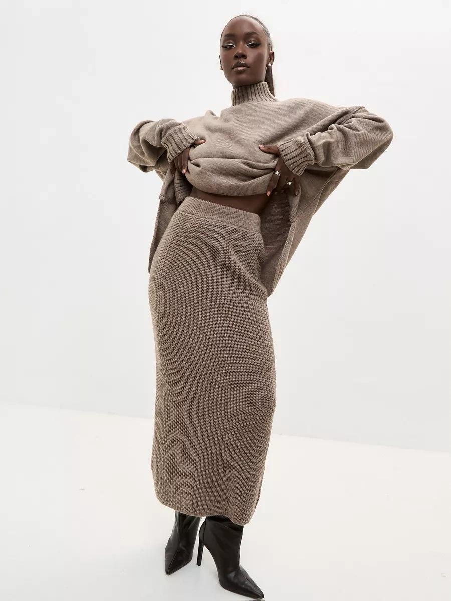 Ropa Europea y Americana Transfronteriza Otoño Nuevo Casual Suelto Moda Falda Larga Traje de Dos Piezas Suéter Traje Tejido