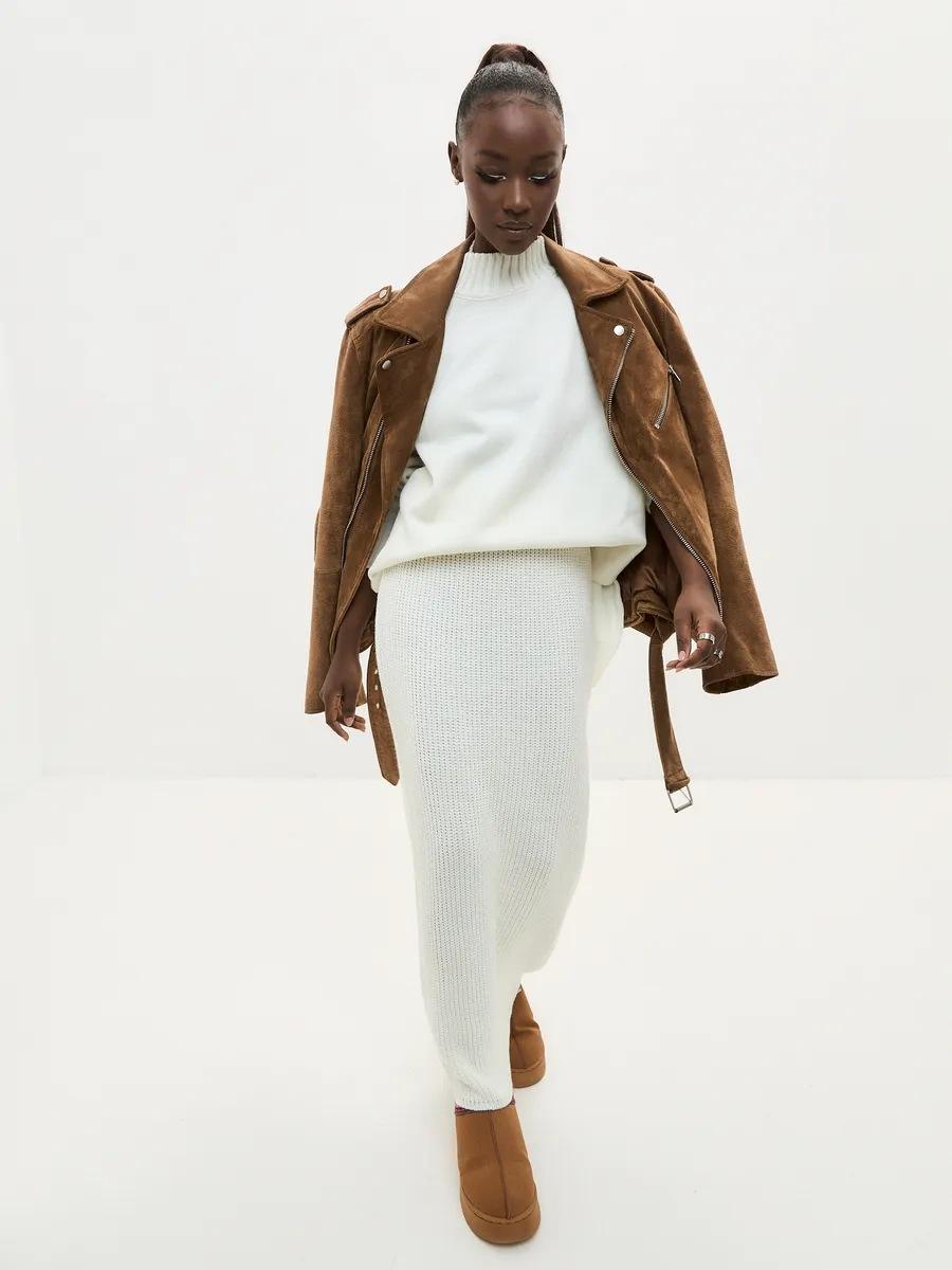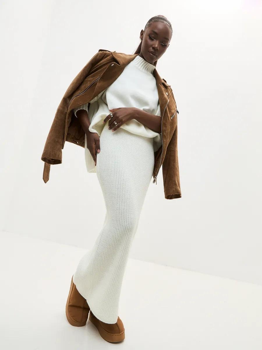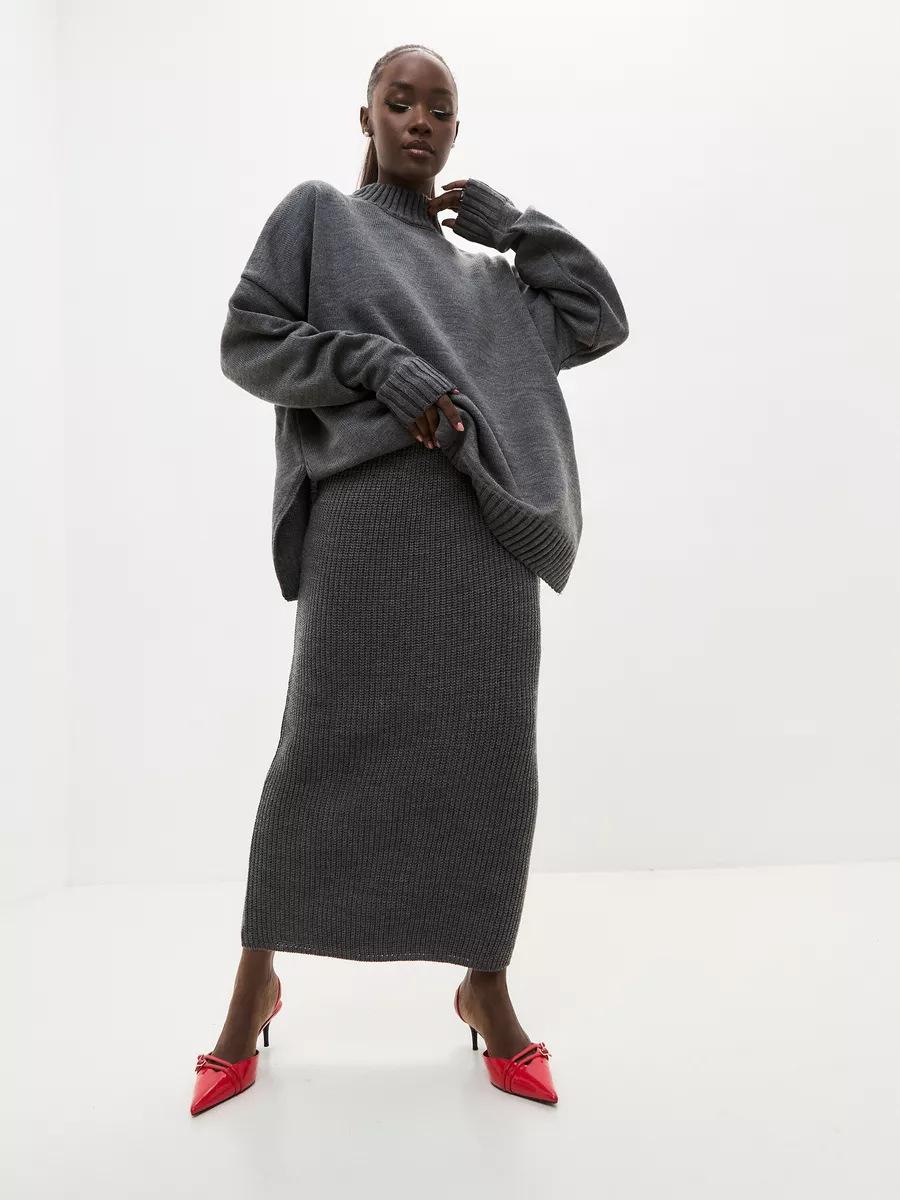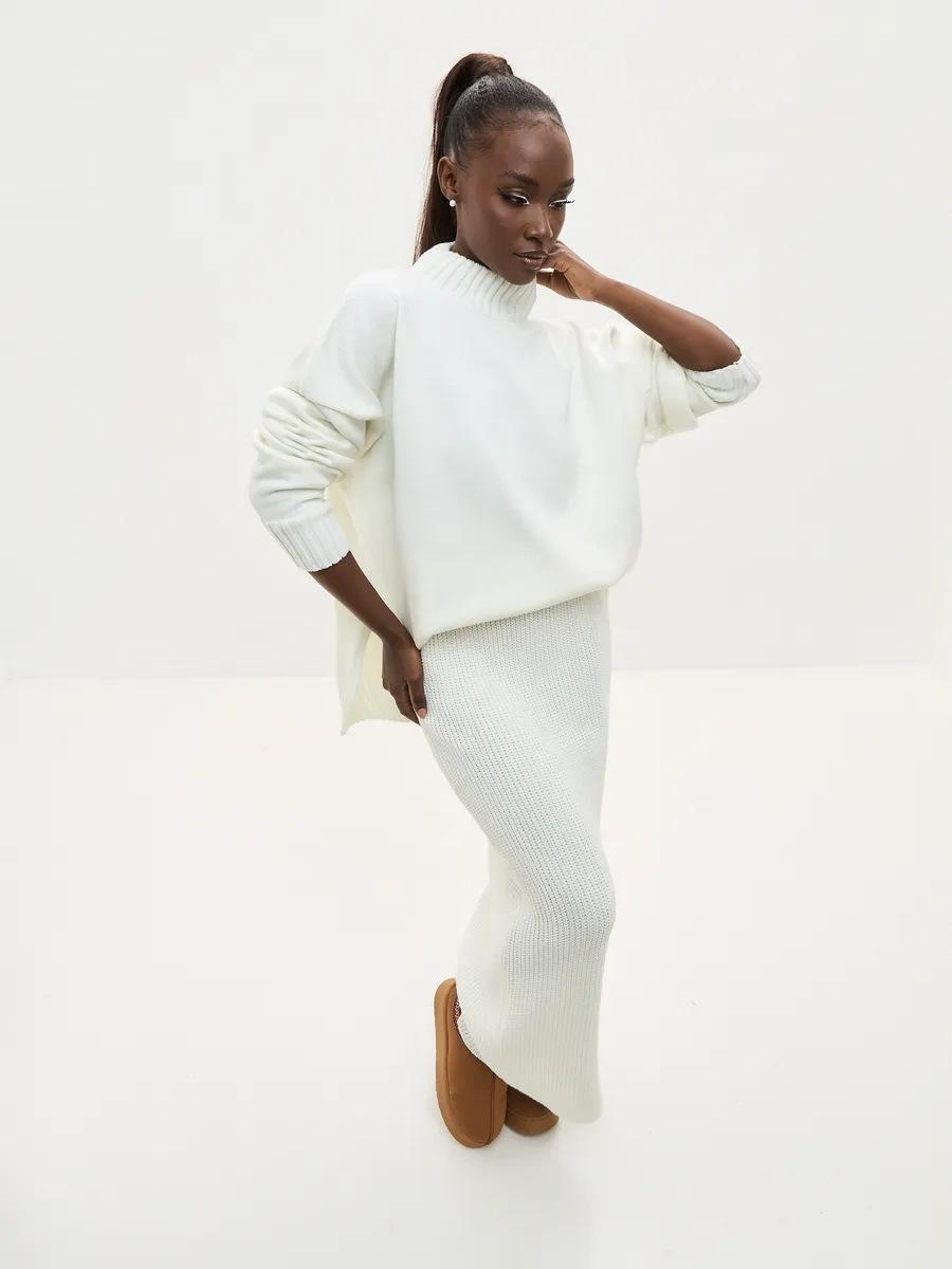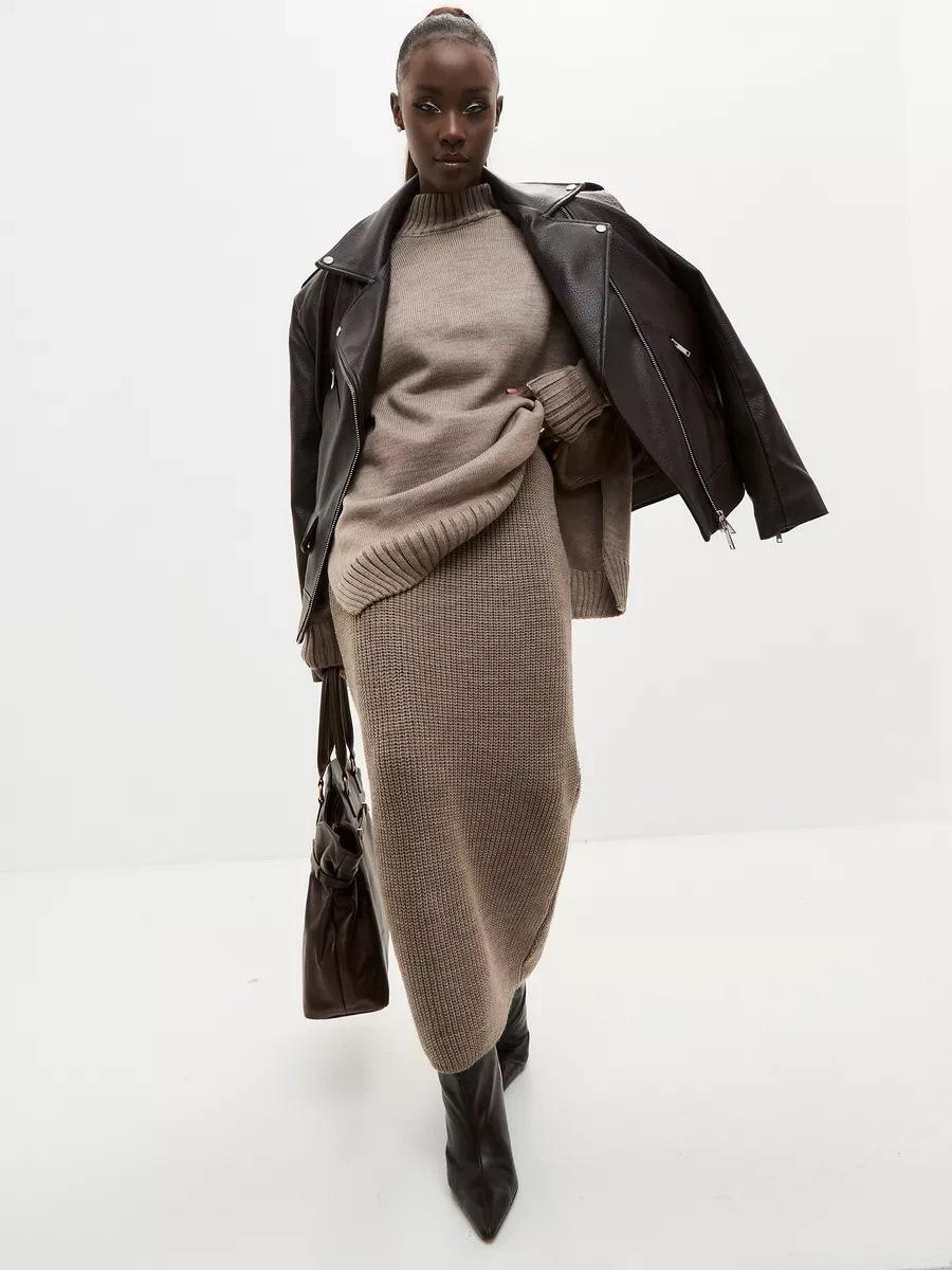 Ropa Europea y Americana Transfronteriza Otoño Nuevo Casual Suelto Moda Falda Larga Traje de Dos Piezas Suéter Traje Tejido