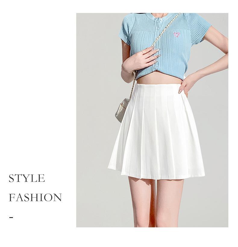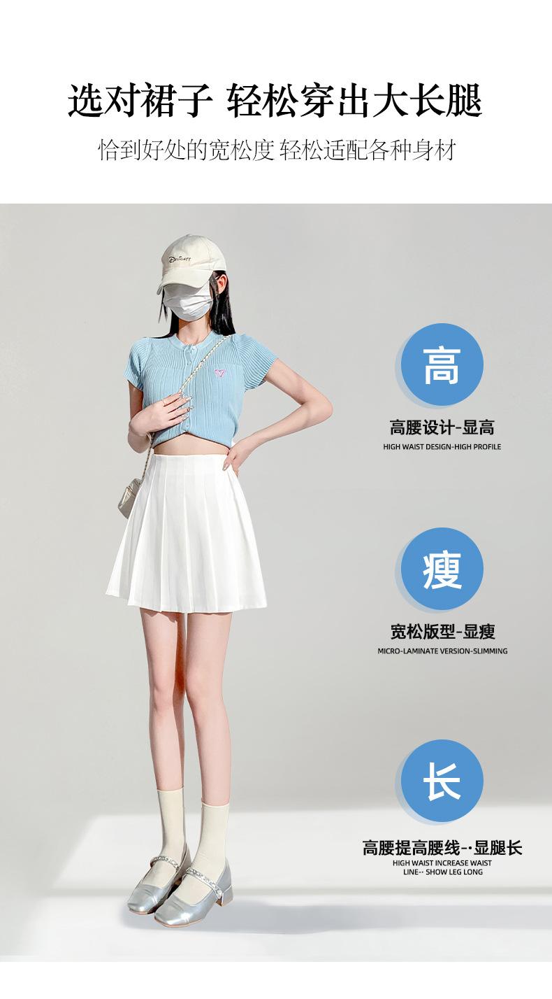 Falda Blanca para Mujer Verano 2025 Nuevo Estilo Pequeña Cintura Alta Slim Falda Línea A Estilo Universitario Falda Plisada