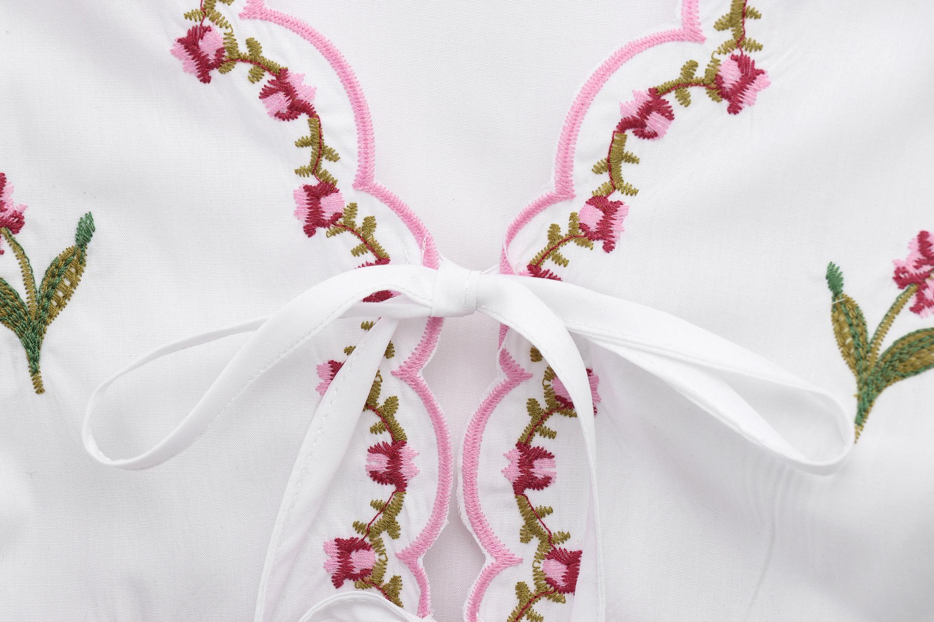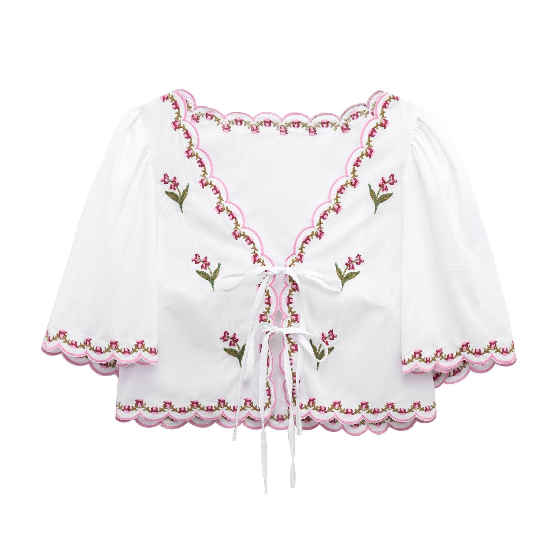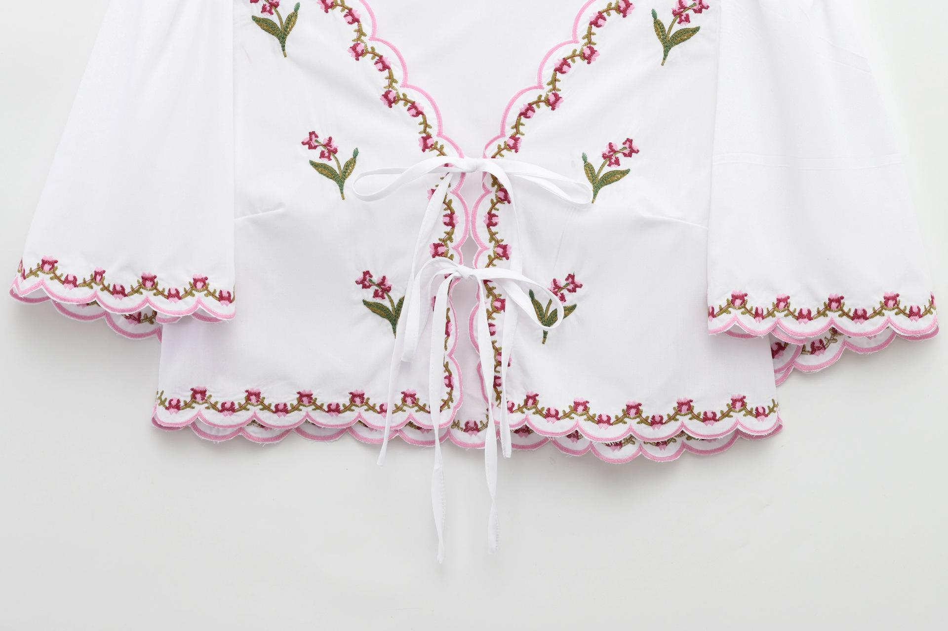 Exportación Transfronteriza Venta al por Mayor Ropa de Mujer Verano 2025 Estilo Europeo y Americano Cuello en V Encaje Bordado con Cordones Camisas de Manga Larga Tops para Mujer K52599