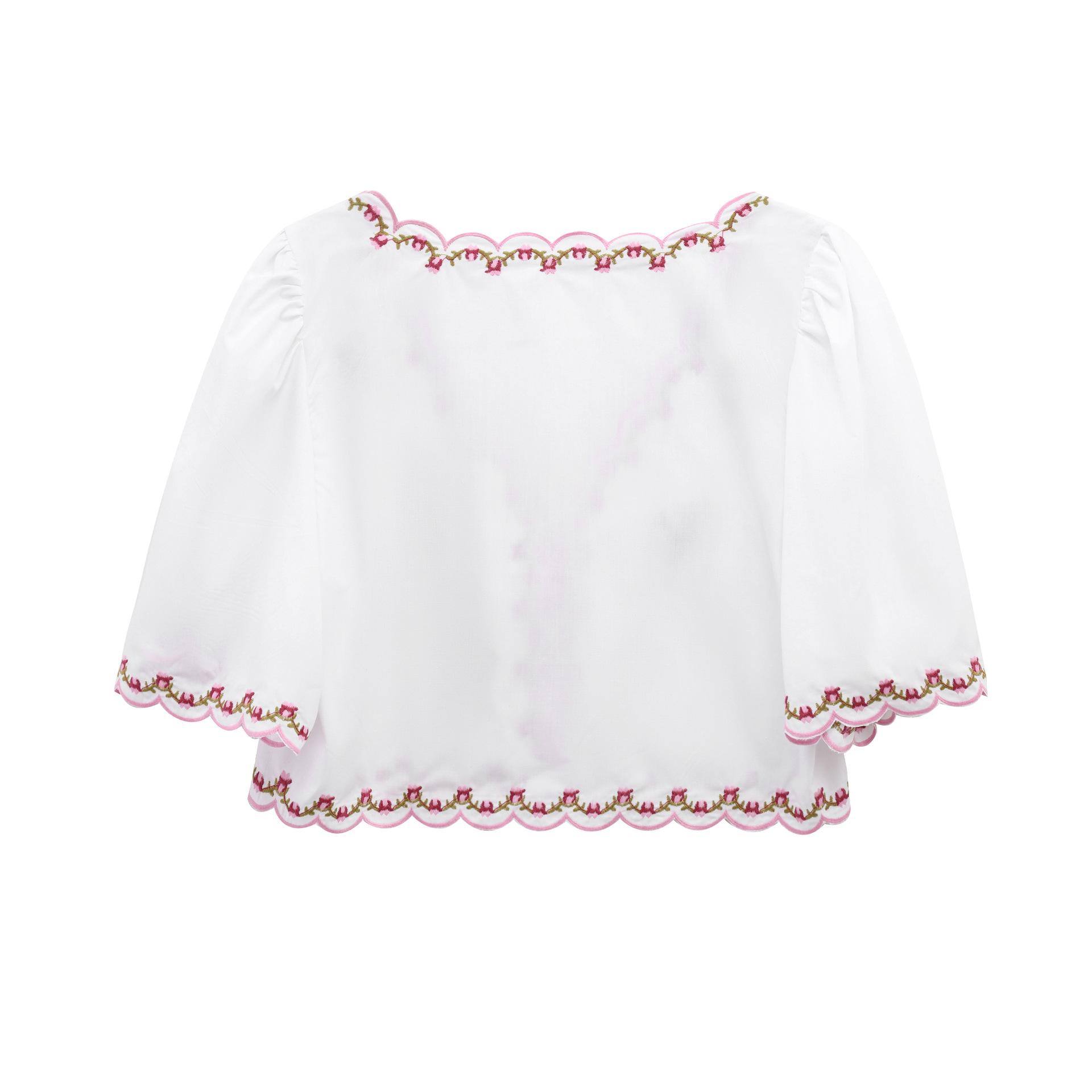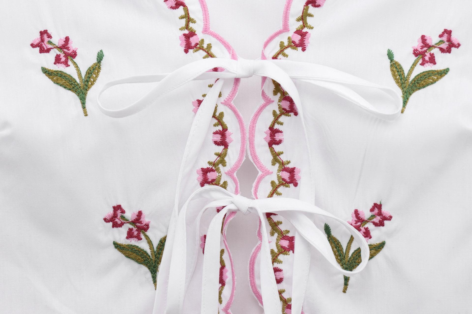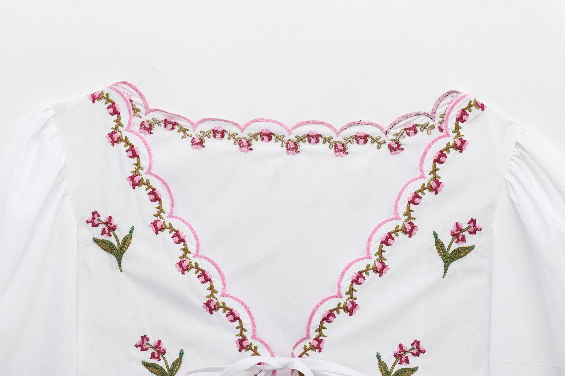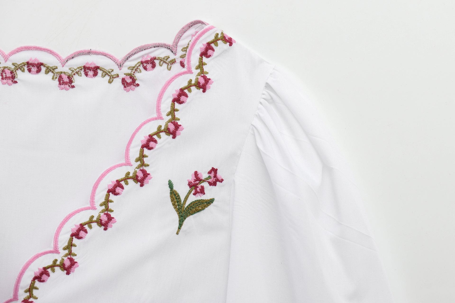 Exportación Transfronteriza Venta al por Mayor Ropa de Mujer Verano 2025 Estilo Europeo y Americano Cuello en V Encaje Bordado con Cordones Camisas de Manga Larga Tops para Mujer K52599