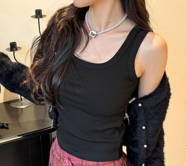 Camisola de Tirantes de Hombro Ancho para Mujer, Nuevo Estilo Verano 2025, Cuello Cuadrado, Ajuste Slim, Top Base para Exterior, Ins