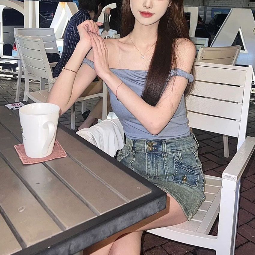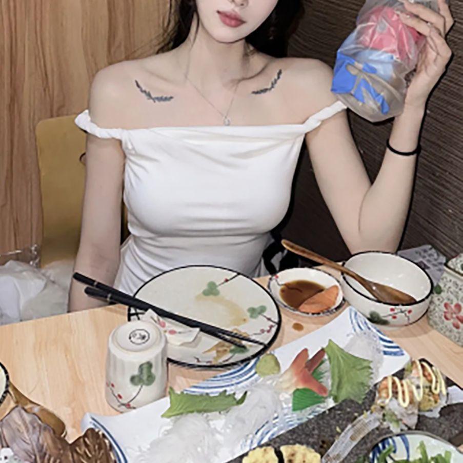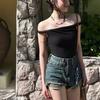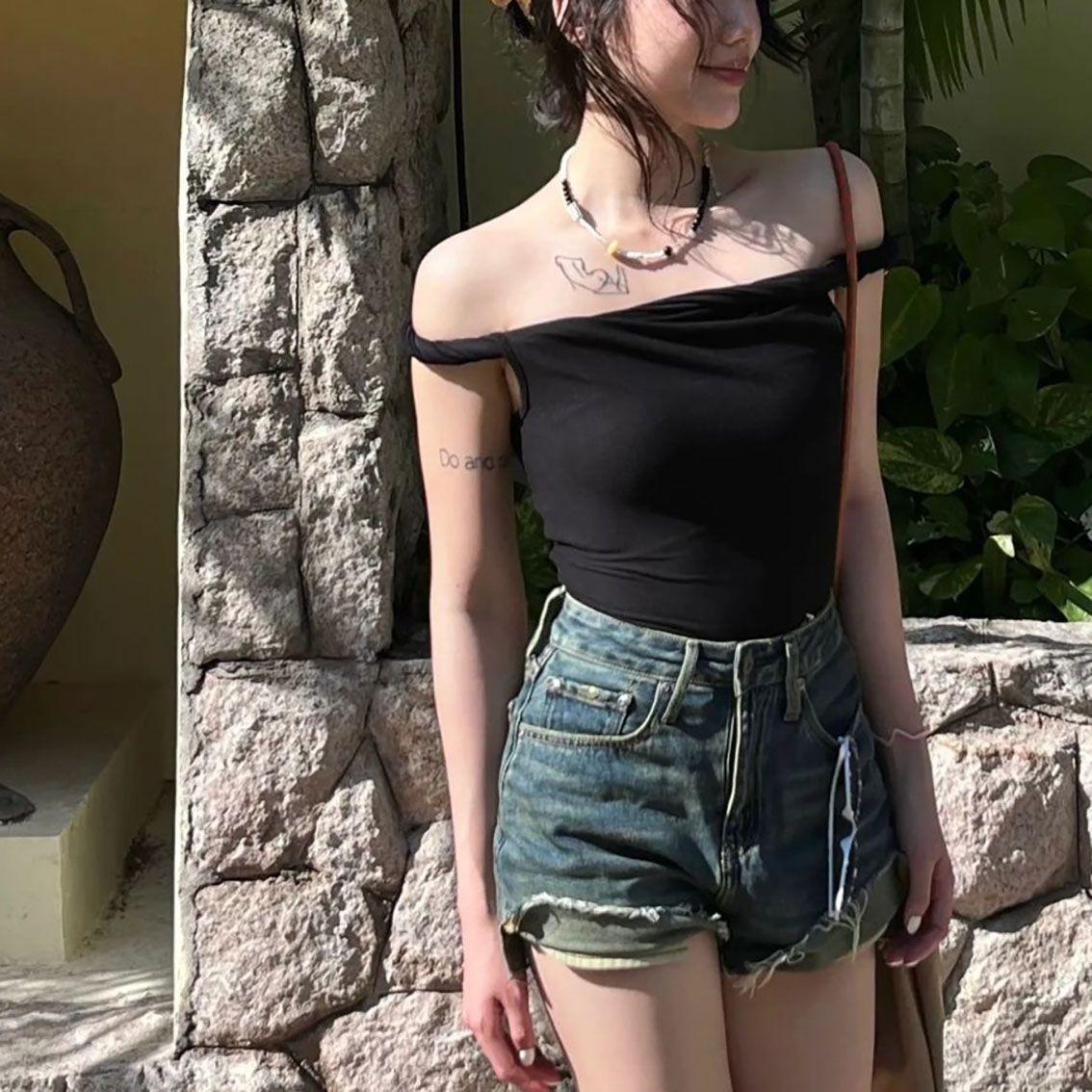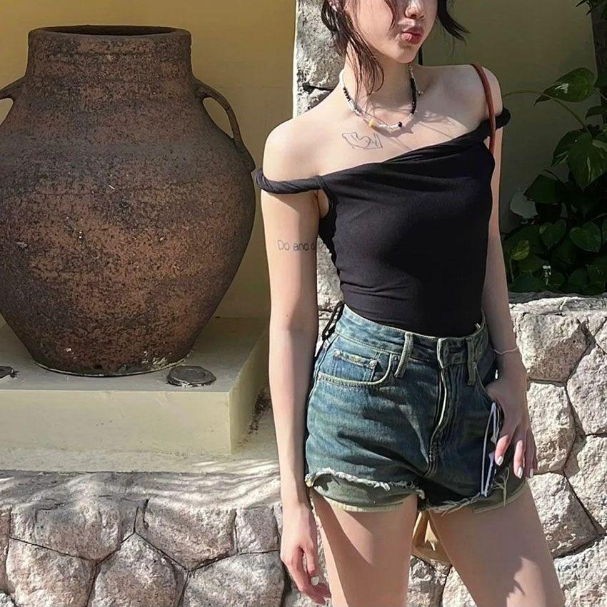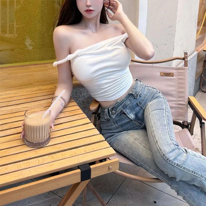 Venta al por Mayor Transfronteriza Estilo Puro y Sexy Dulce y Picante Top Halter de un Hombro para Mujer, Ropa Interior de Verano, Camiseta Corta Sexy para Chicas Calientes