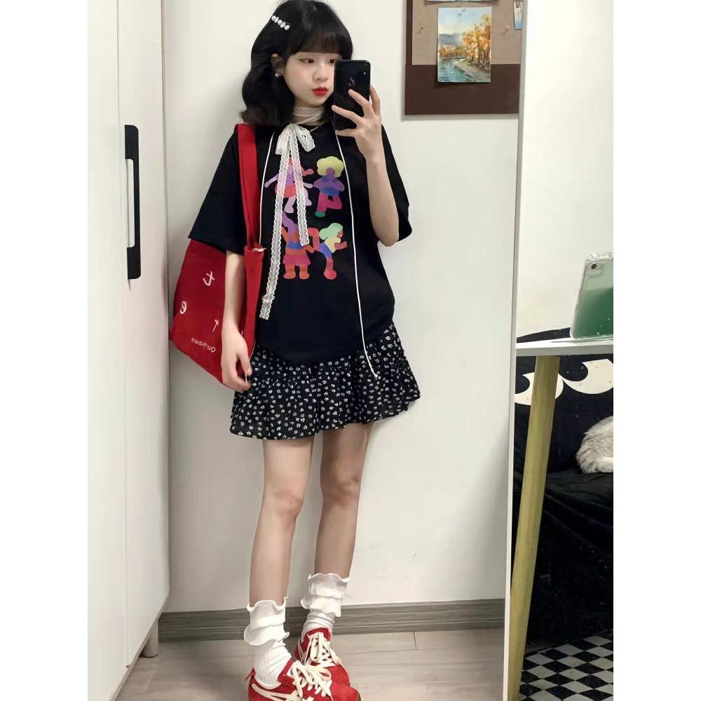 Camiseta de Manga Corta para Pareja de Estilo Americano de Calle, Holgada y Relajada, para Mujer, Verano, Calle, Versátil, Sencilla, con Estampado