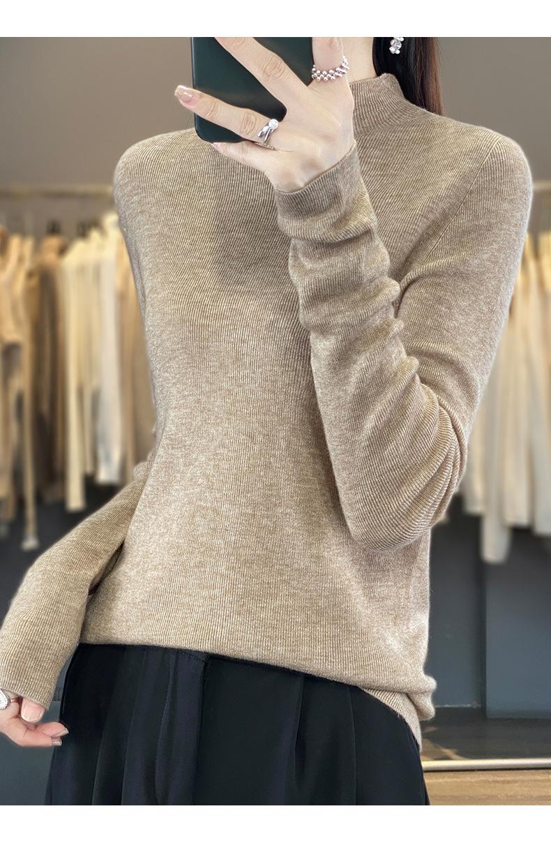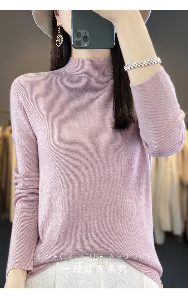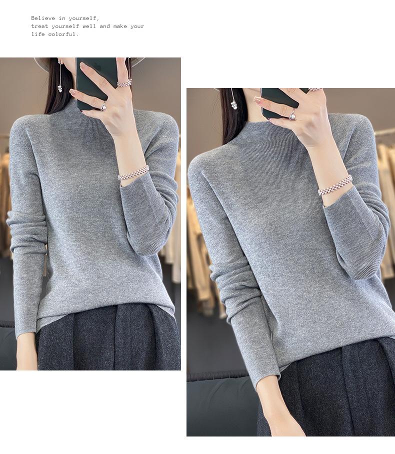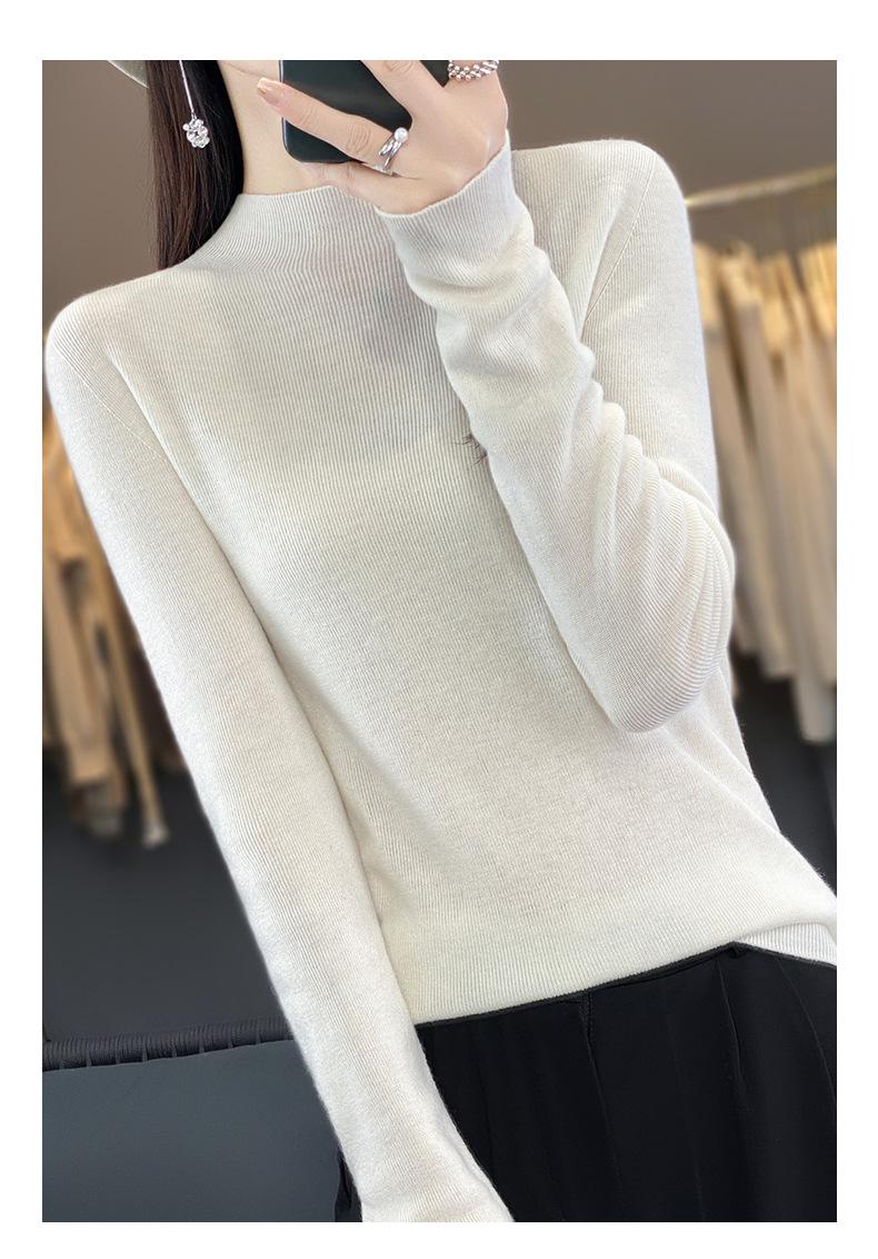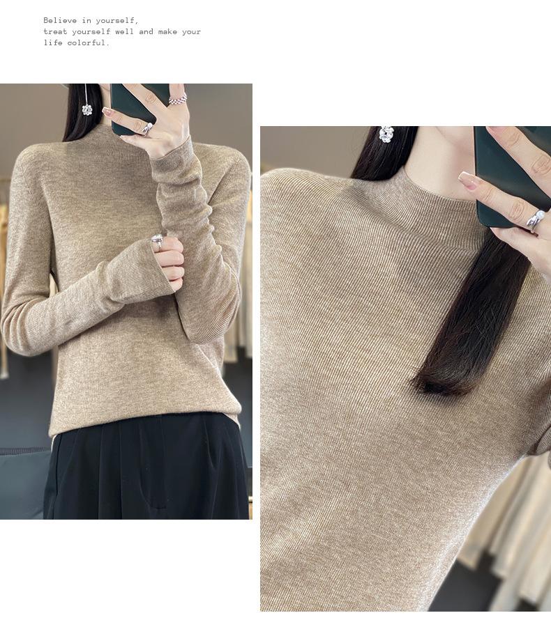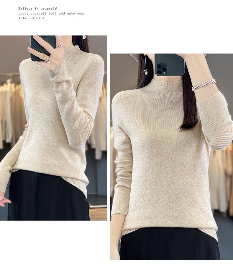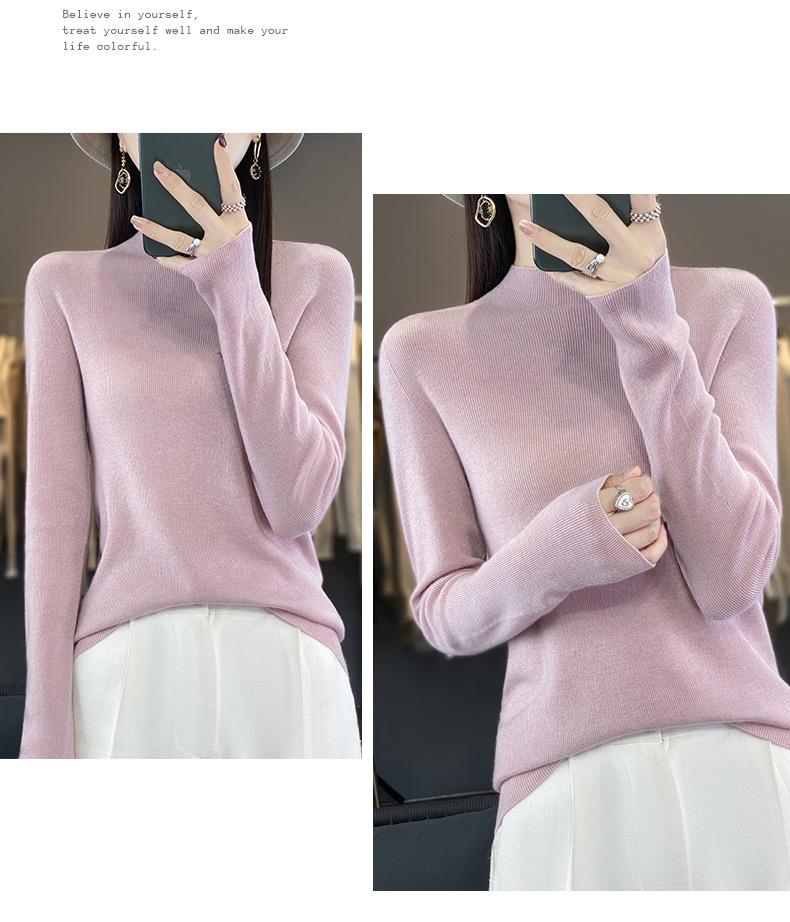 Compra Camisa de punto de manga larga de imitación fina para mujer, jersey de cuello alto medio, diseño que combina con todo, suéter interior fino y ajustado. al por mayor en Joom.pro
