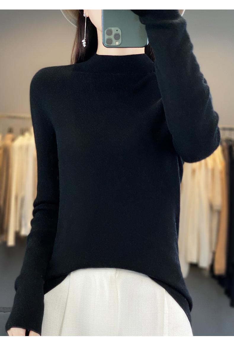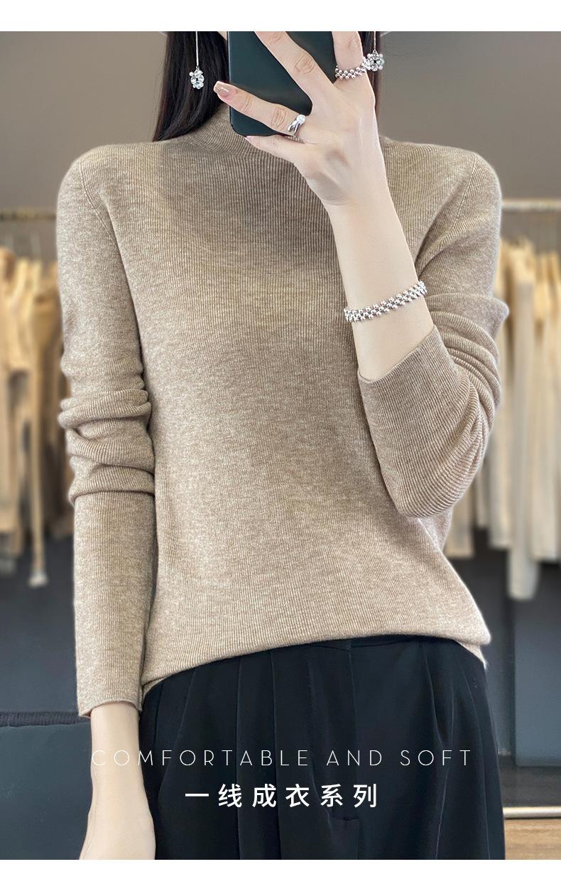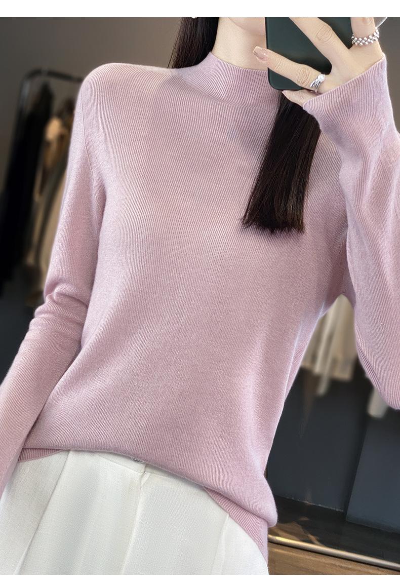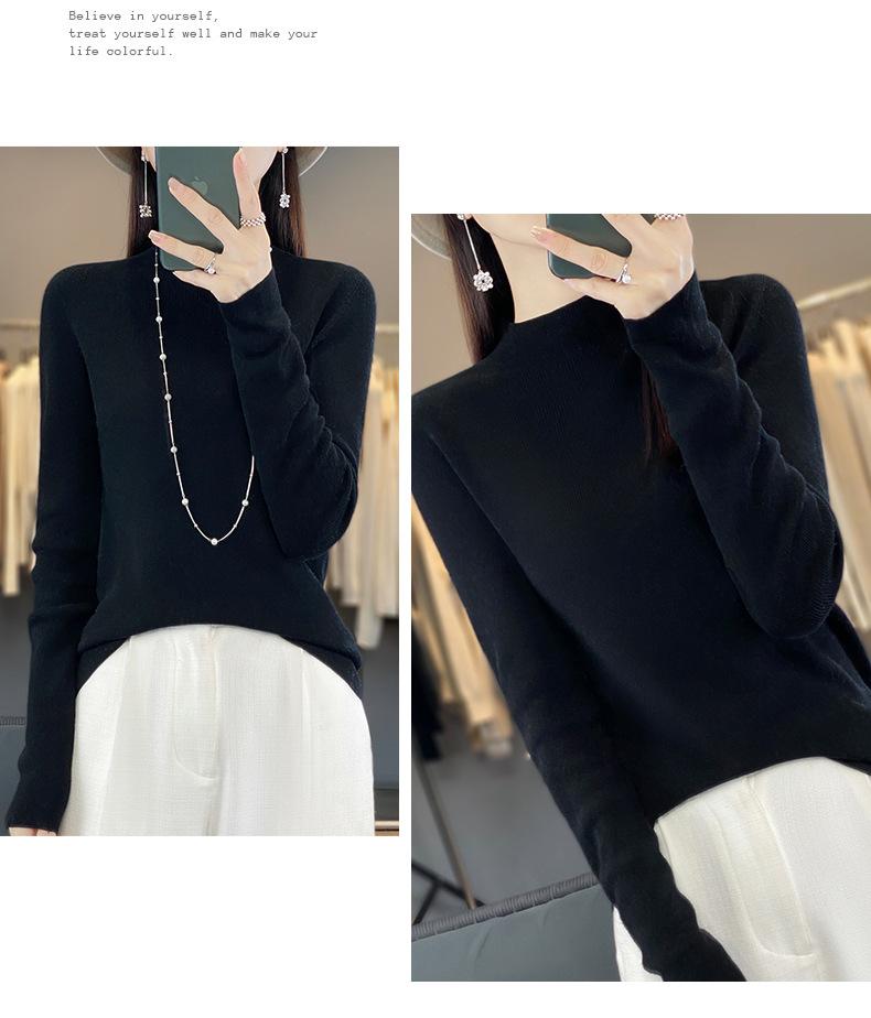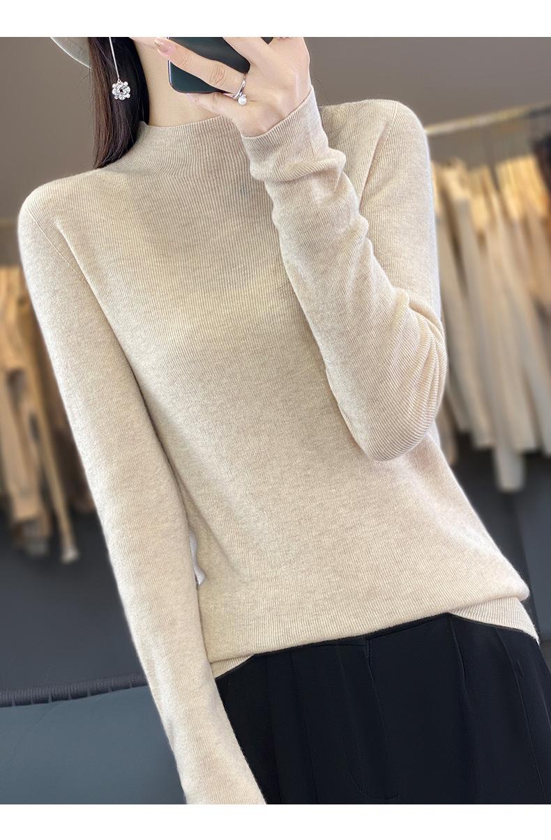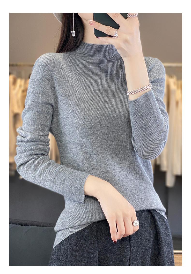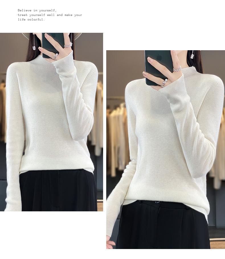 Compra Camisa de punto de manga larga de imitación fina para mujer, jersey de cuello alto medio, diseño que combina con todo, suéter interior fino y ajustado. al por mayor en Joom.pro