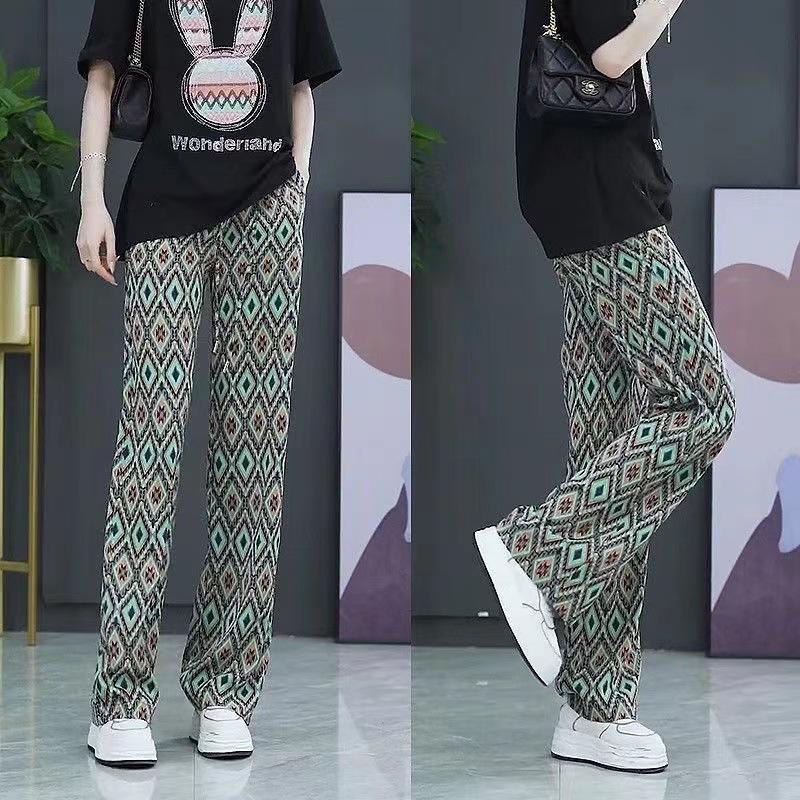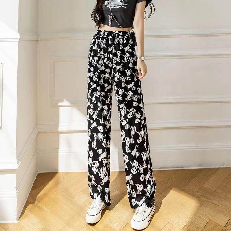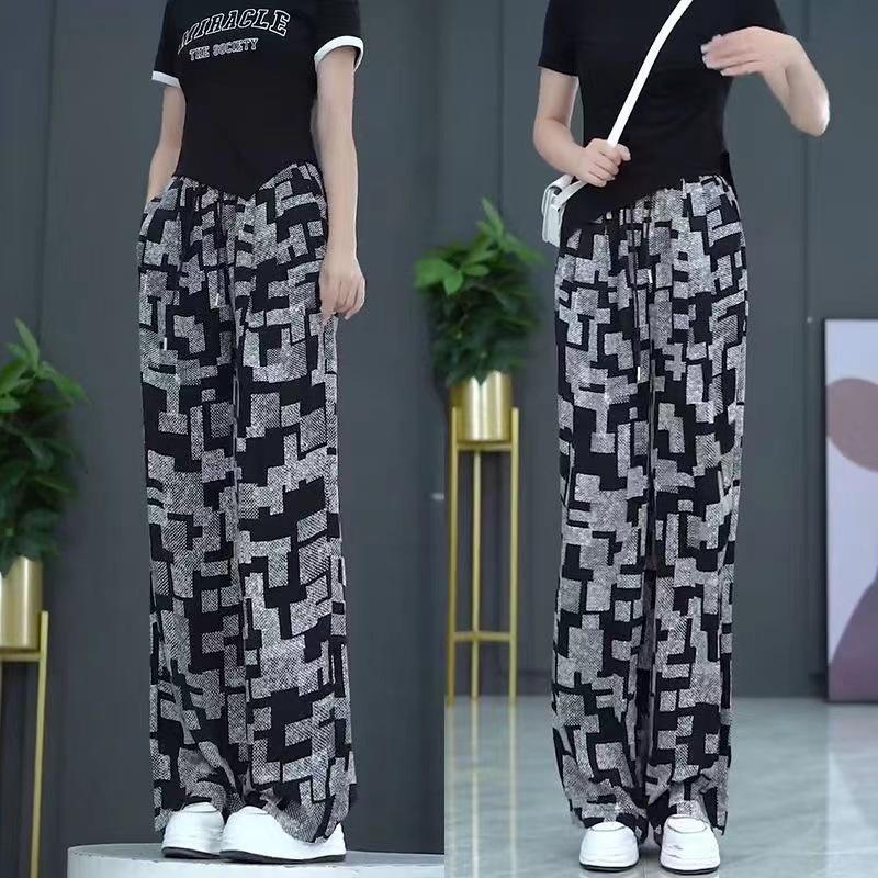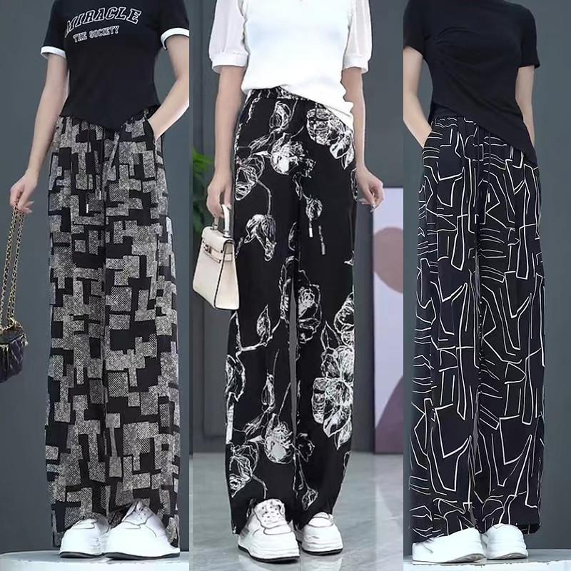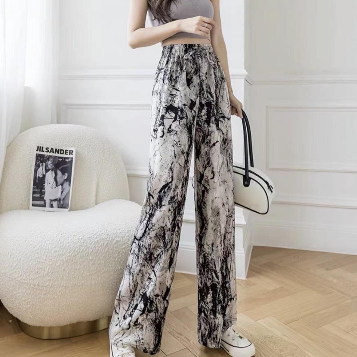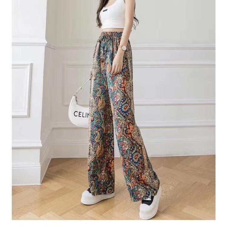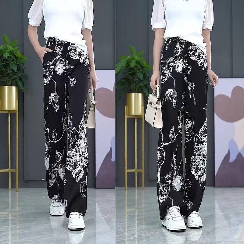 Pantalones de Pierna Ancha de Seda de Hielo de Bolsillo para Mujer Verano Adelgazantes Sueltos Talla Extra Rectos Casuales Pantalones Frescos Antimosquitos con Flores