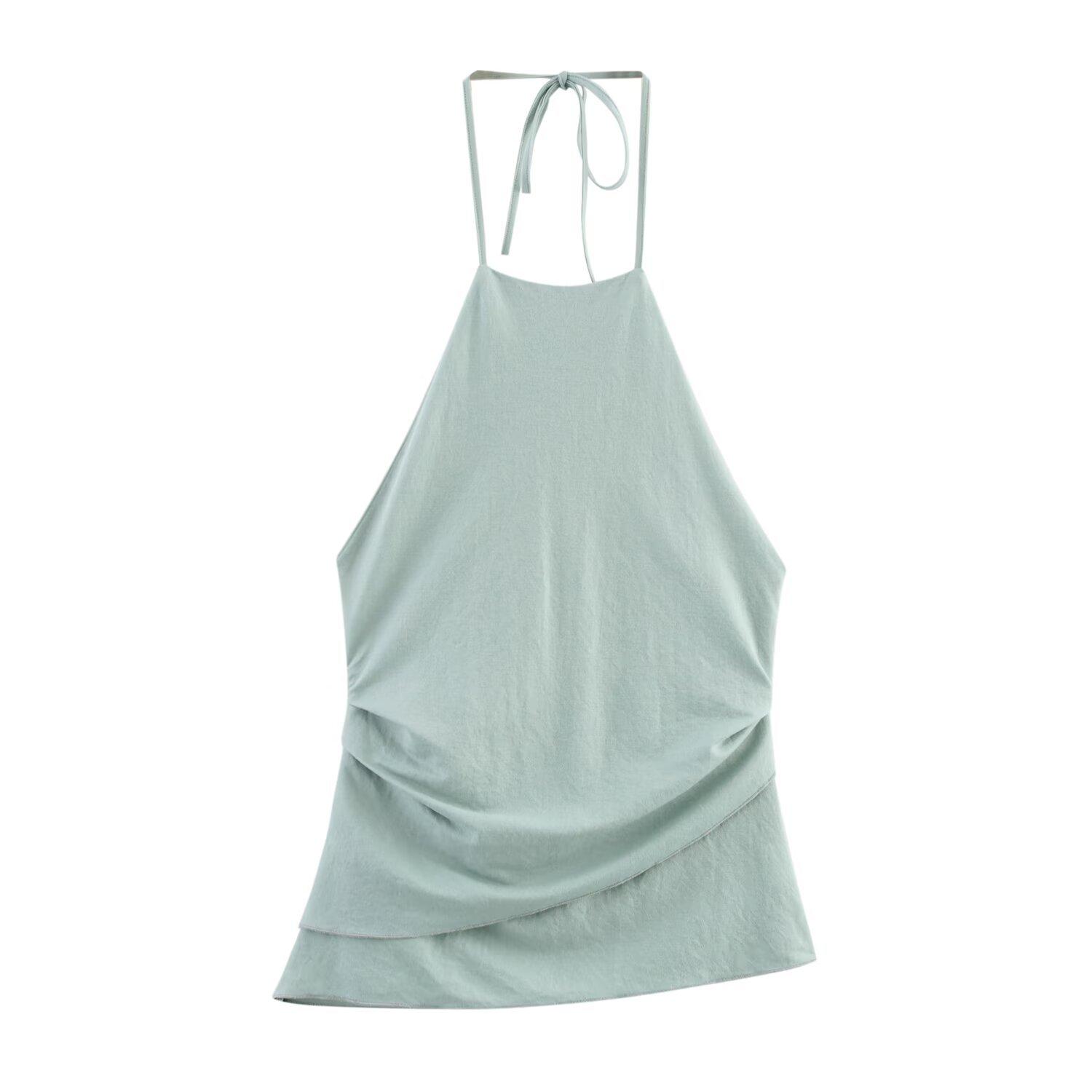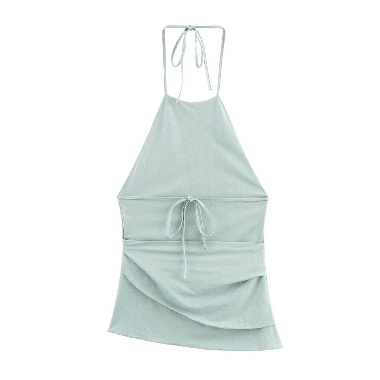 2025 Nueva Ropa de Verano para Mujer Estilo Europeo y Americano Moda Sencilla Top Halter sin Espalda 0264334