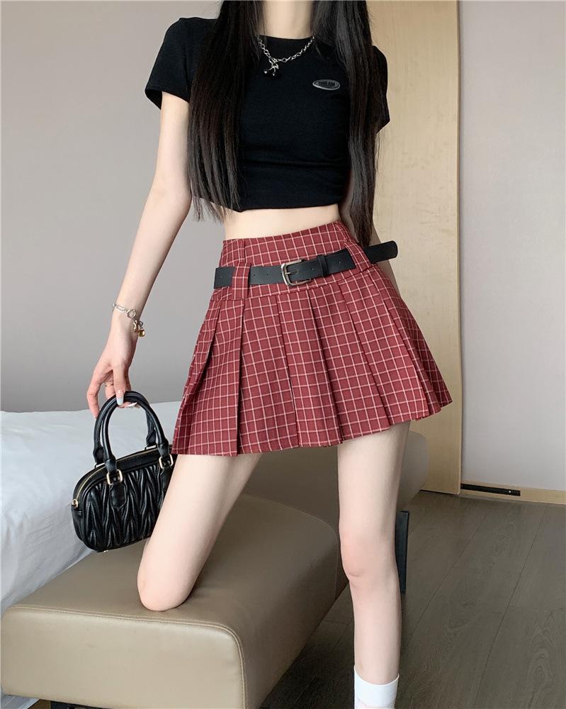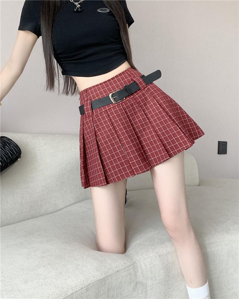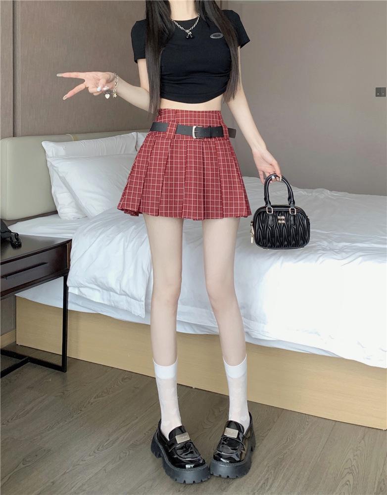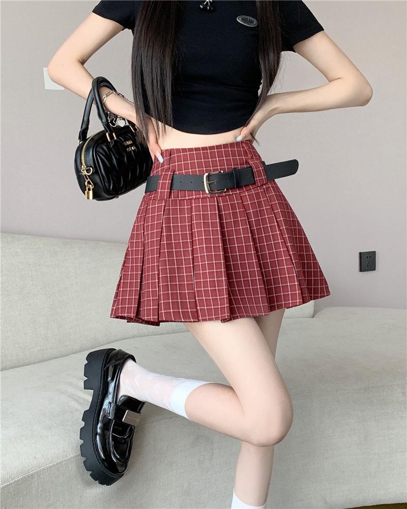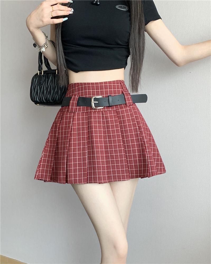 Falda plisada estilo americano de corte A para mujer, novedad de verano 2025, falda corta adelgazante, falda a cuadros con funda antideslizante, falda media de moda