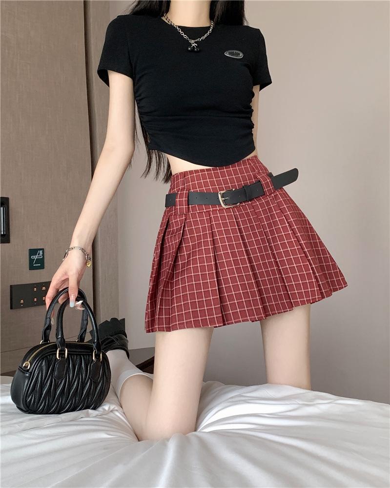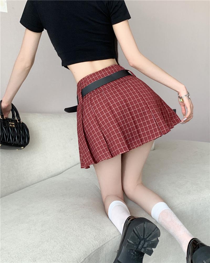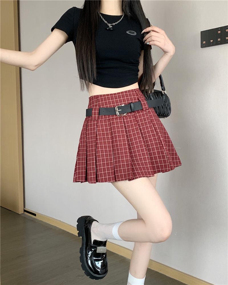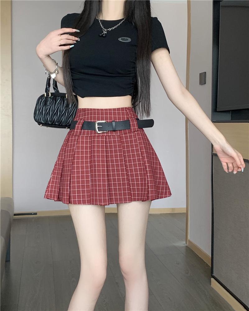 Falda plisada estilo americano de corte A para mujer, novedad de verano 2025, falda corta adelgazante, falda a cuadros con funda antideslizante, falda media de moda