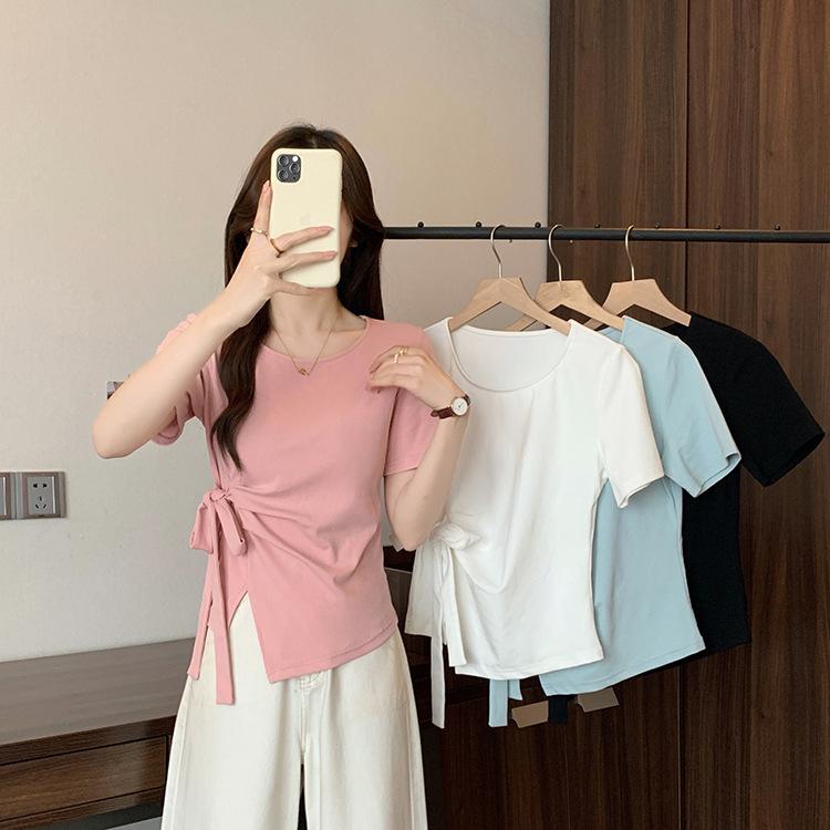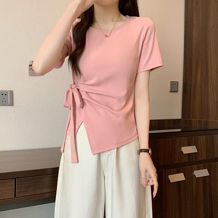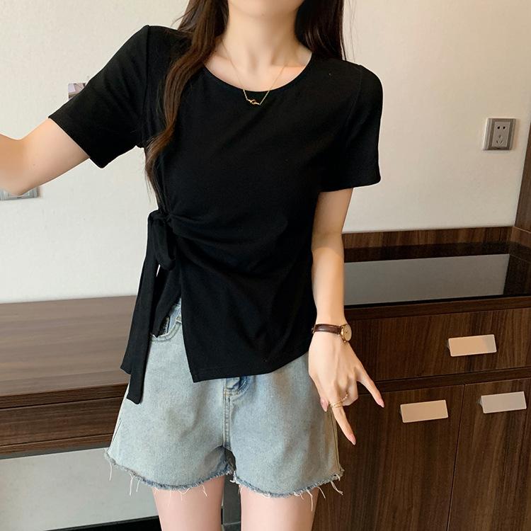 Talla grande Gordita Casual Irregular Camiseta Camiseta de manga corta Mujer 2025 Nuevo Verano chica gordita Cubre carne Top delgado