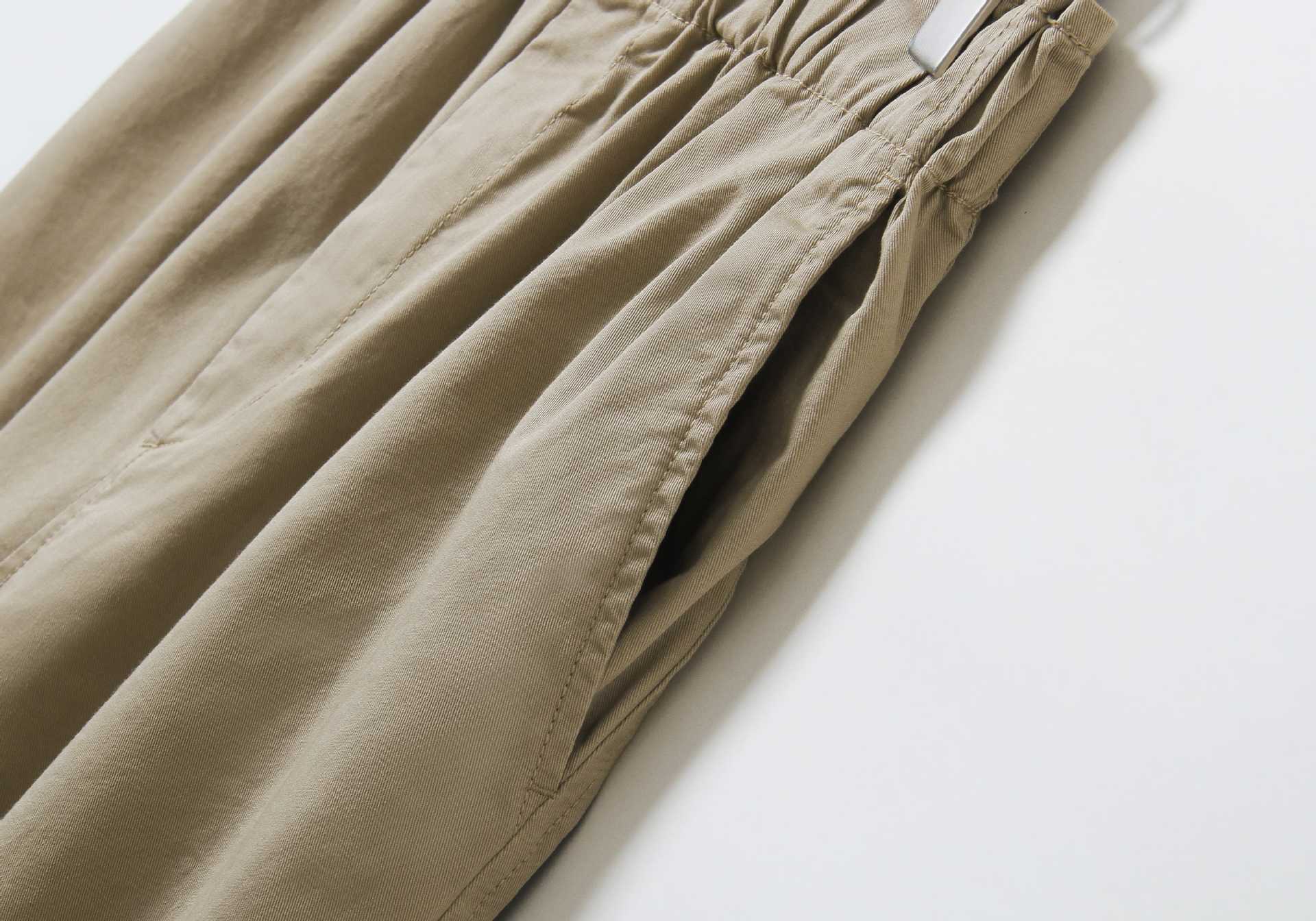 Pantalones casuales holgados de trabajo para mujer de algodón puro, color sólido versátil, cintura elástica suave, pierna recta, procesamiento al por mayor, talle alto adelgazante