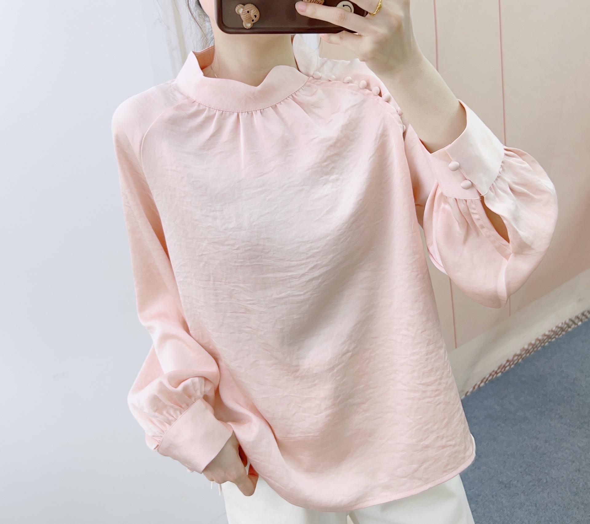 Primavera 2025 Nuevo Elegante Nuevo Estilo Chino Estilo Nacional Cuello Ondulado Manga Larga Camisa Slim 001