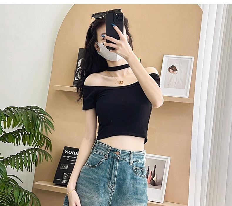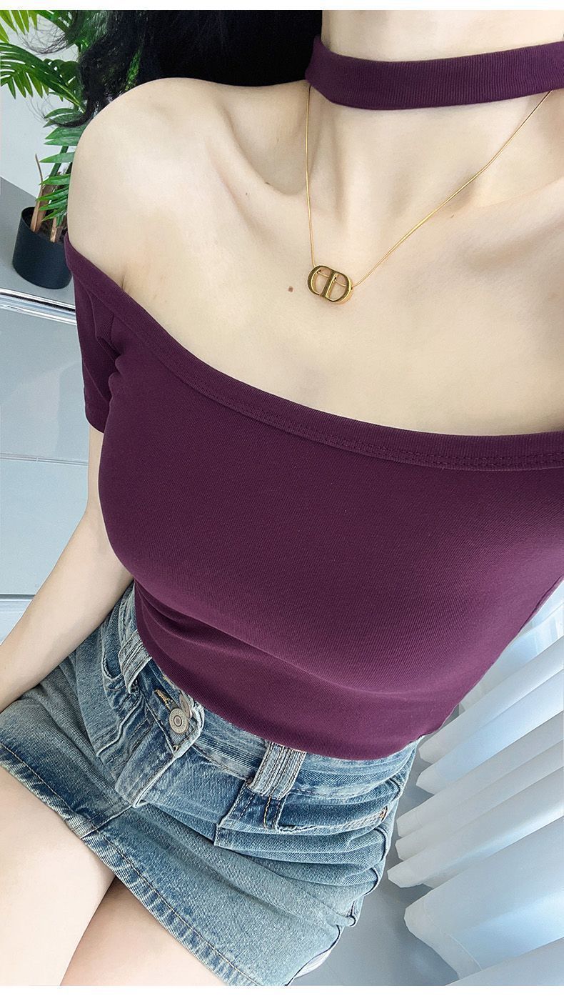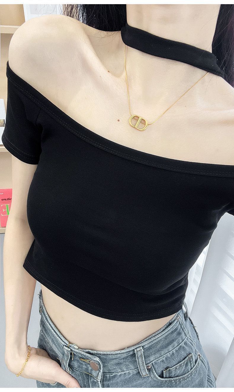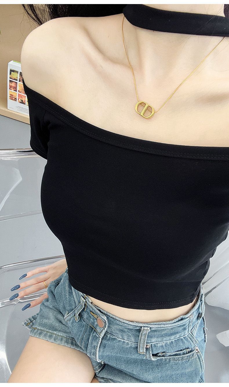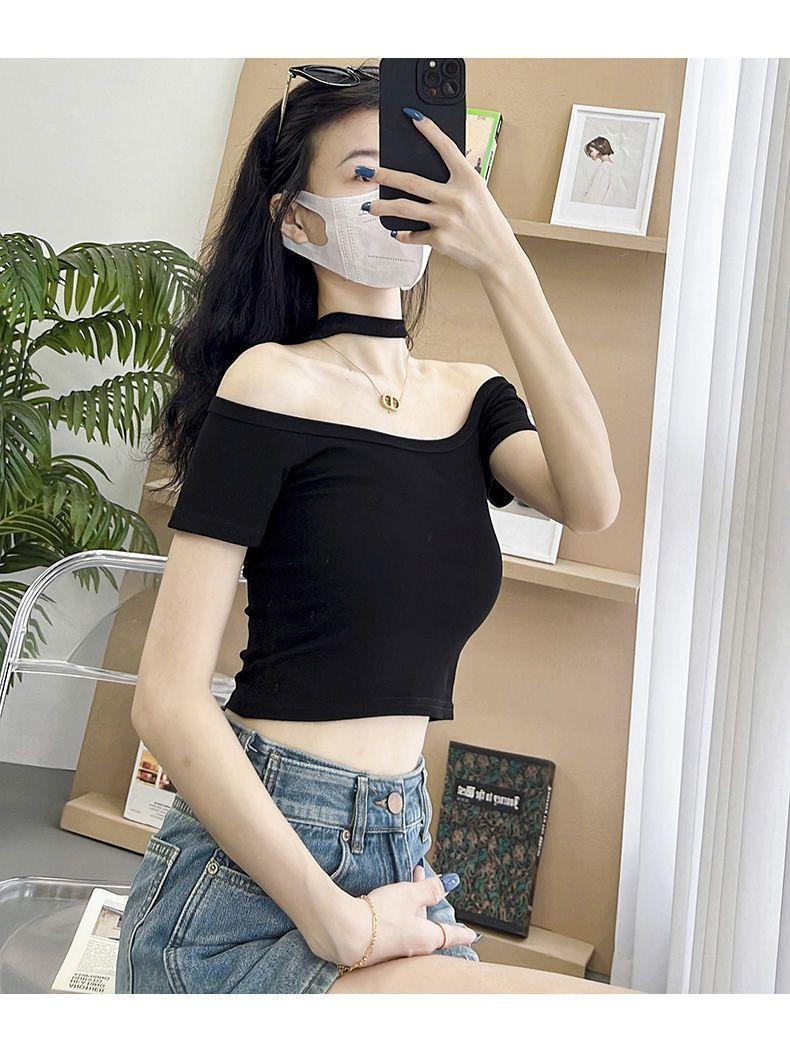 Playera de Moda con Cuello Halter Ajustada para Mujer con Estilo Único y Diseño con Hombros Descubiertos