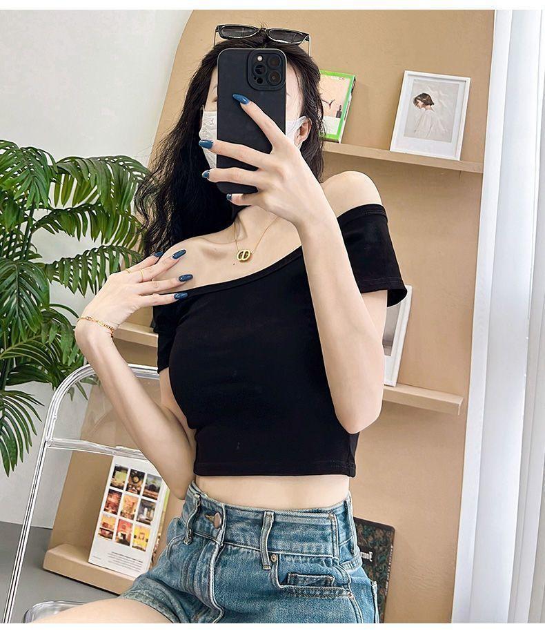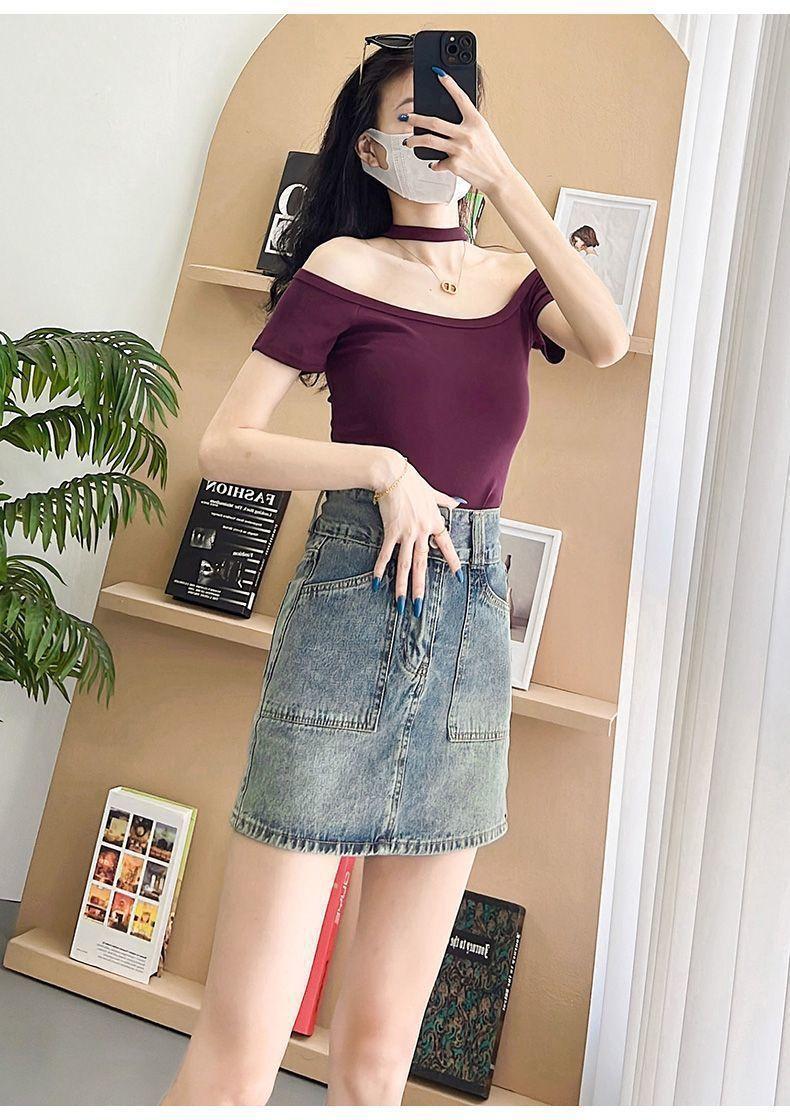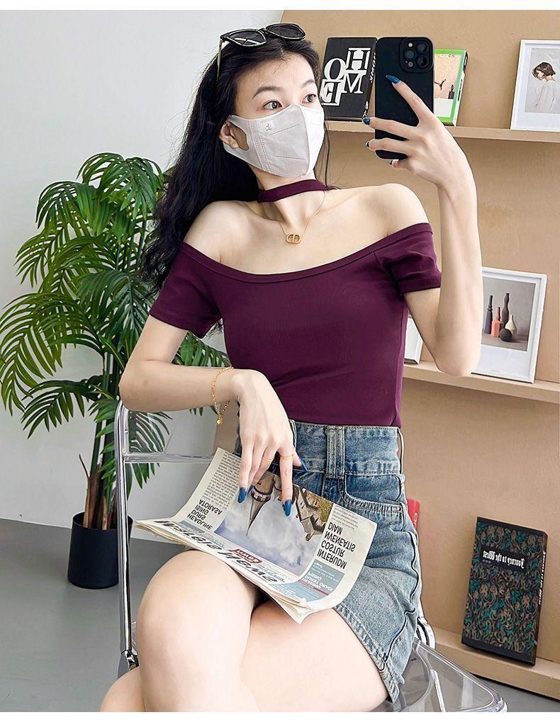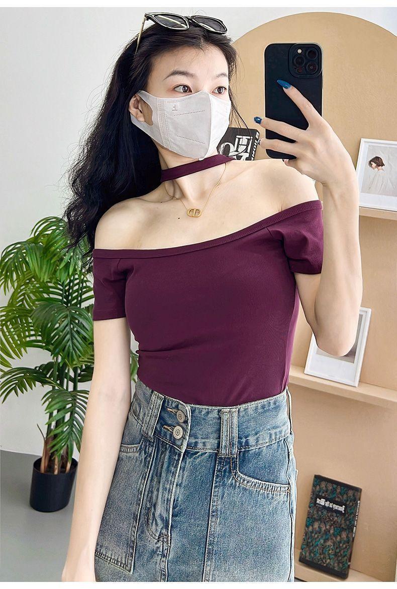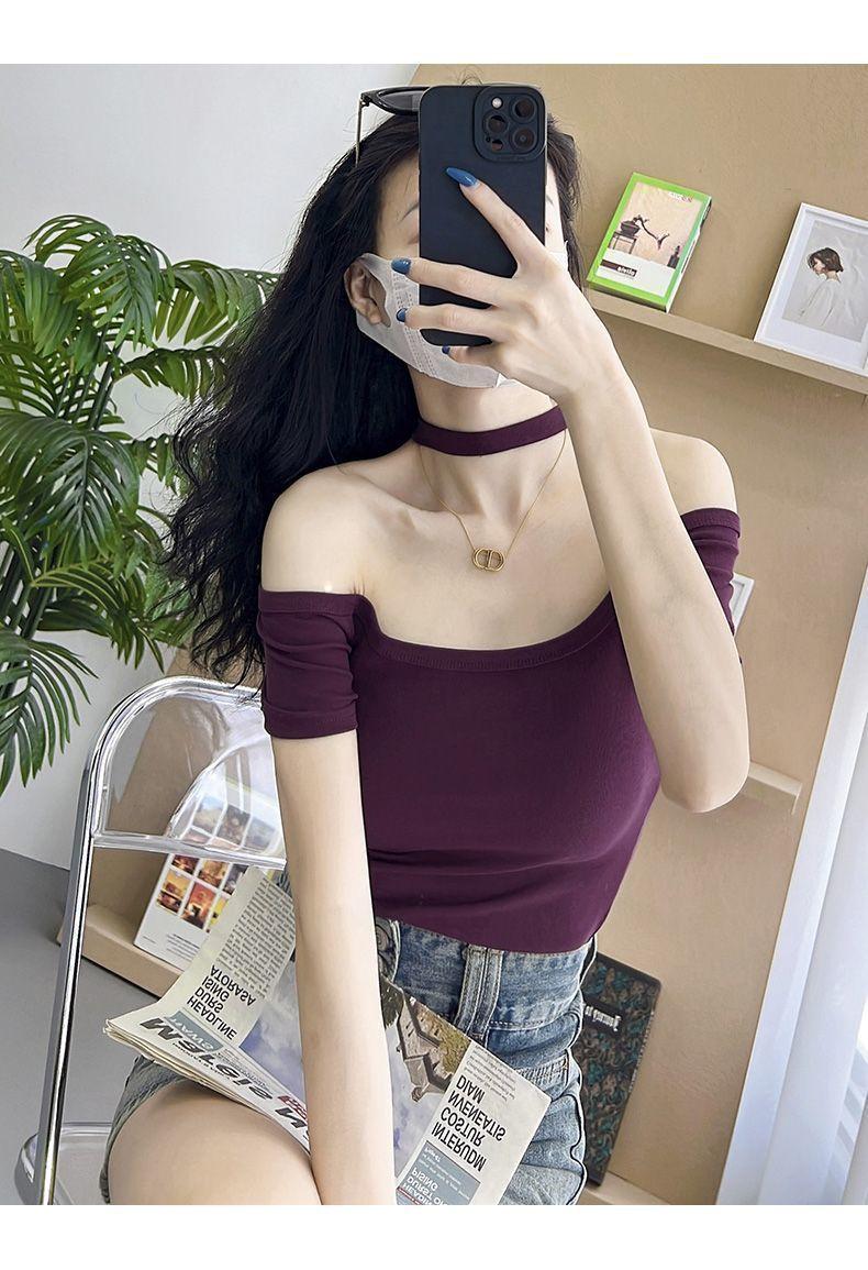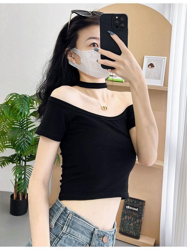 Playera de Moda con Cuello Halter Ajustada para Mujer con Estilo Único y Diseño con Hombros Descubiertos